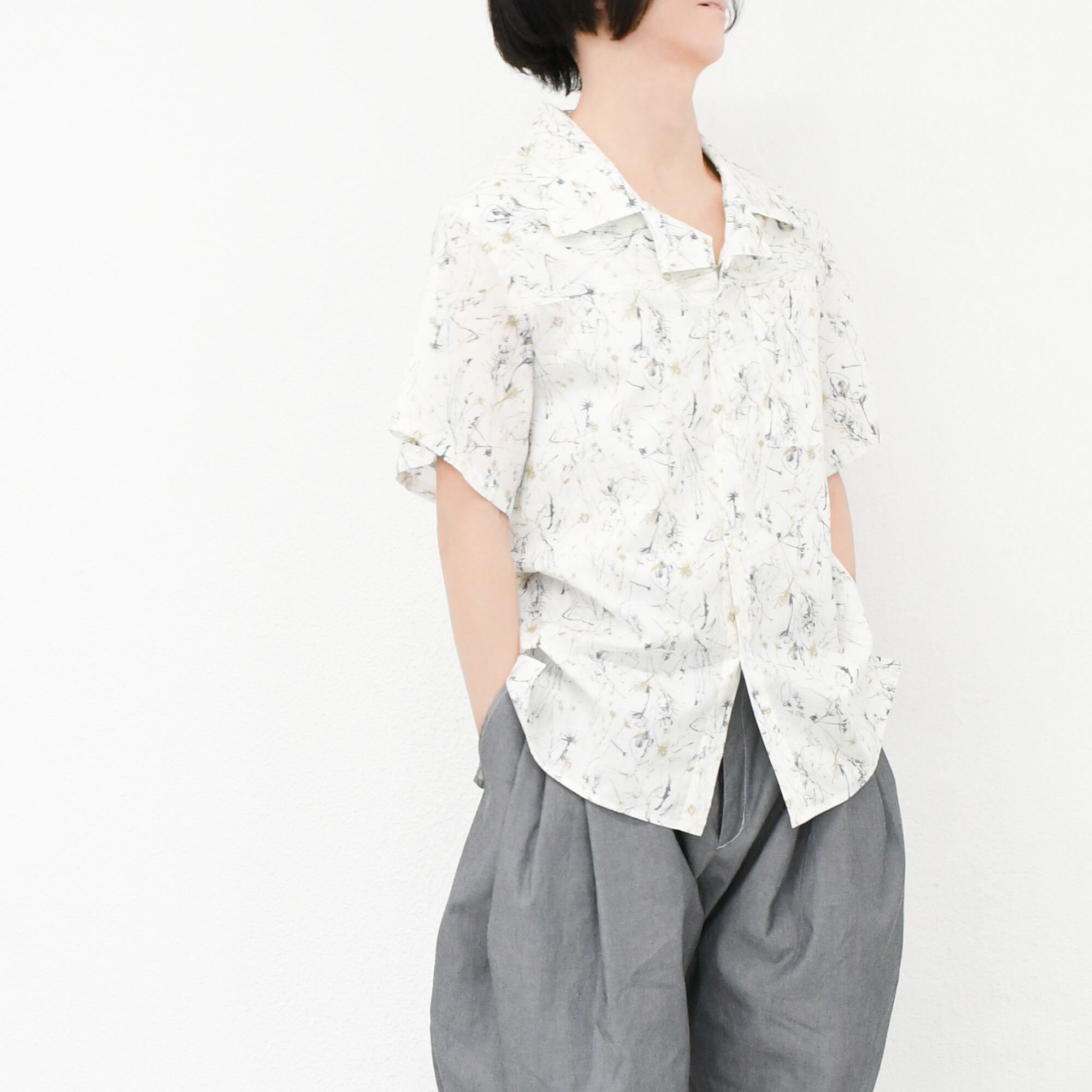 胸元は折り込んだようなデザインが特徴的なオープンカラー。