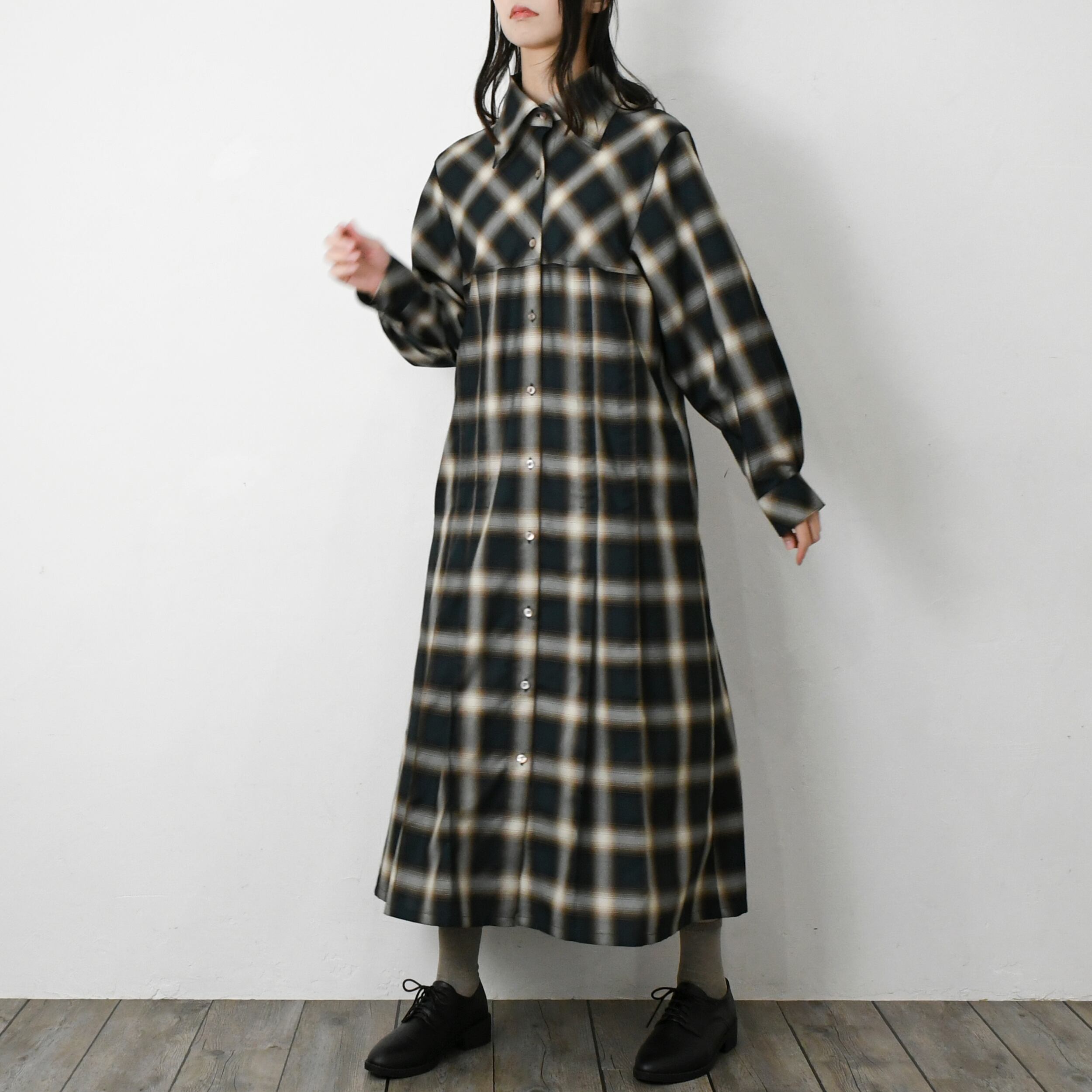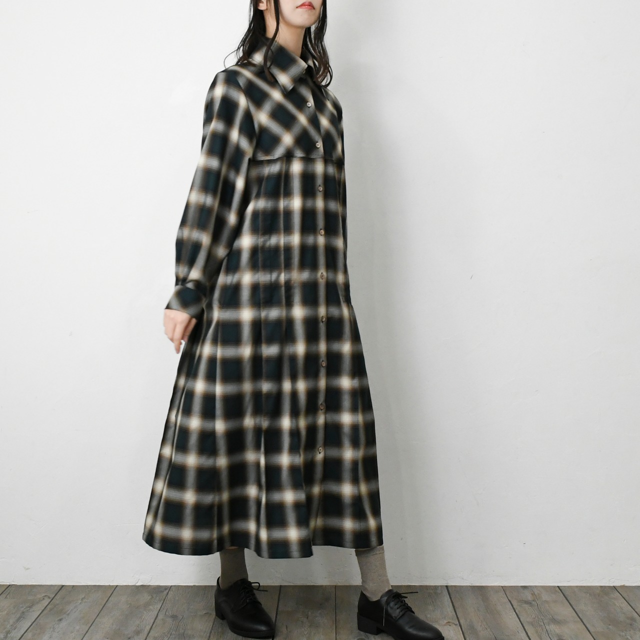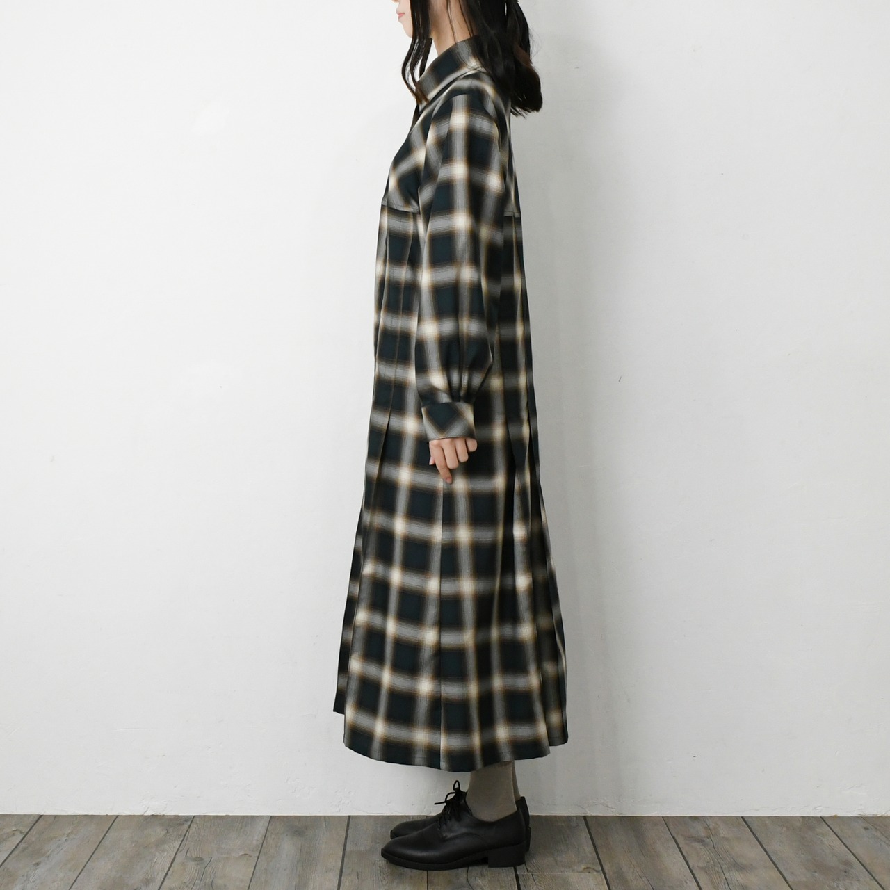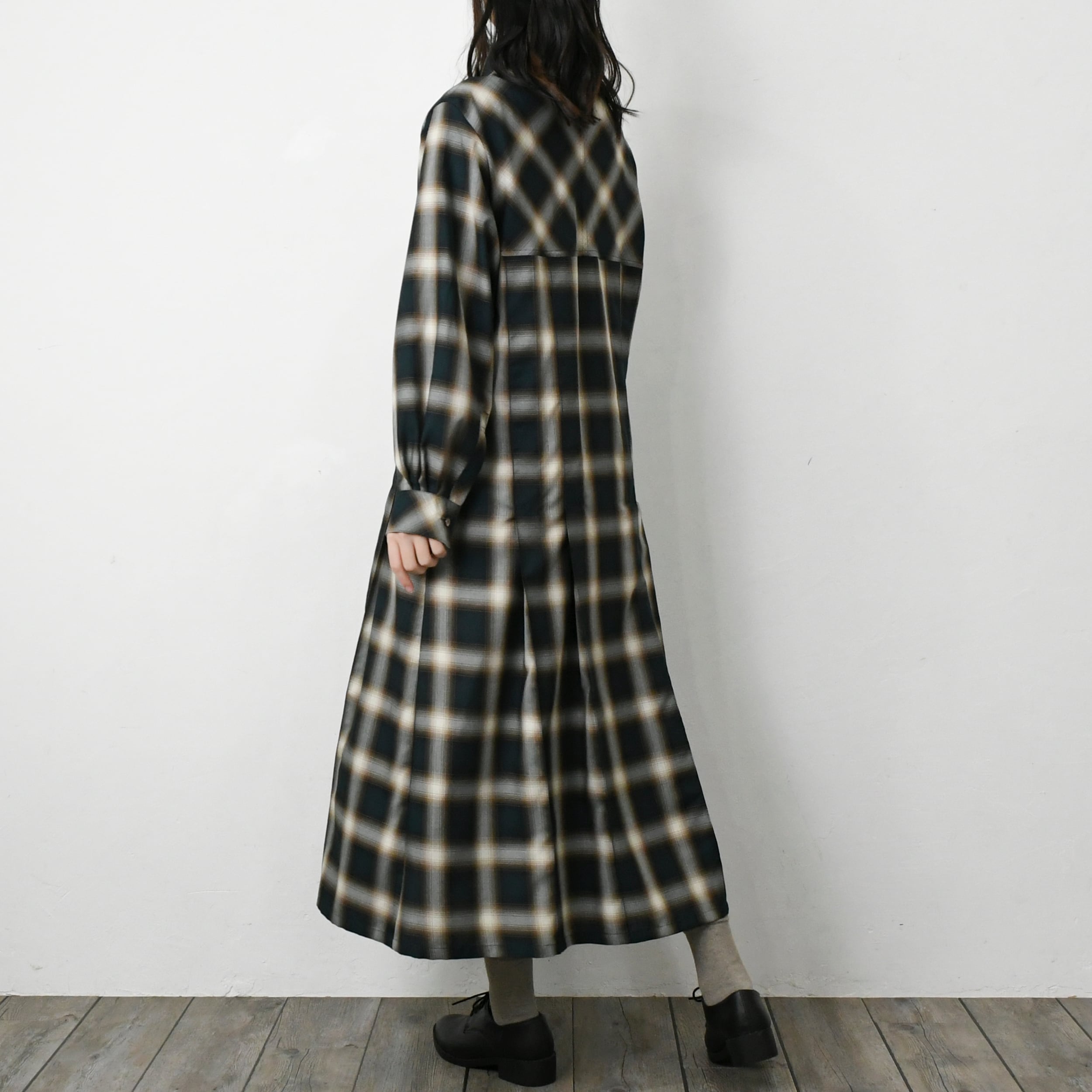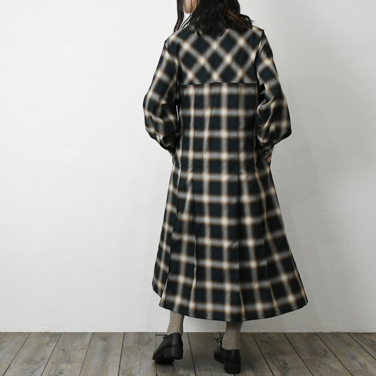 【完全一点物】プリーツタックワンピース(グリーンチェック)
