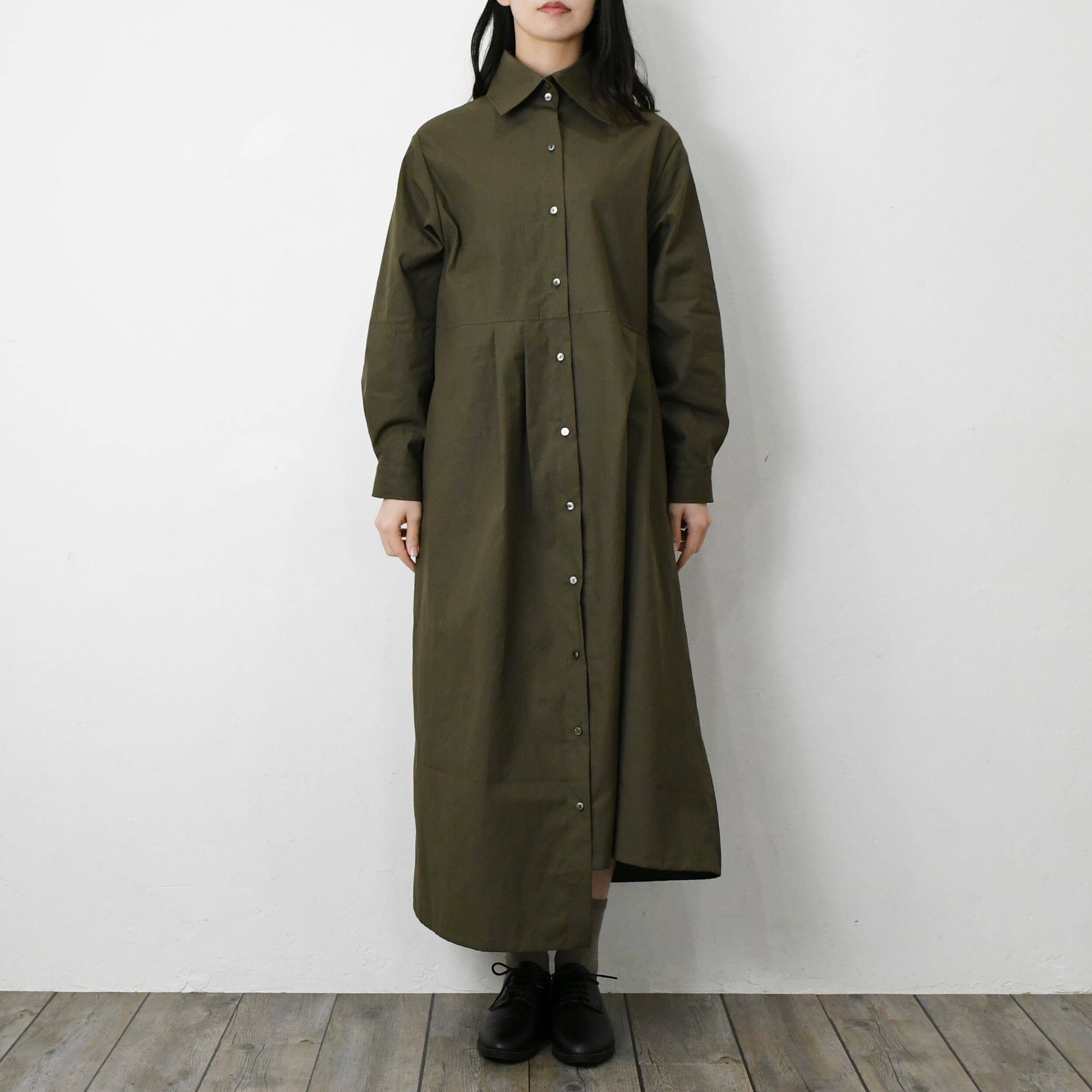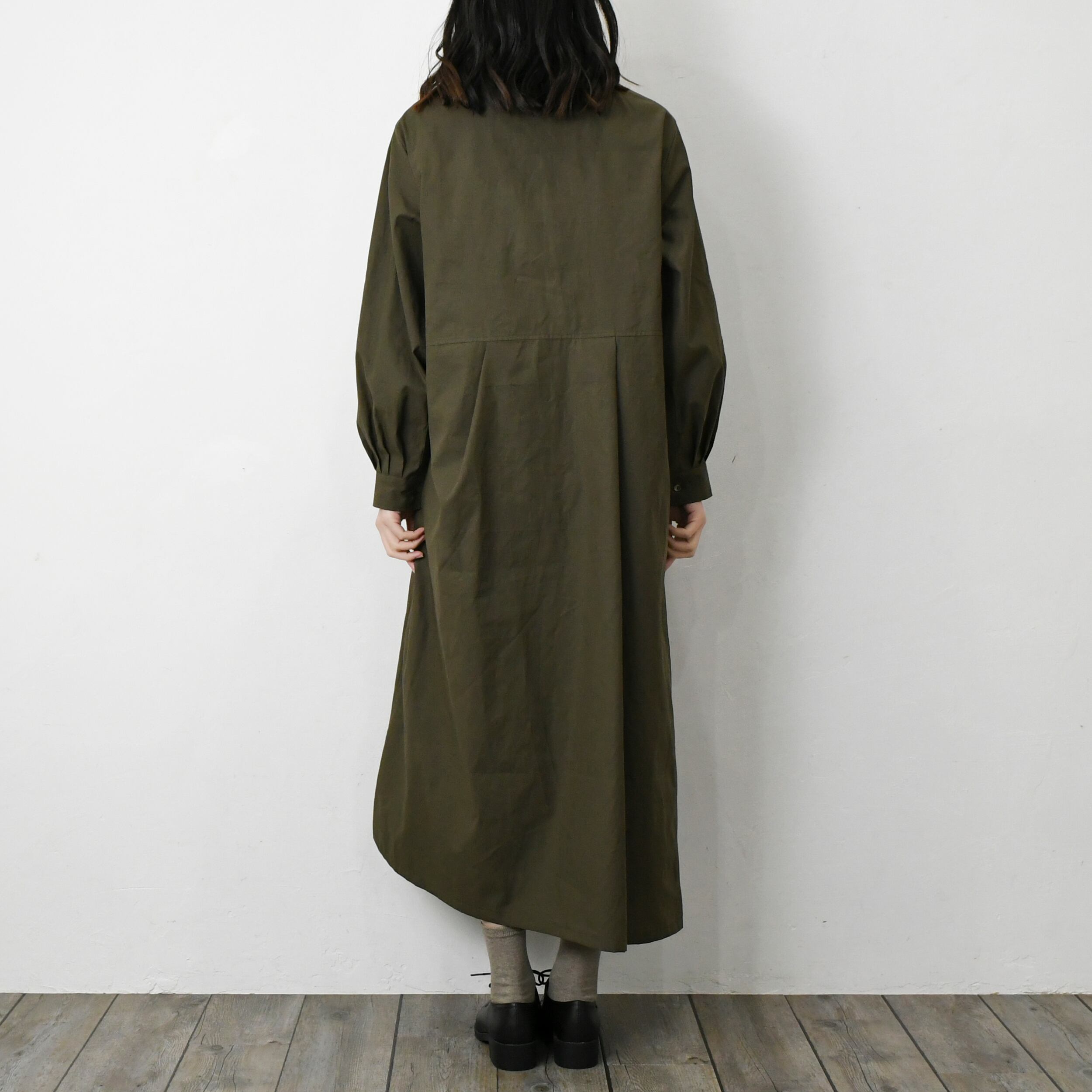 【完全一点物】アシンメトリータックワンピース(カーキ)