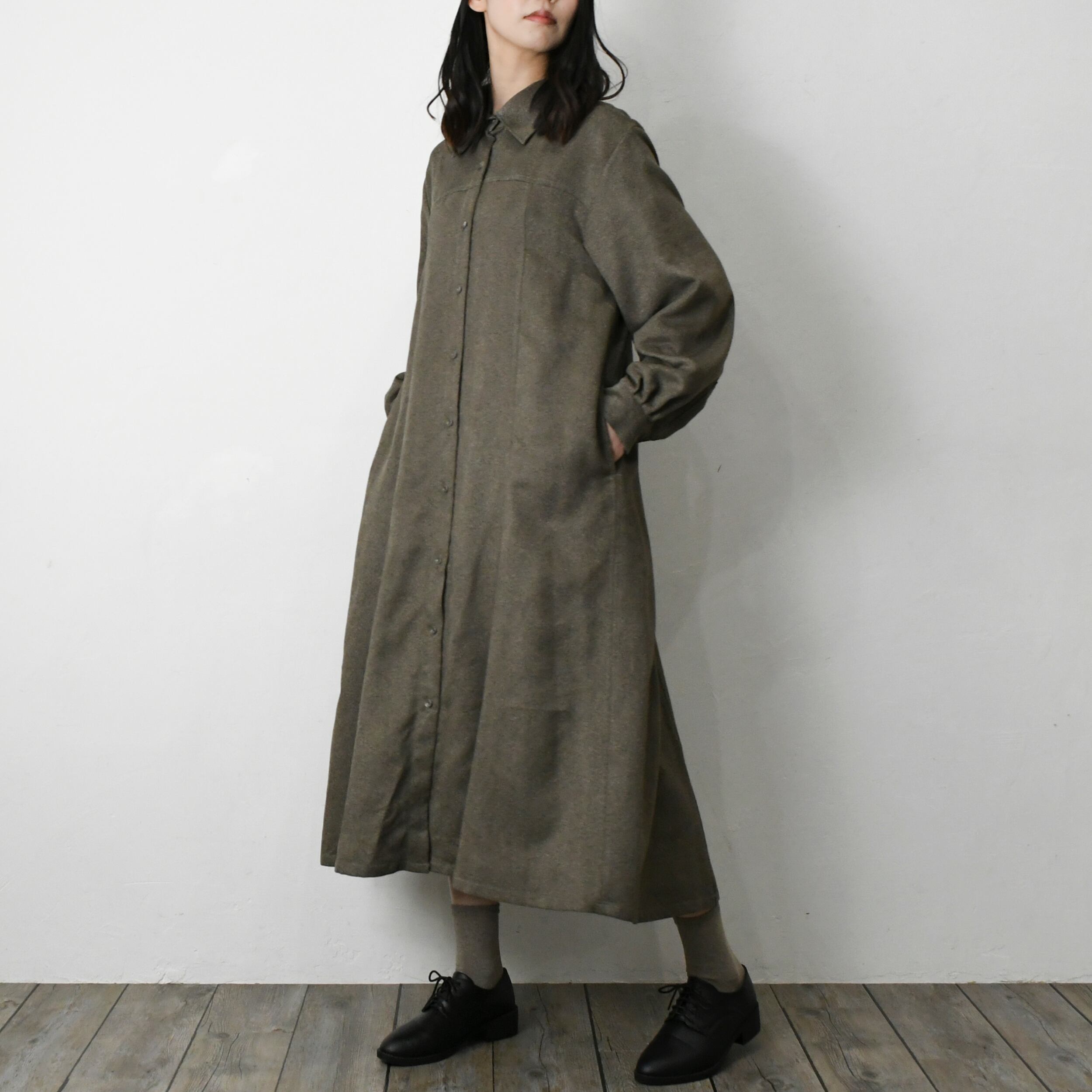 【完全一点物】マーメイドフレアワンピース(スエード調グレー)