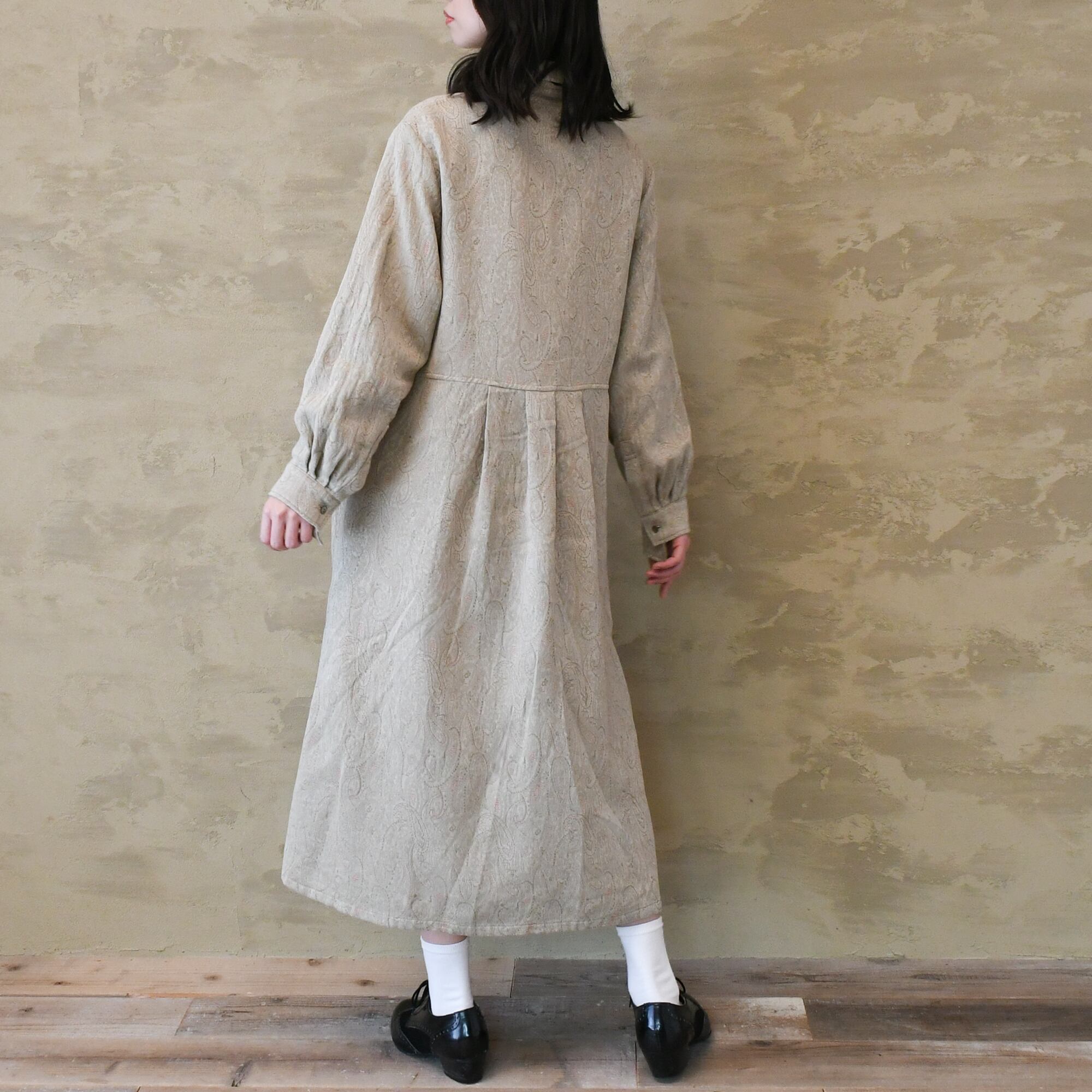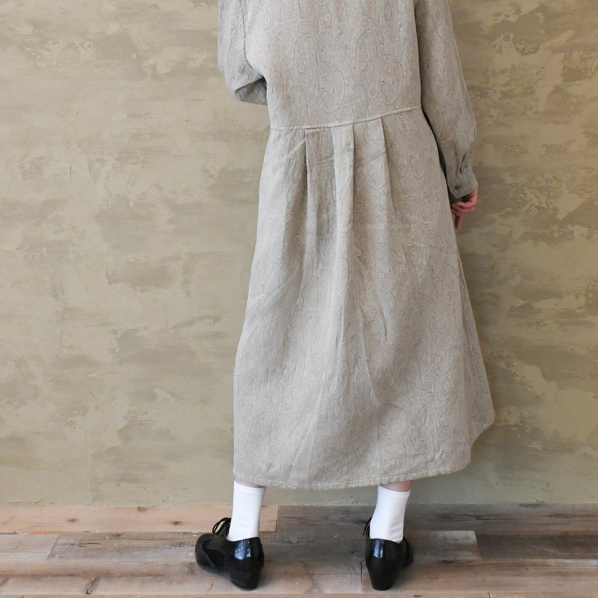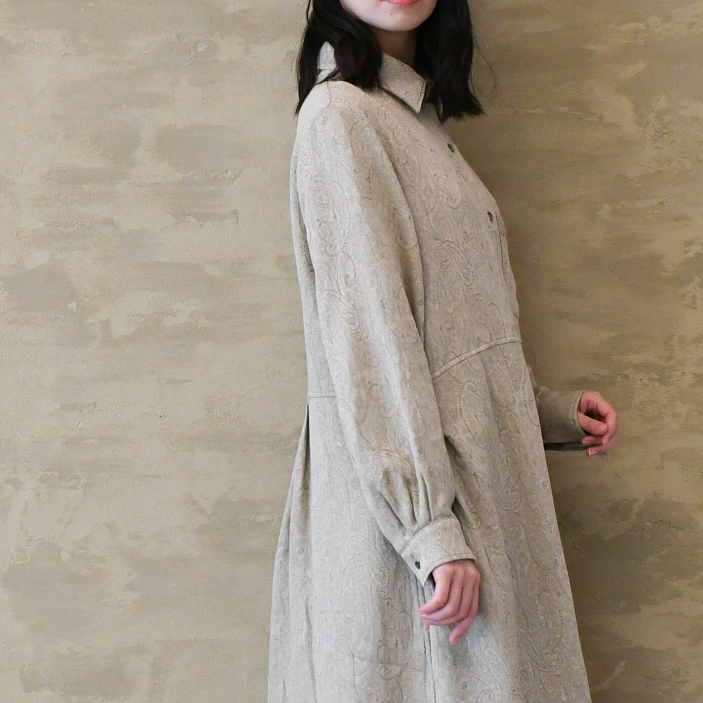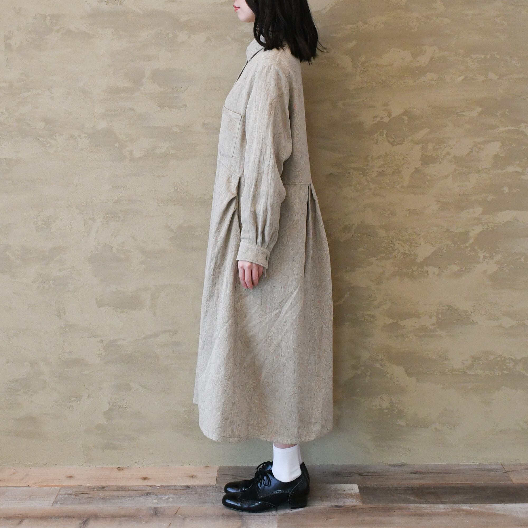 【完全一点物】ウエスト切替タックポケットワンピース(ベージュペイズリー)