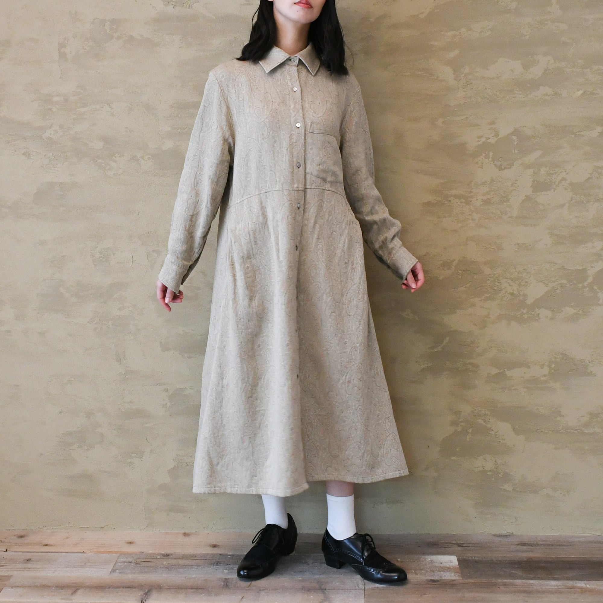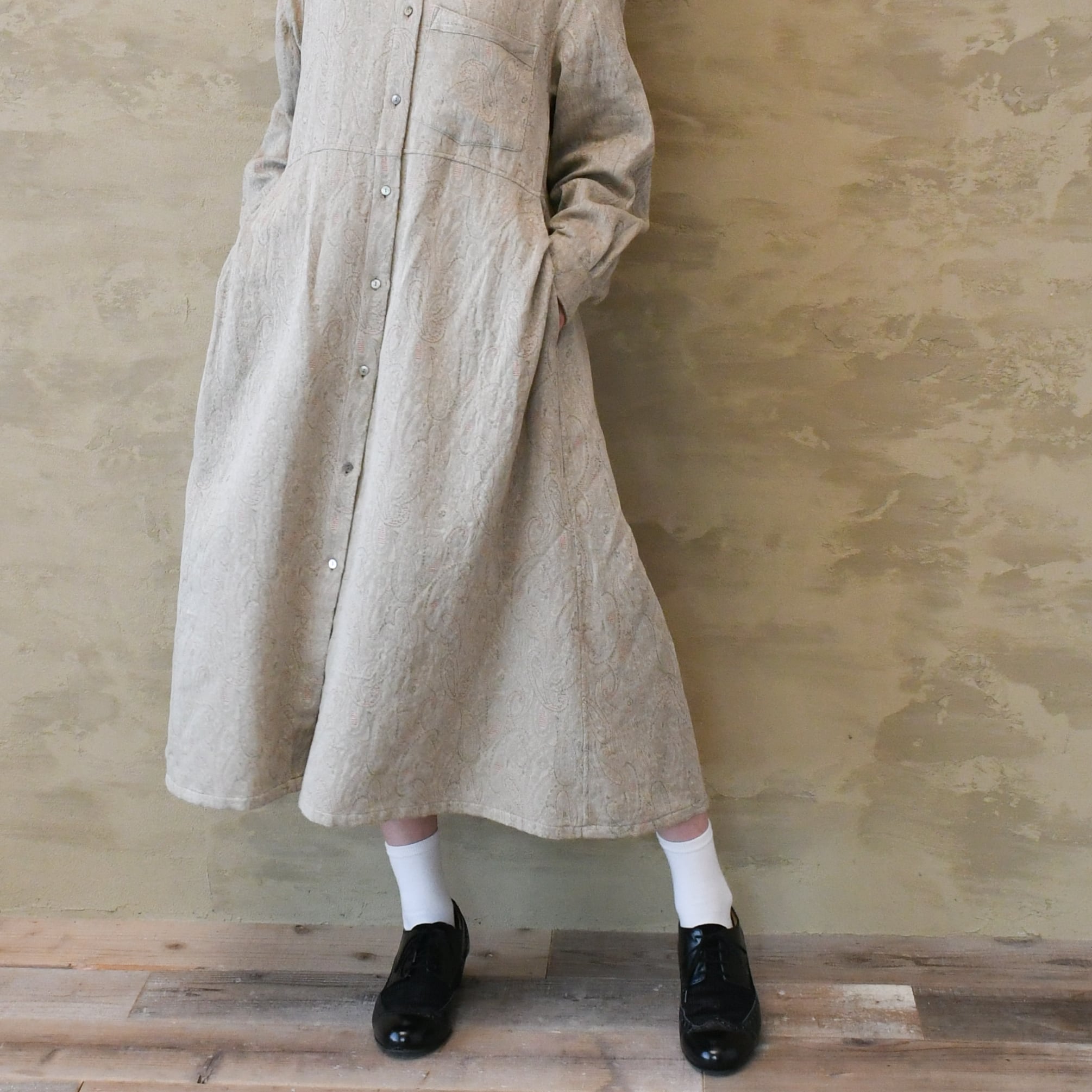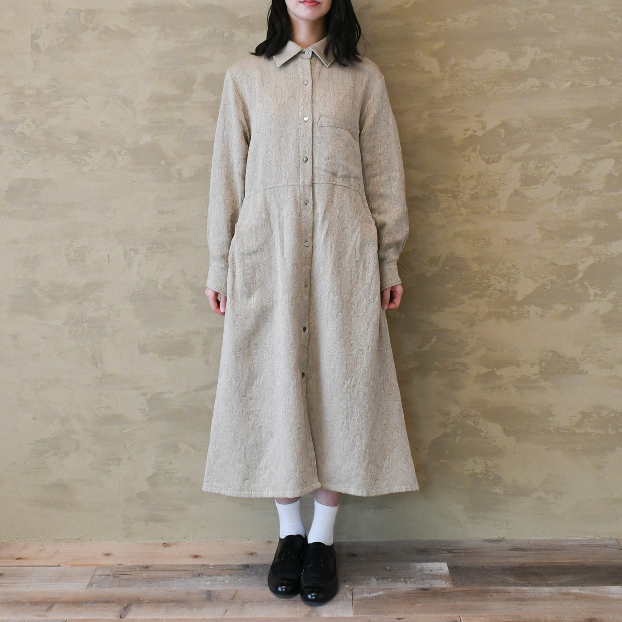 【完全一点物】ウエスト切替タックポケットワンピース(ベージュペイズリー)