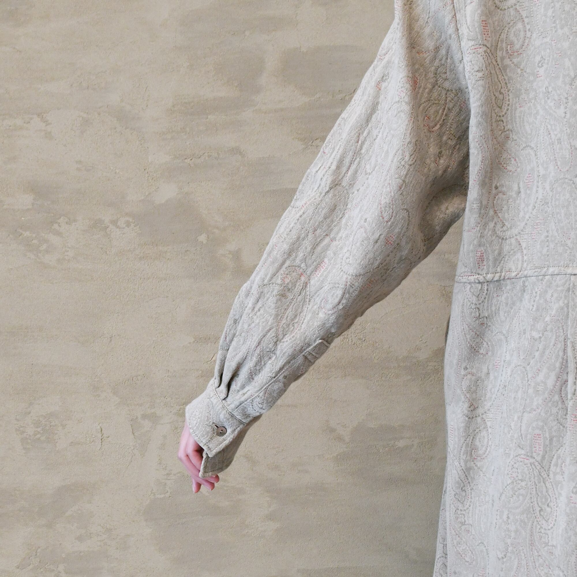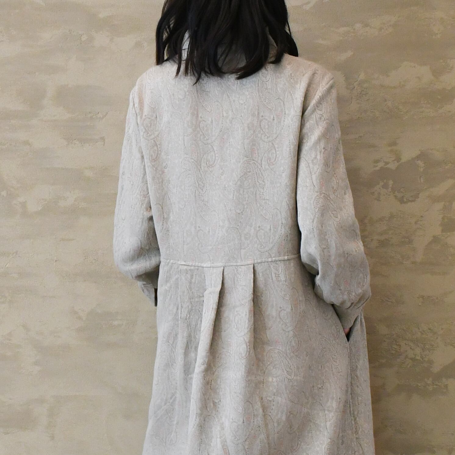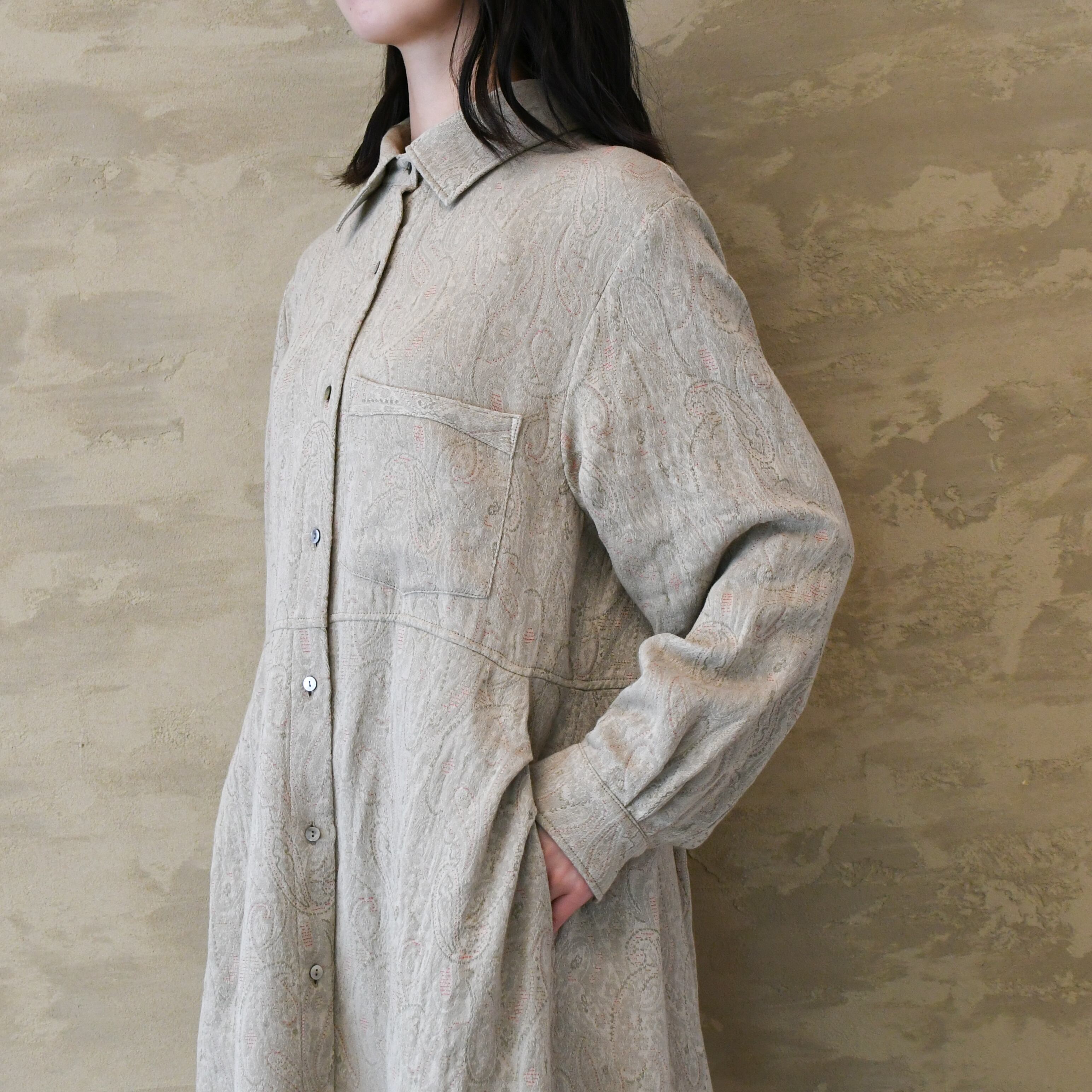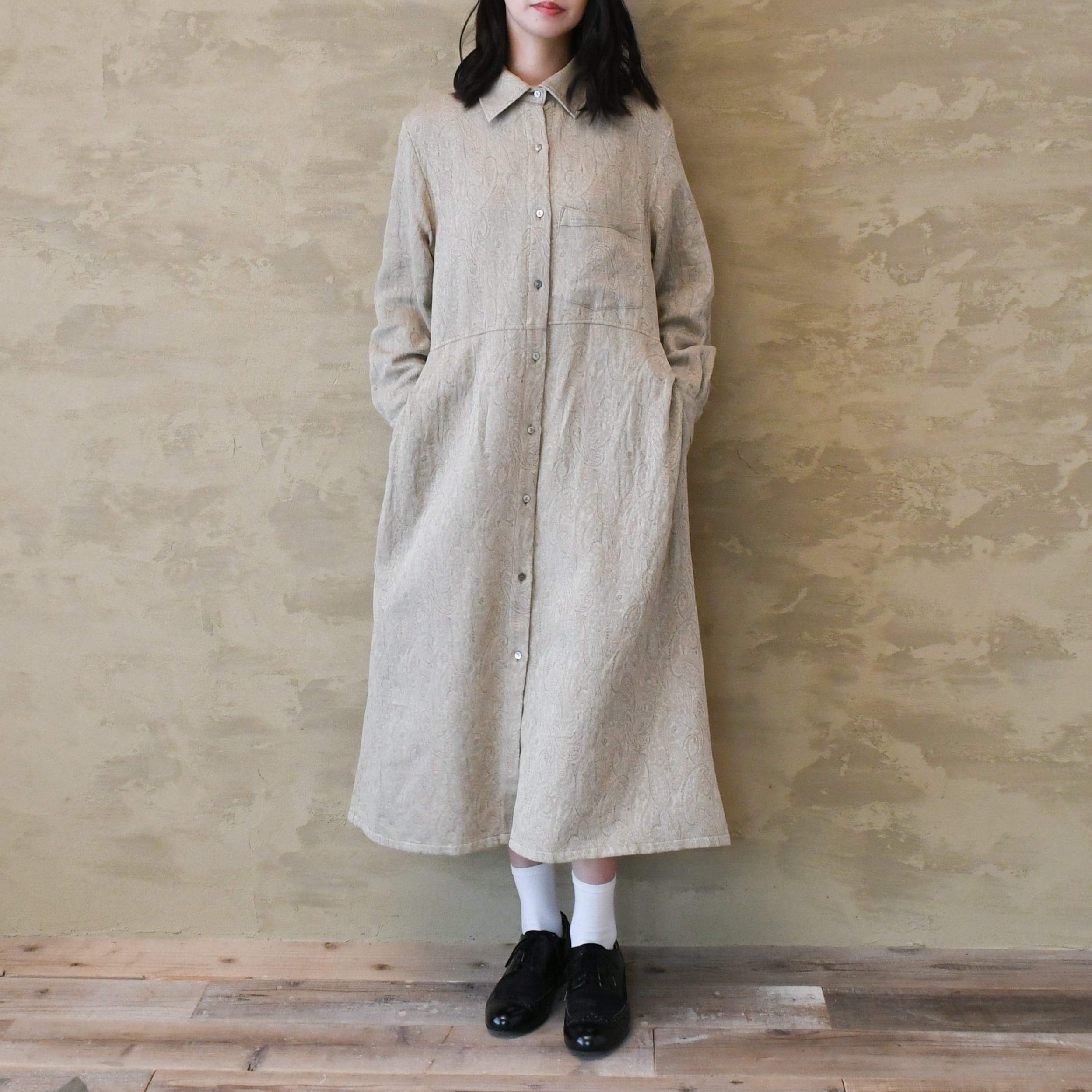 【完全一点物】ウエスト切替タックポケットワンピース(ベージュペイズリー)