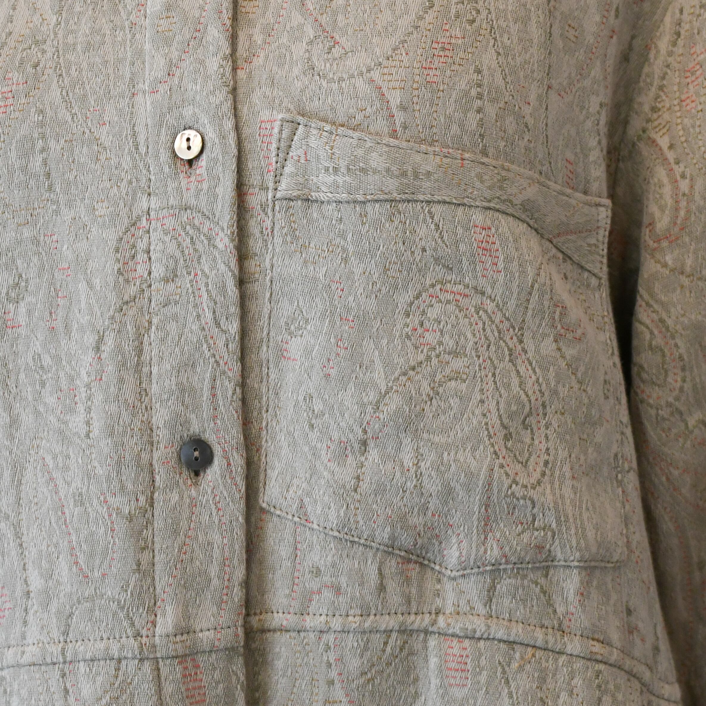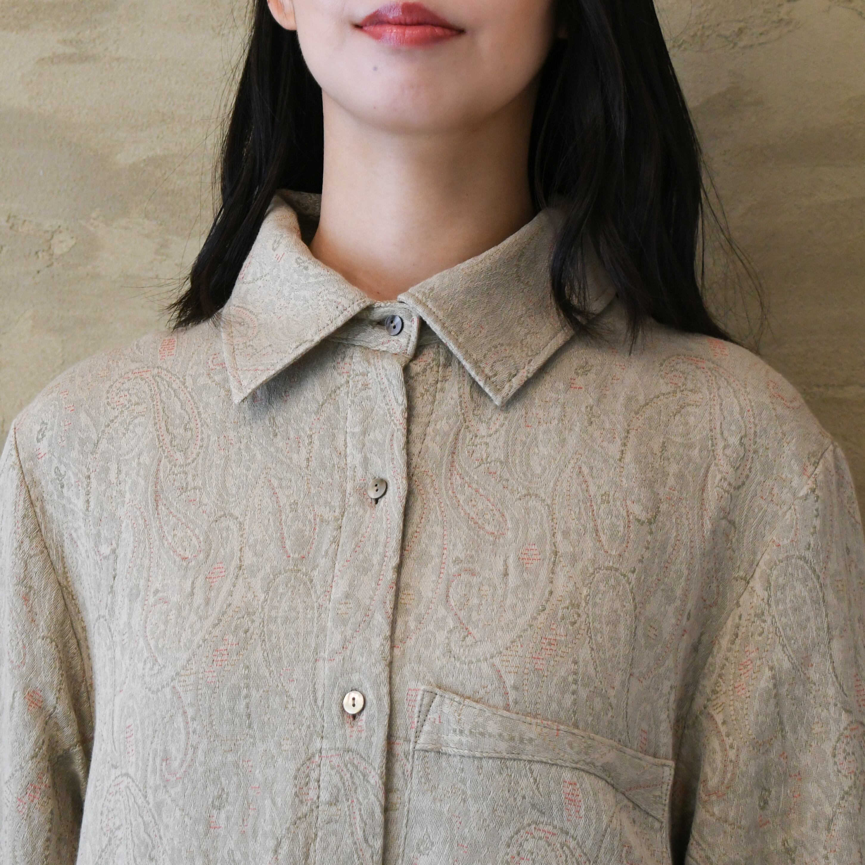 落ち着いた色合いのベージュ生地は、ジャガード織りでペイズリー柄が描かれています。