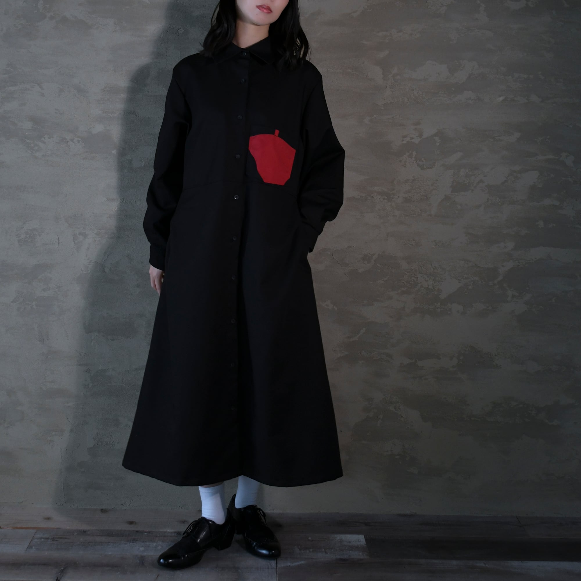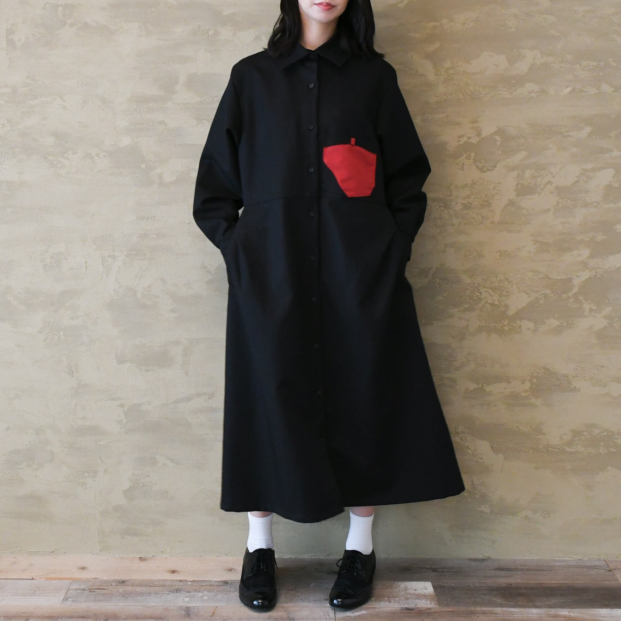 【完全一点物】ウエスト切替タックポケットワンピース(ブラック×レッド)