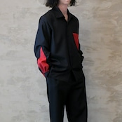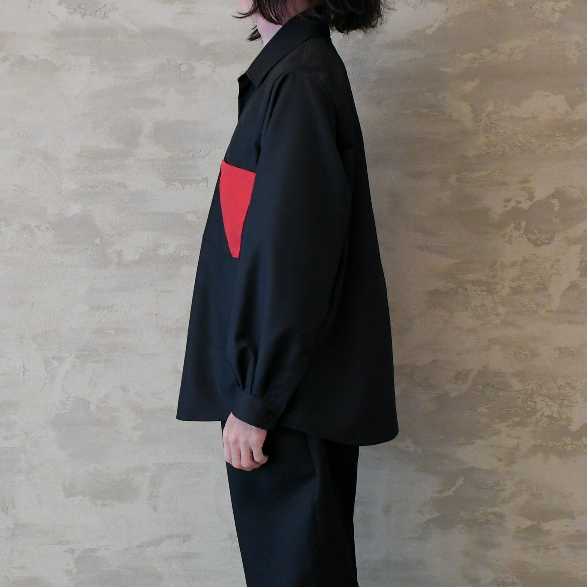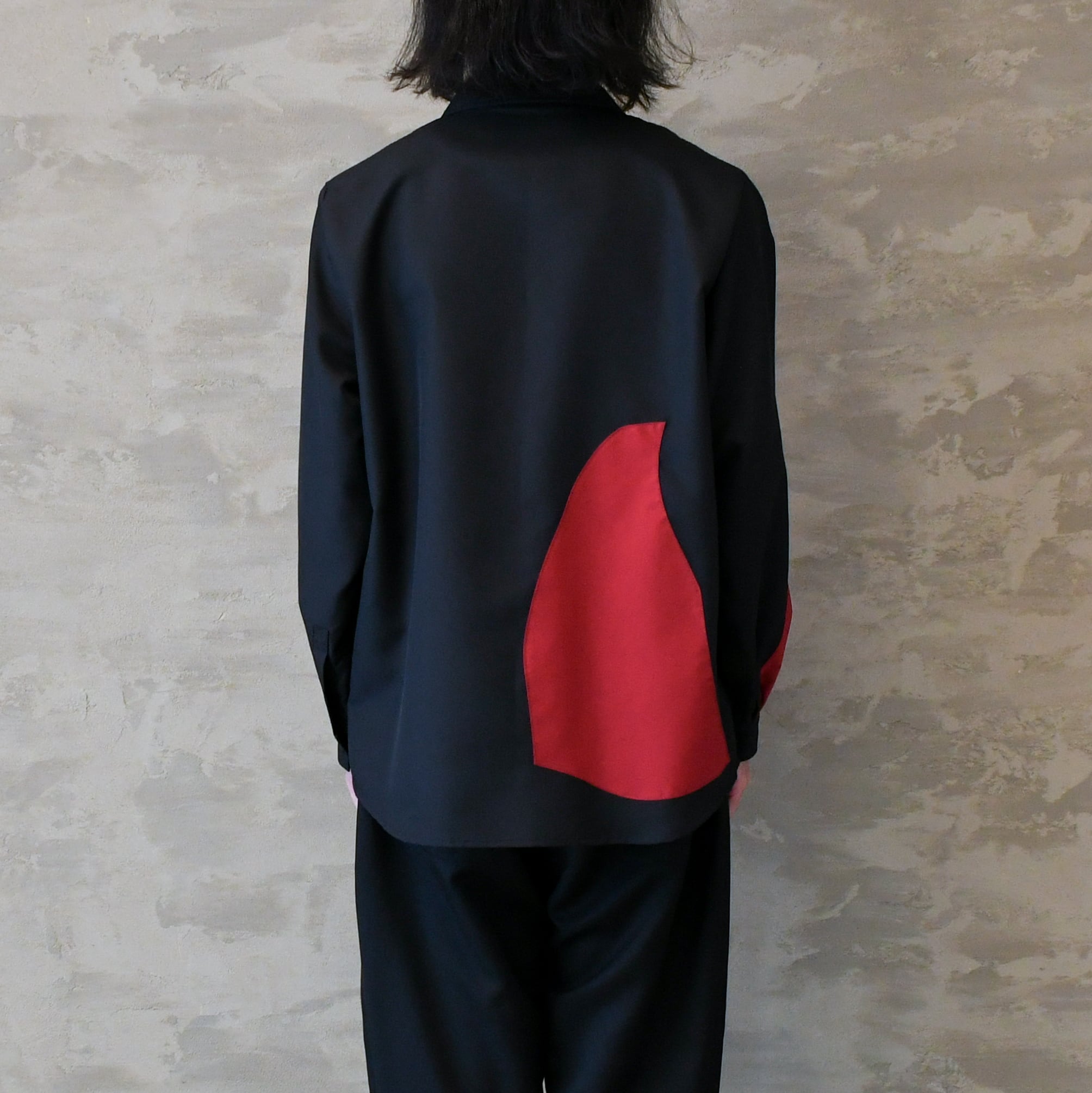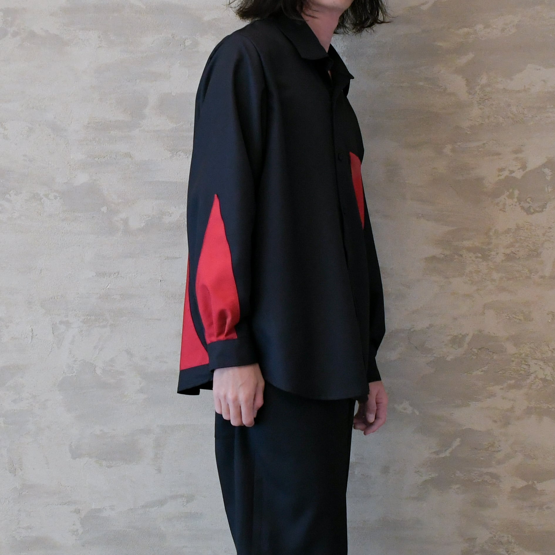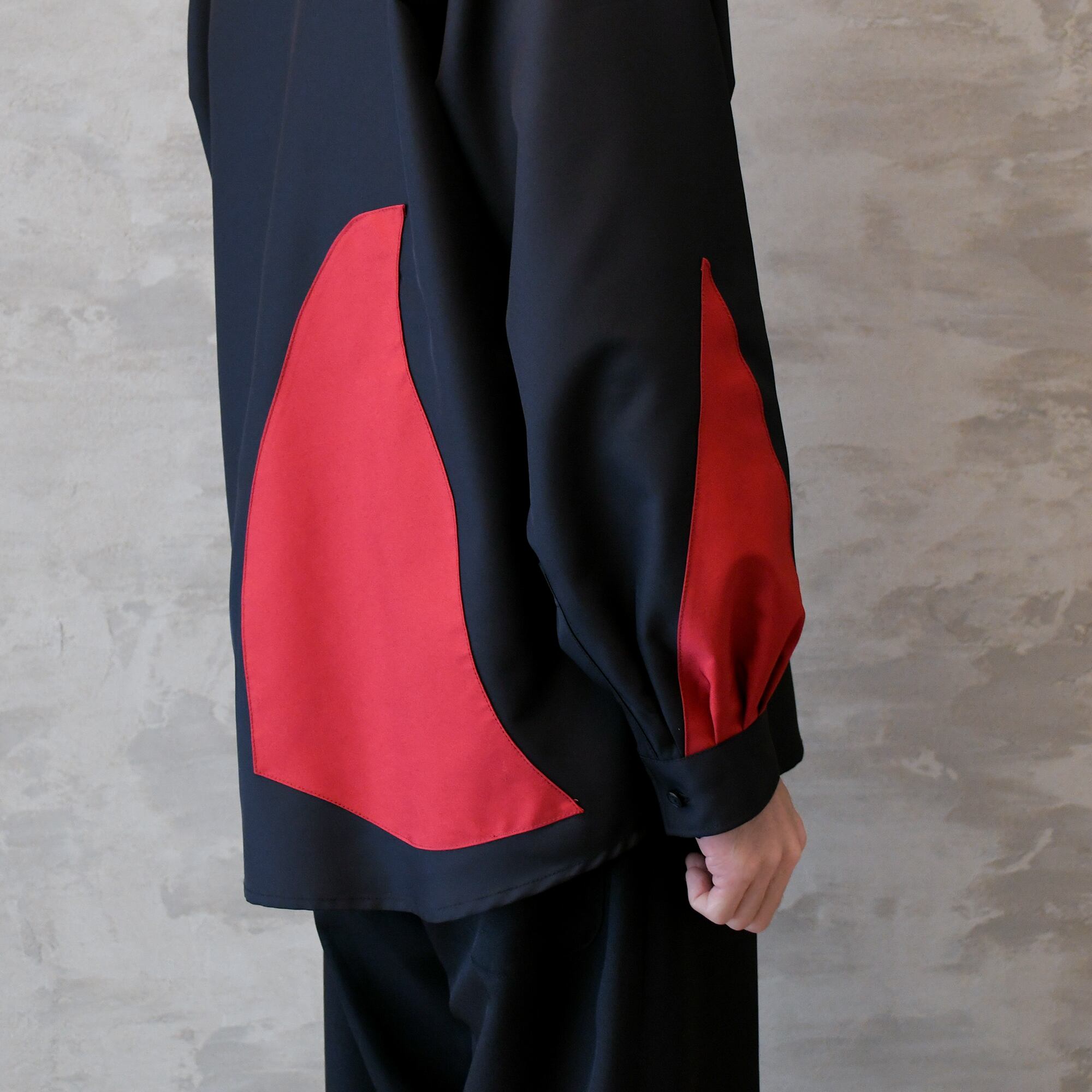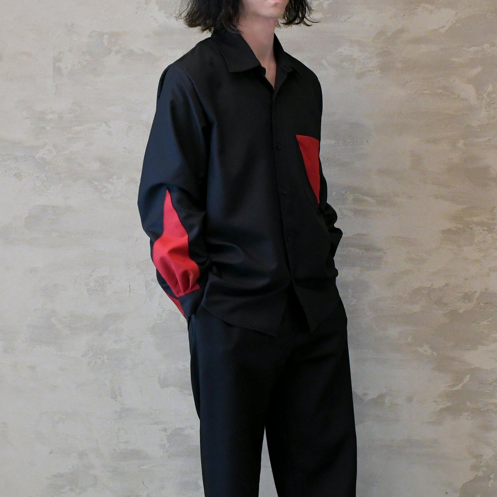 ブラックの生地に鮮やかなレッドが映えるメンズシャツ。