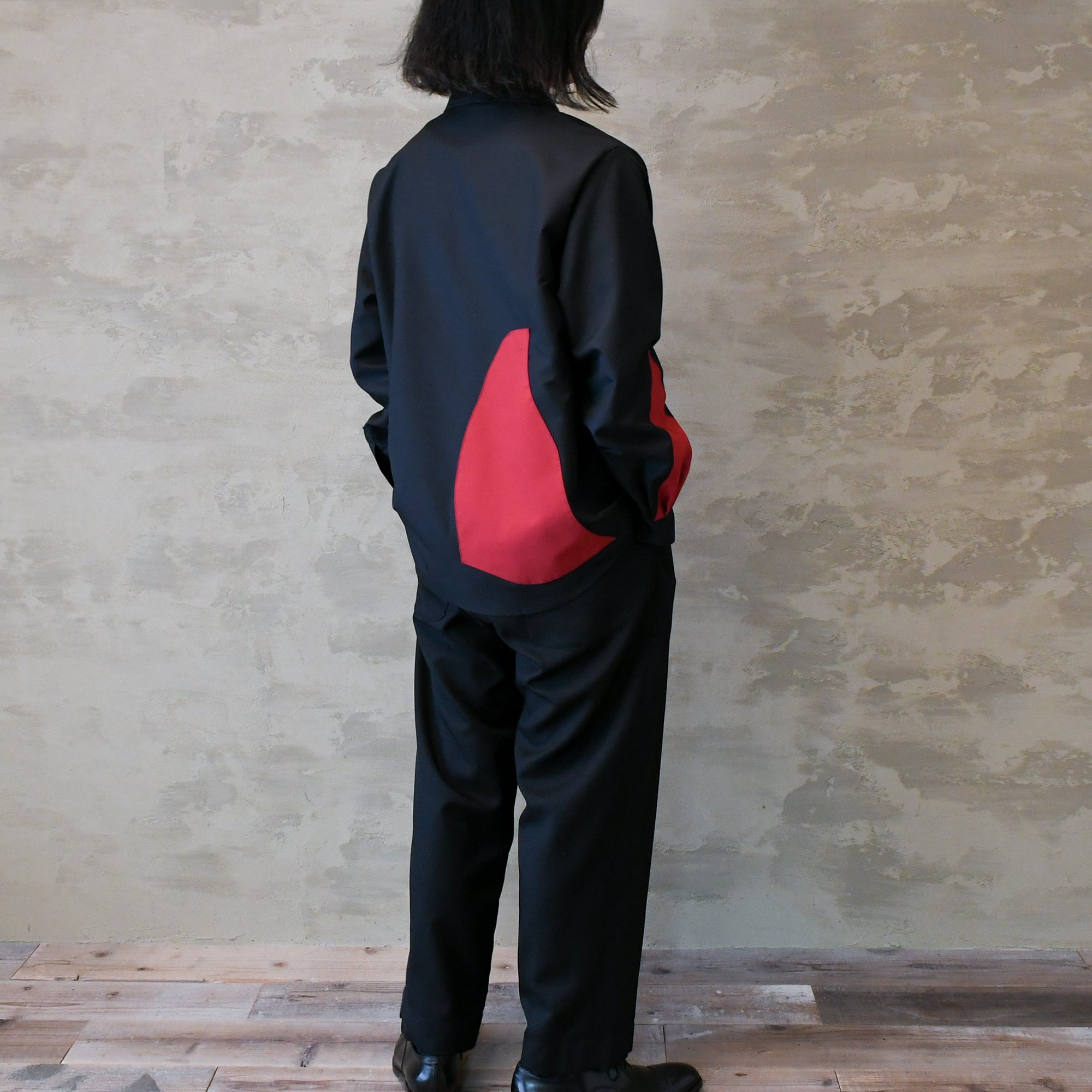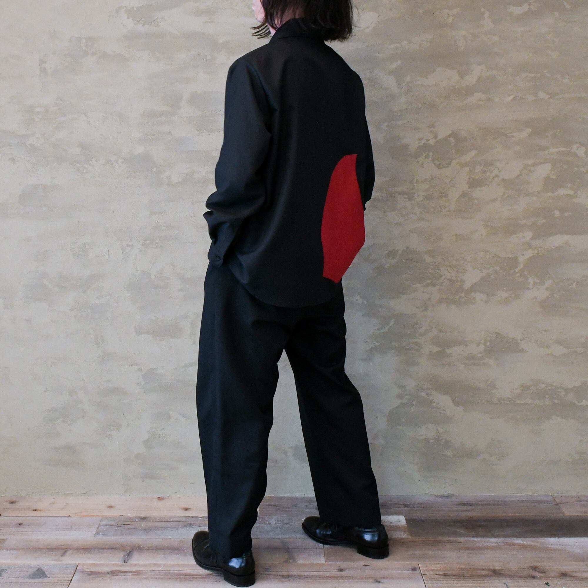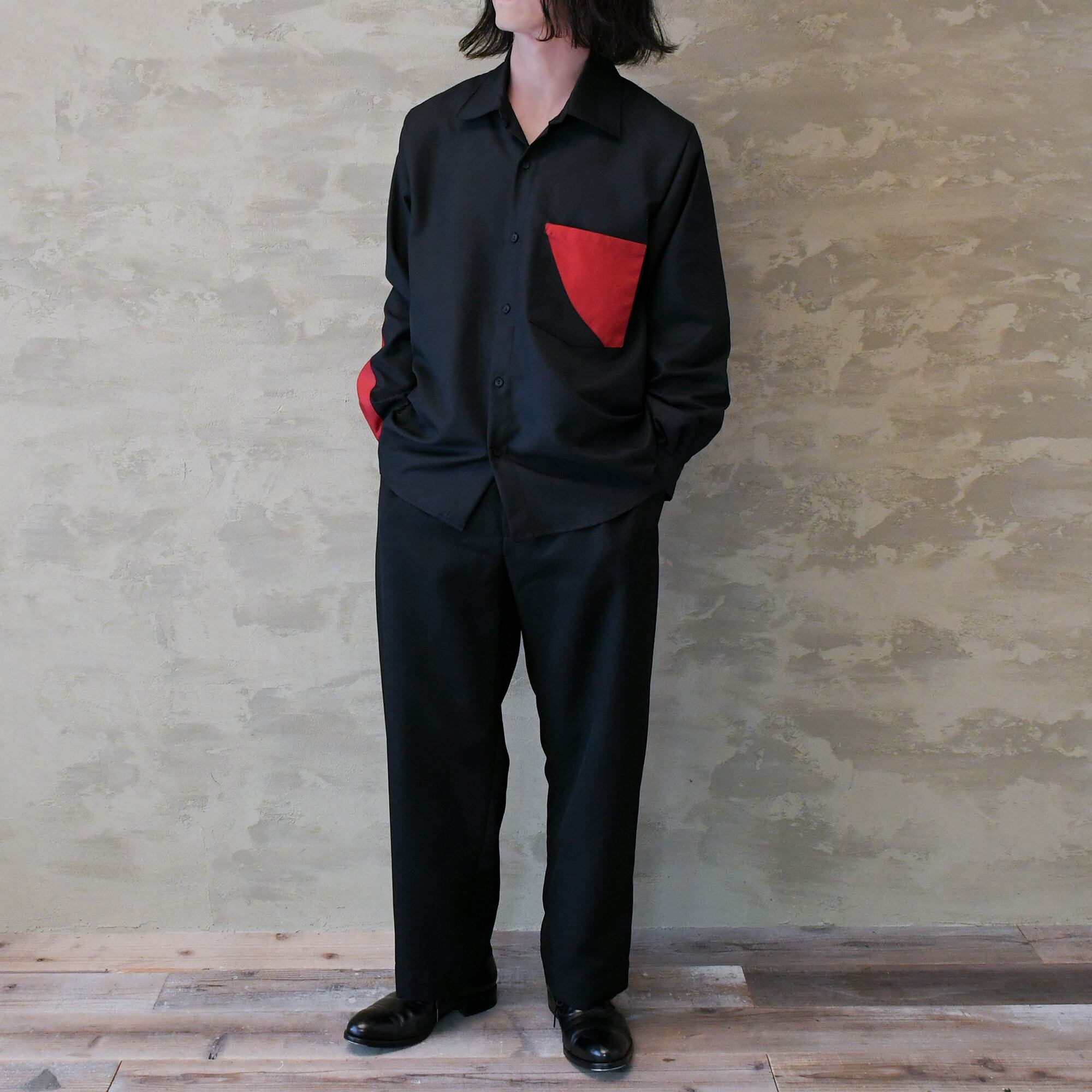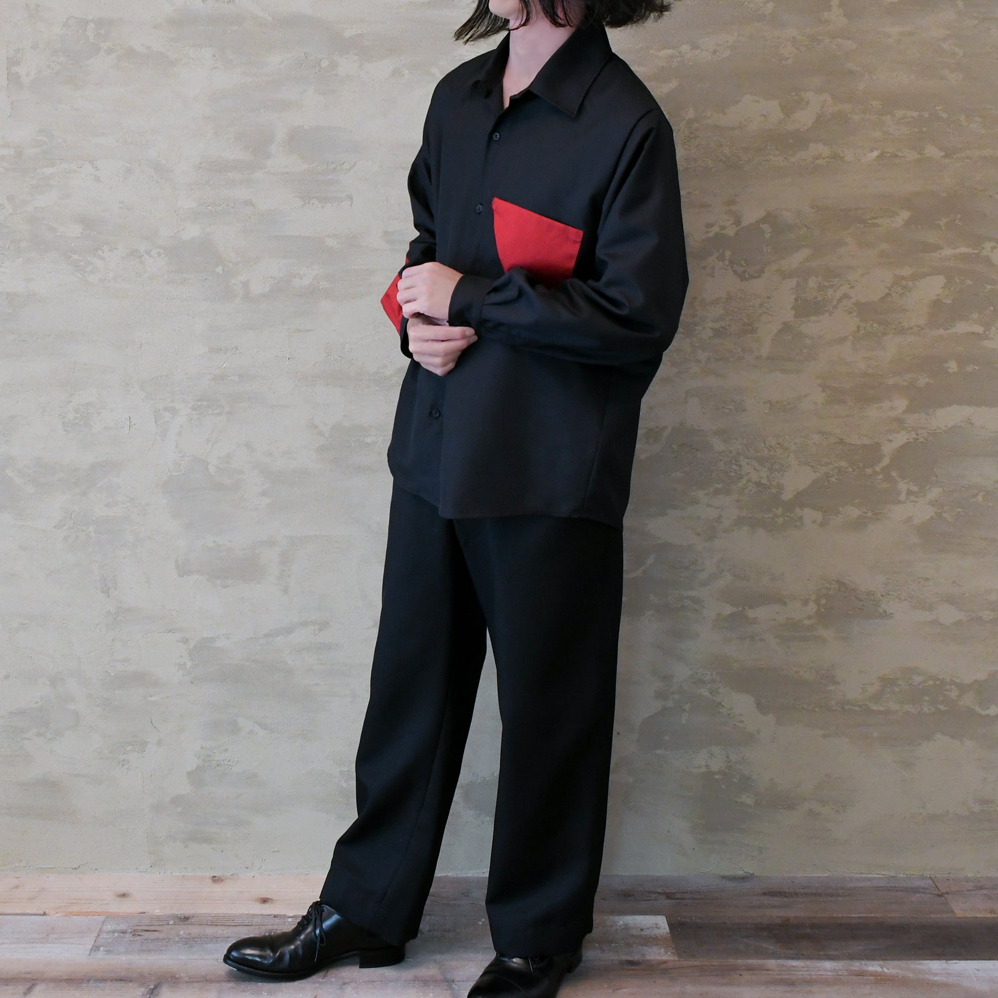 【完全一点物】メンズプレーンシャツ(ブラック×レッド)