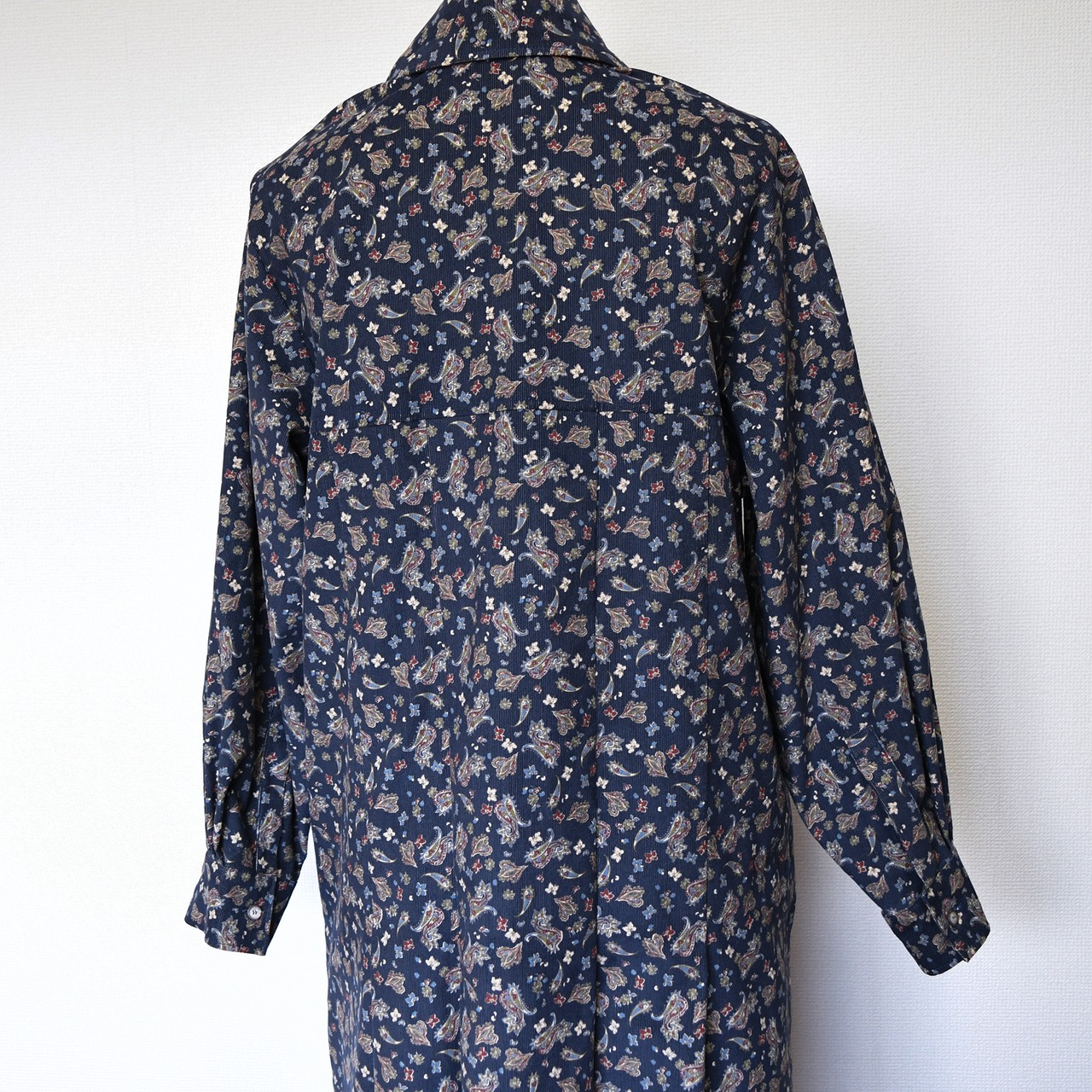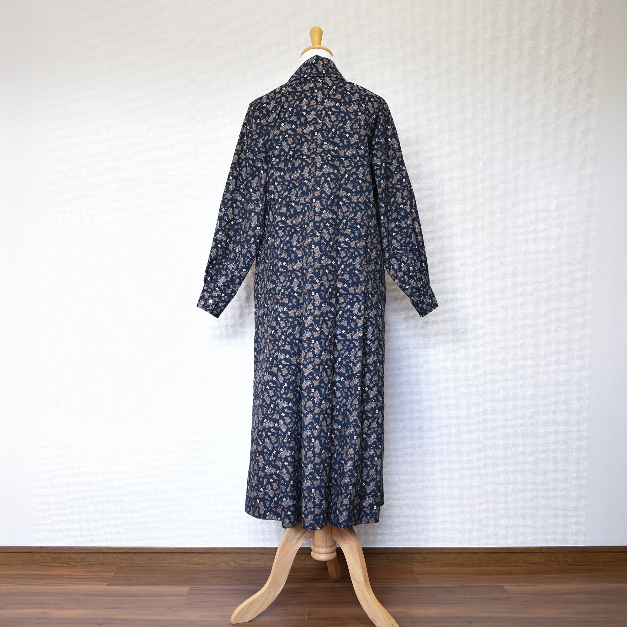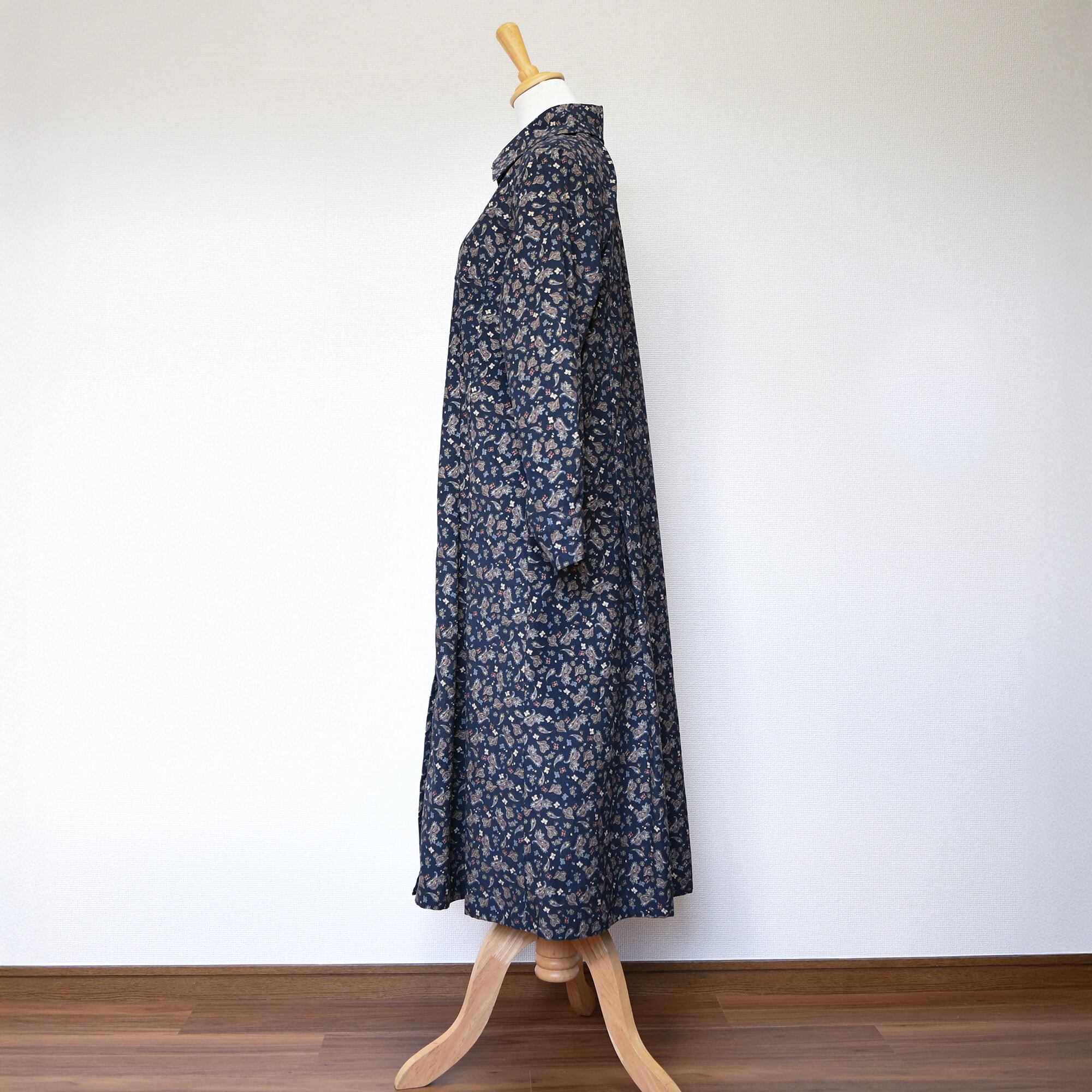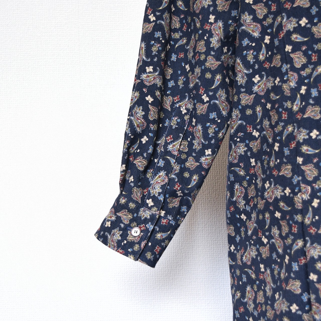 【完全一点物】プリーツタックワンピース(ネイビーペイズリーコーデュロイ)