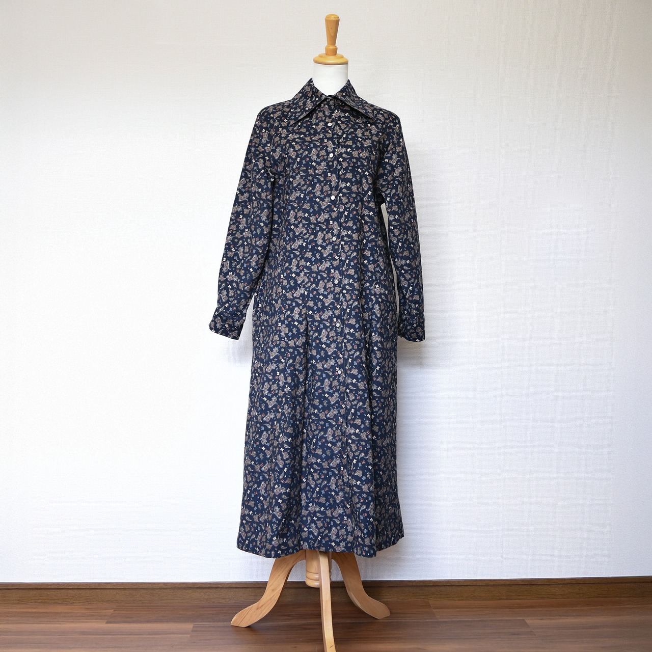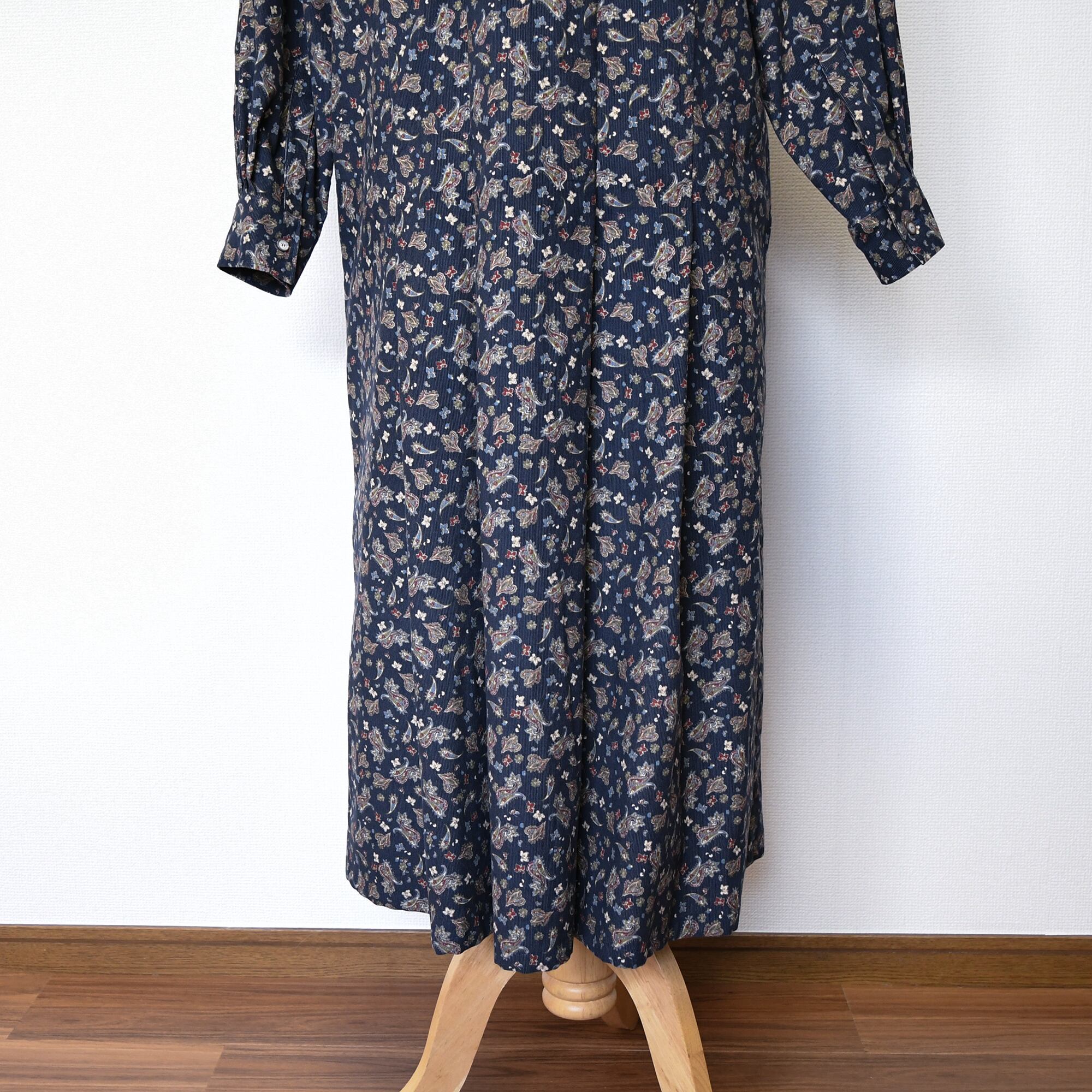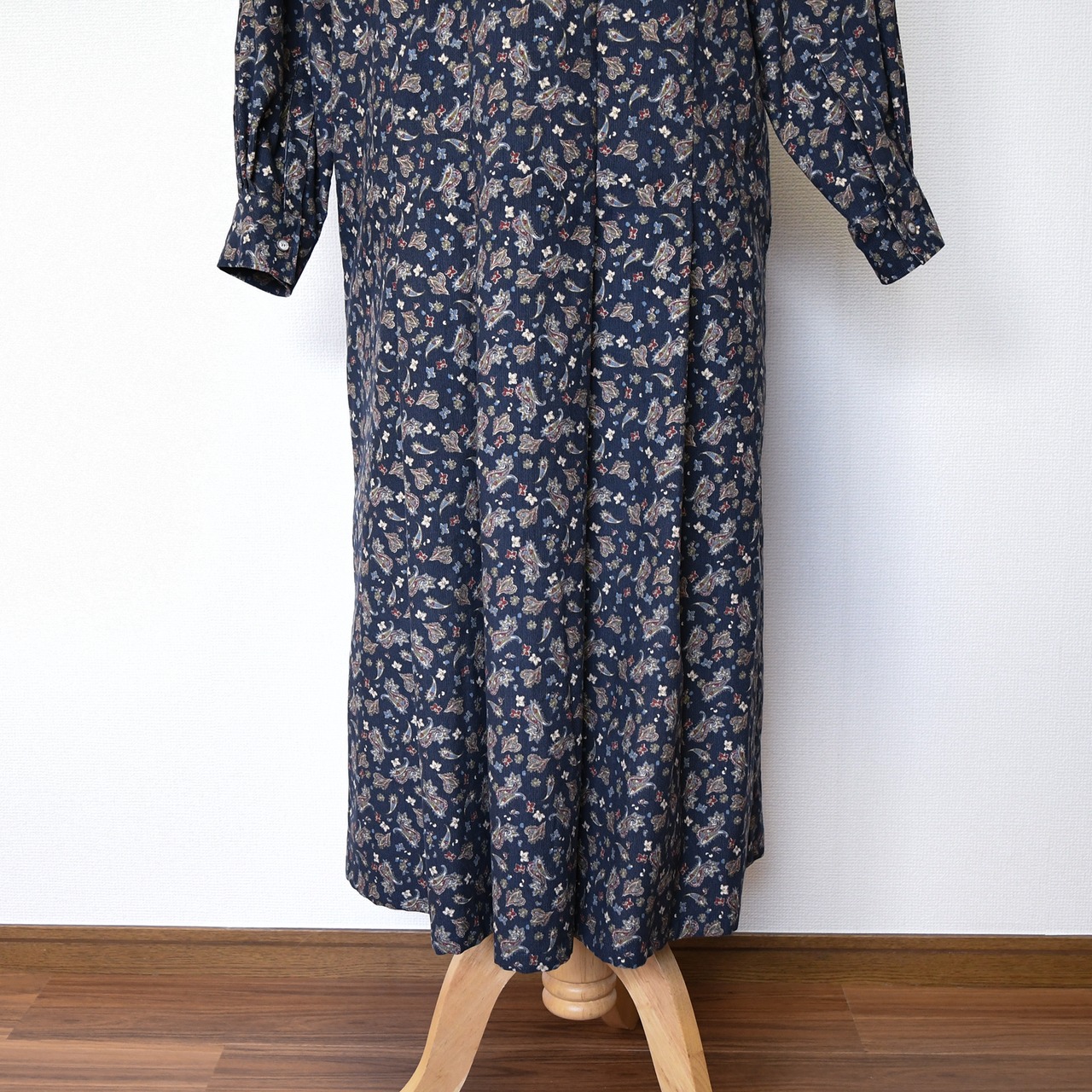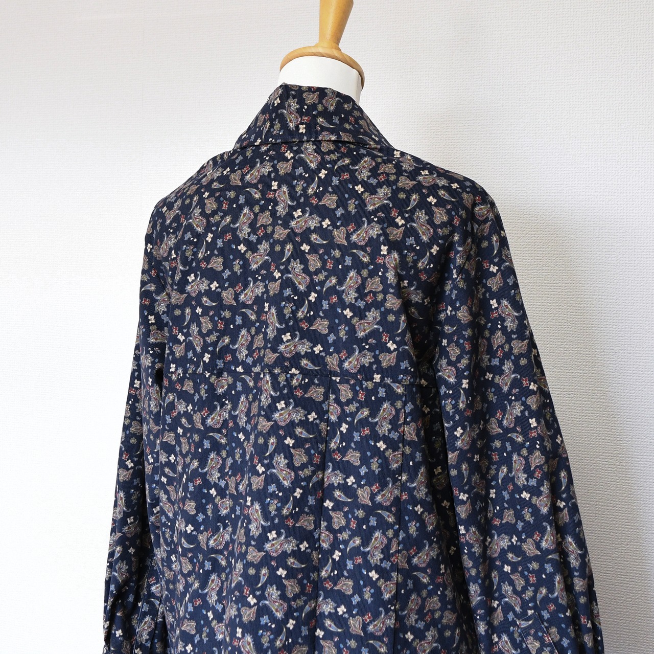 【完全一点物】プリーツタックワンピース(ネイビーペイズリーコーデュロイ)