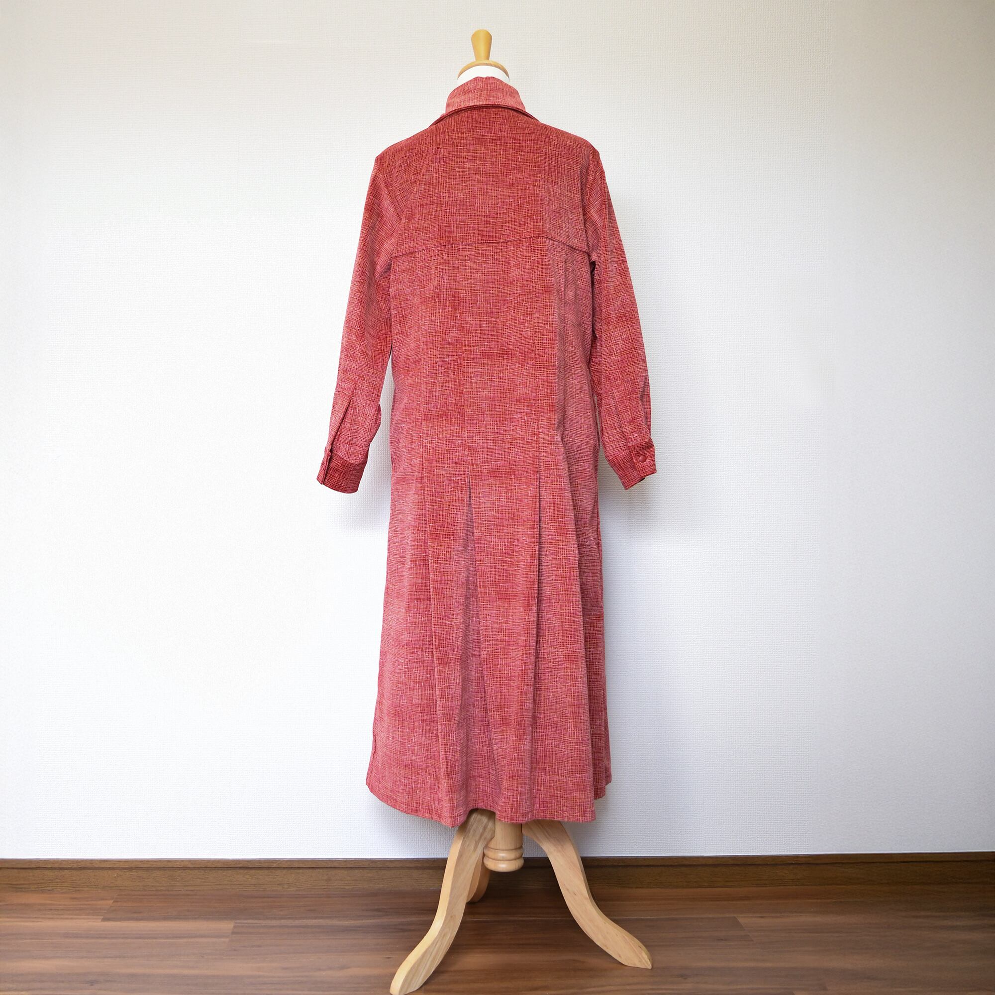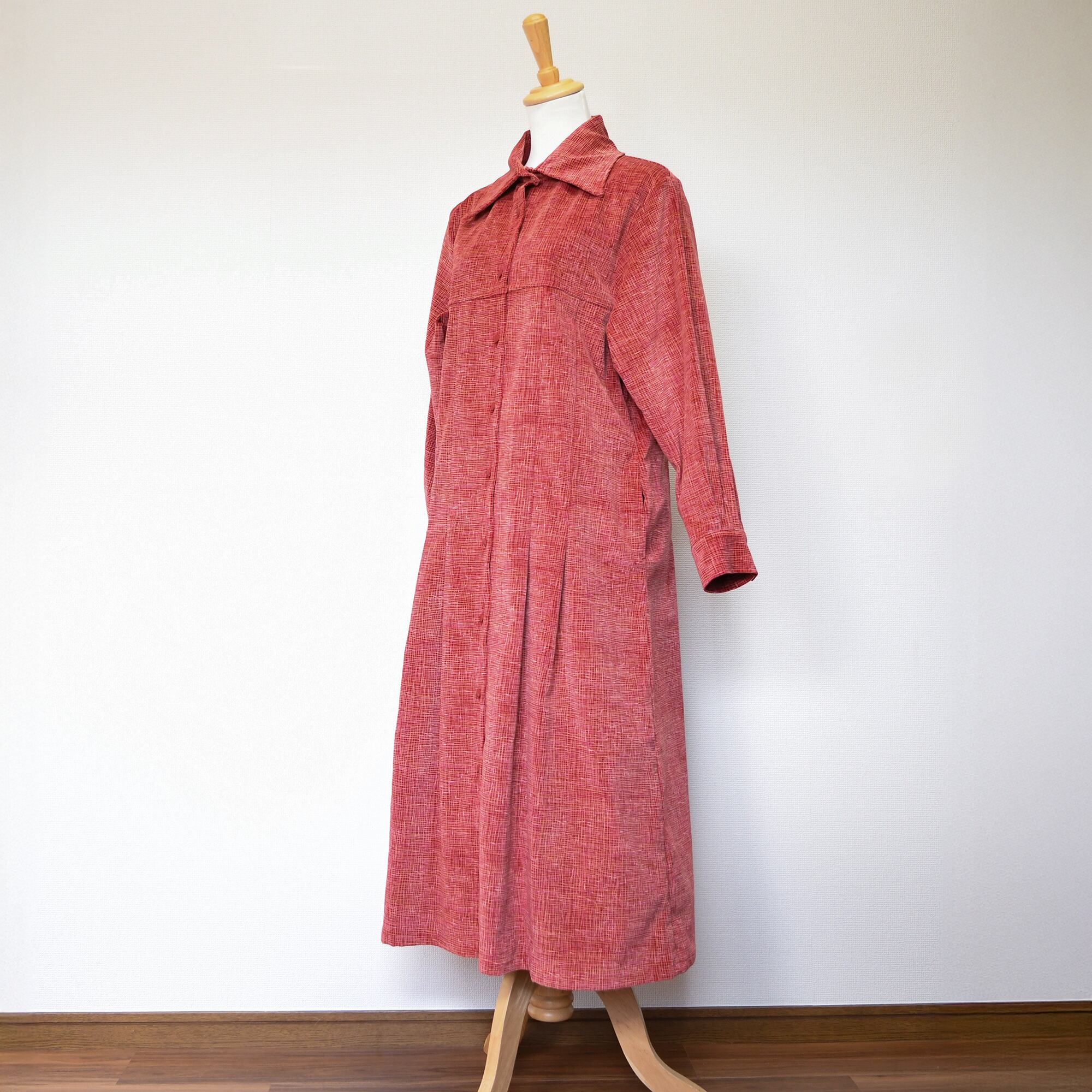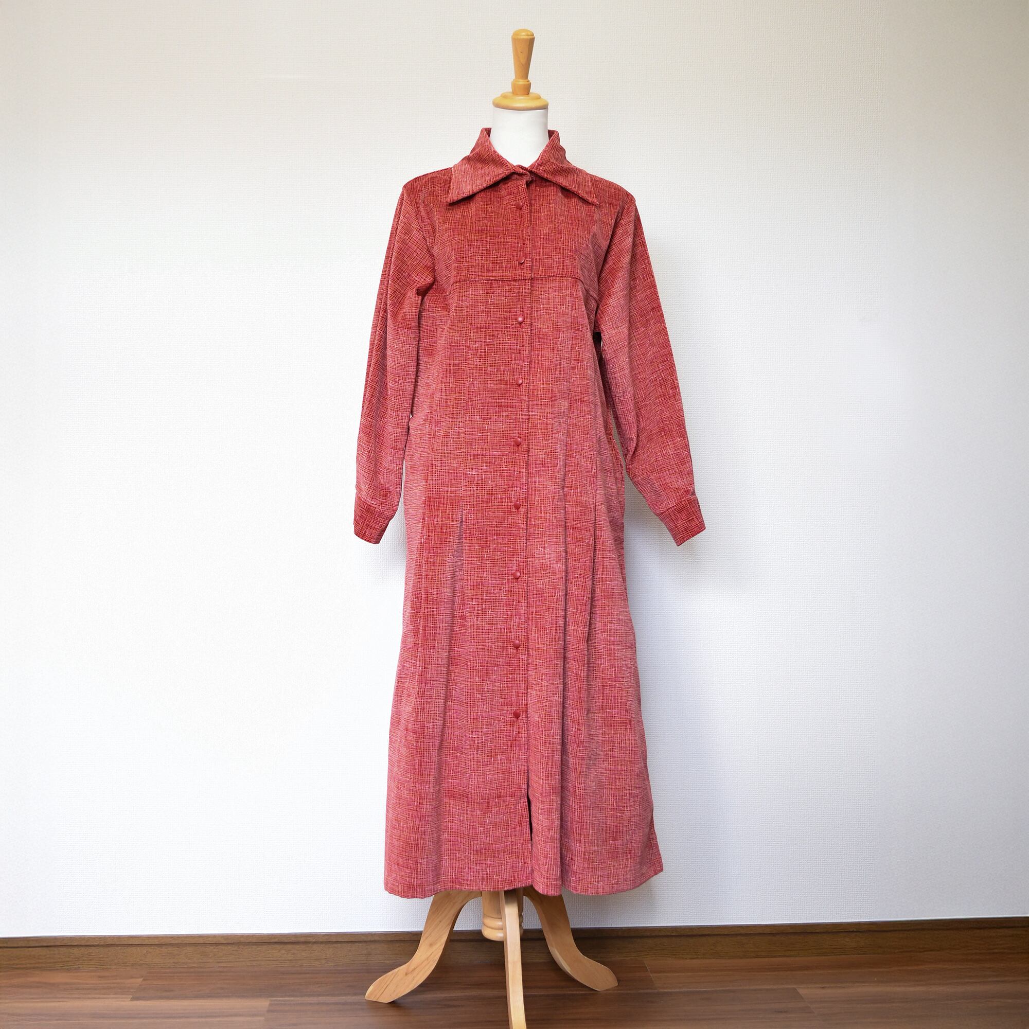【完全一点物】プリーツタックワンピース(レッドチェックコーデュロイ)