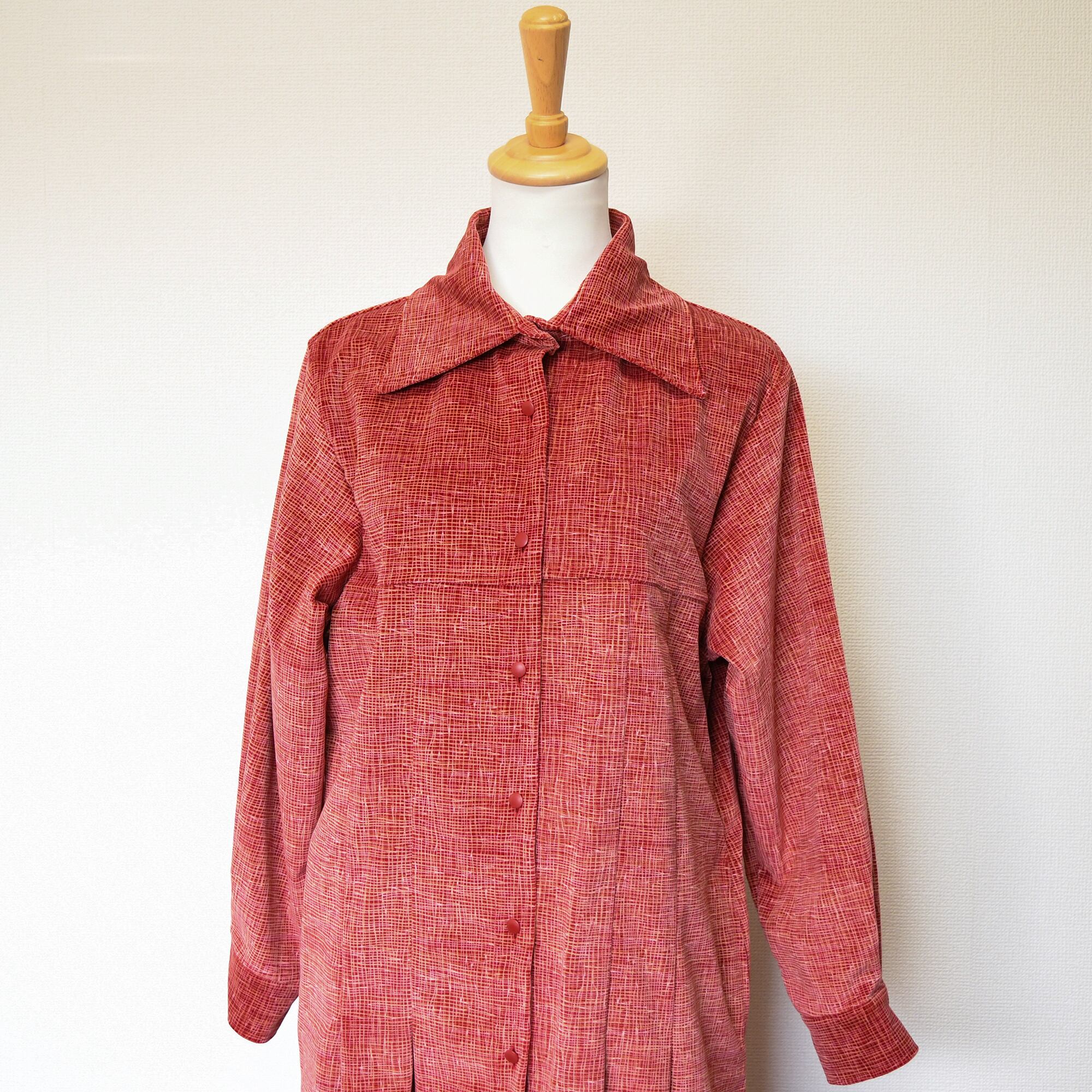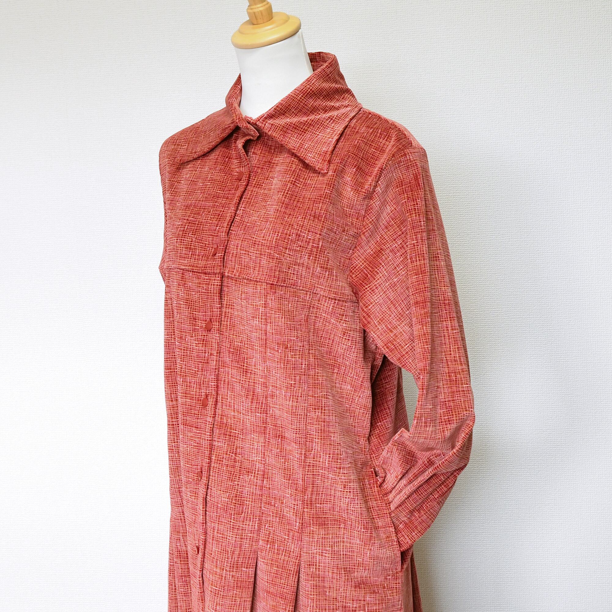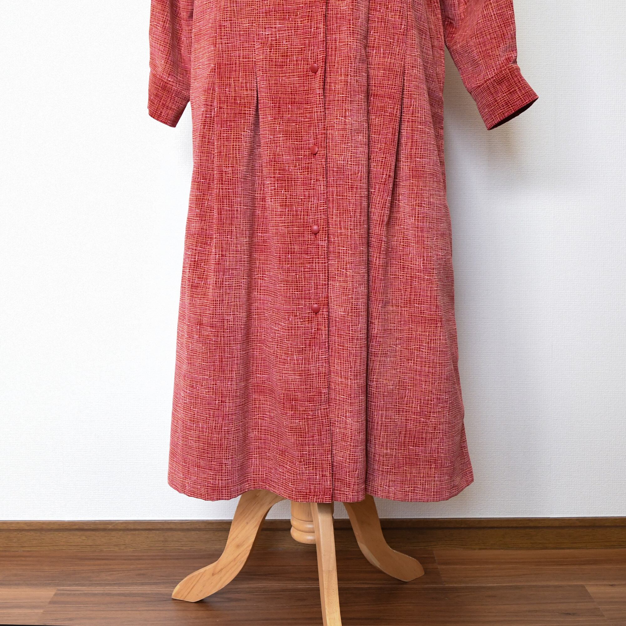 【完全一点物】プリーツタックワンピース(レッドチェックコーデュロイ)