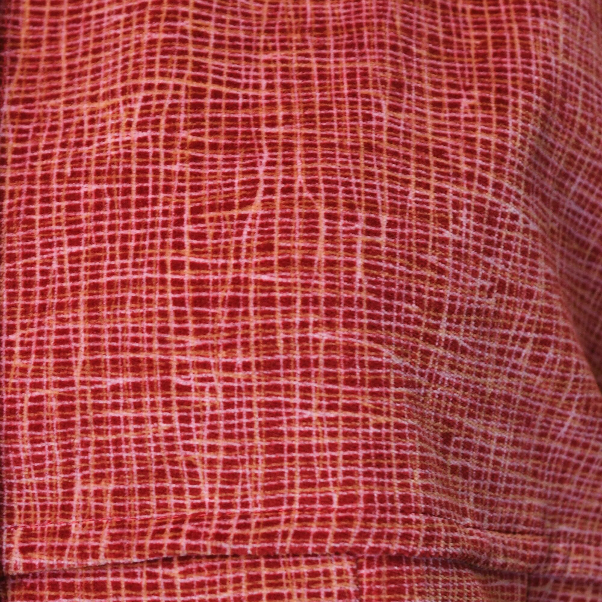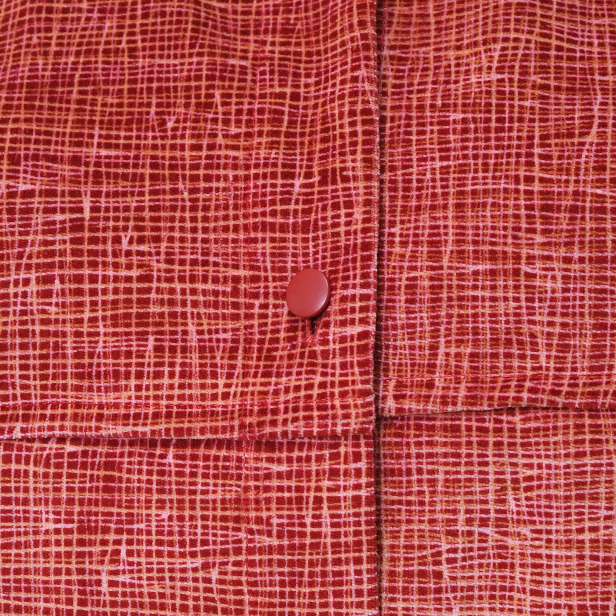 レッドだけど、コーデュロイの質感で柔らかい雰囲気の一枚です。