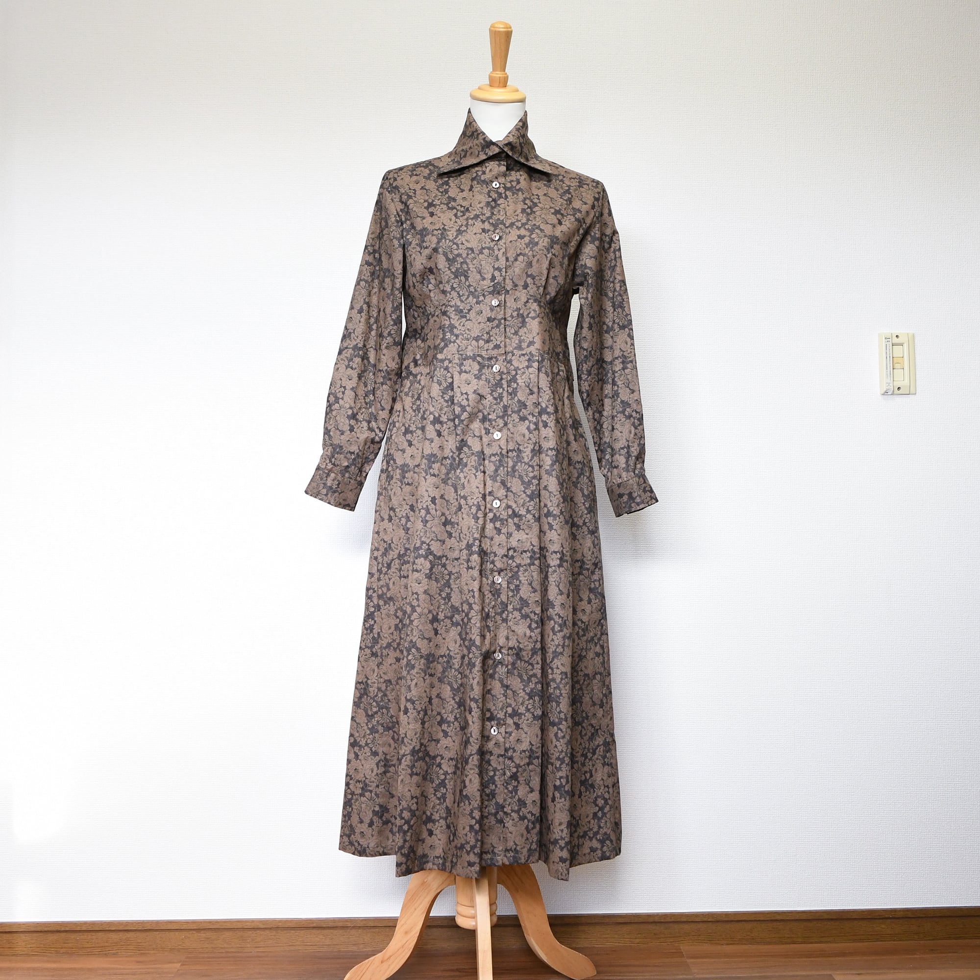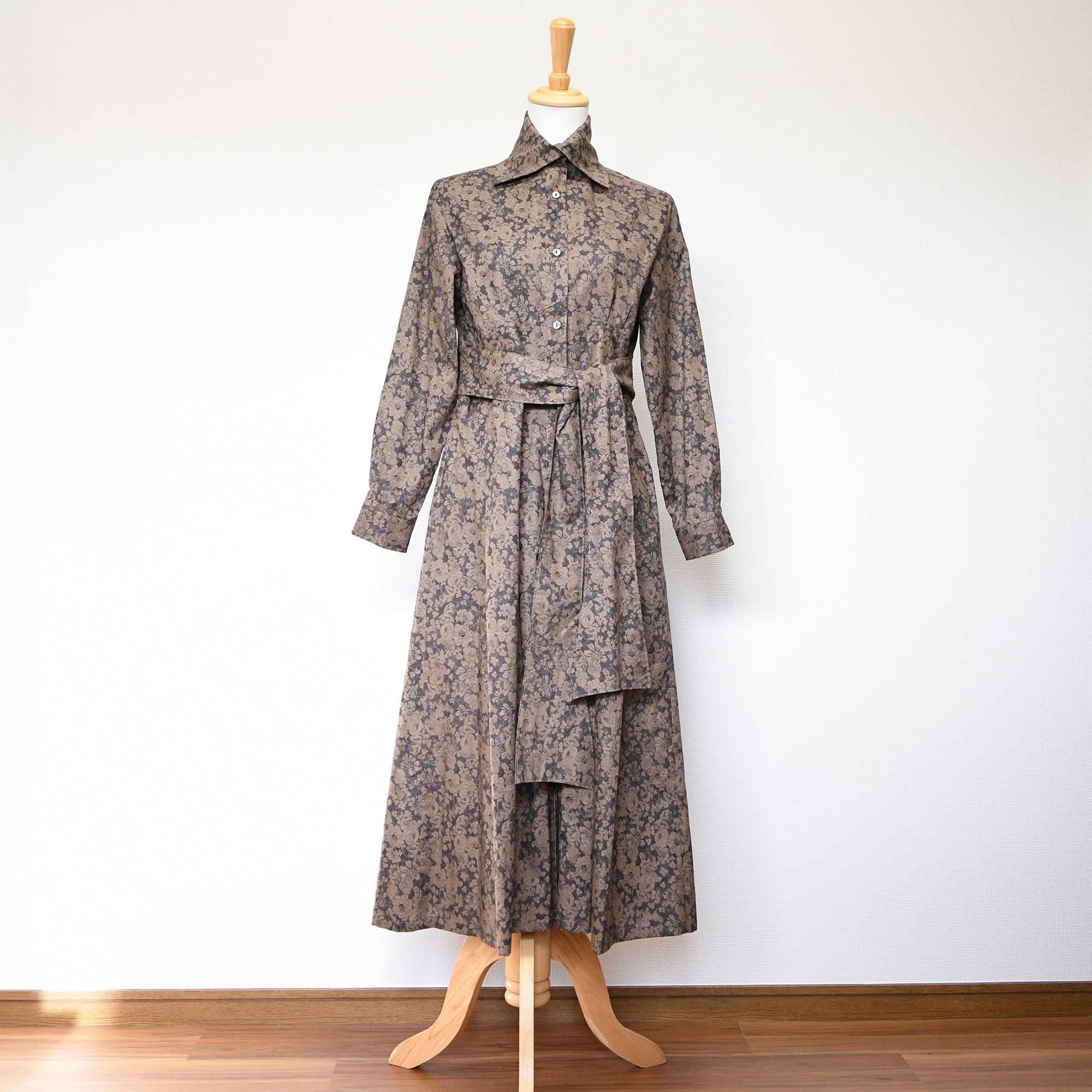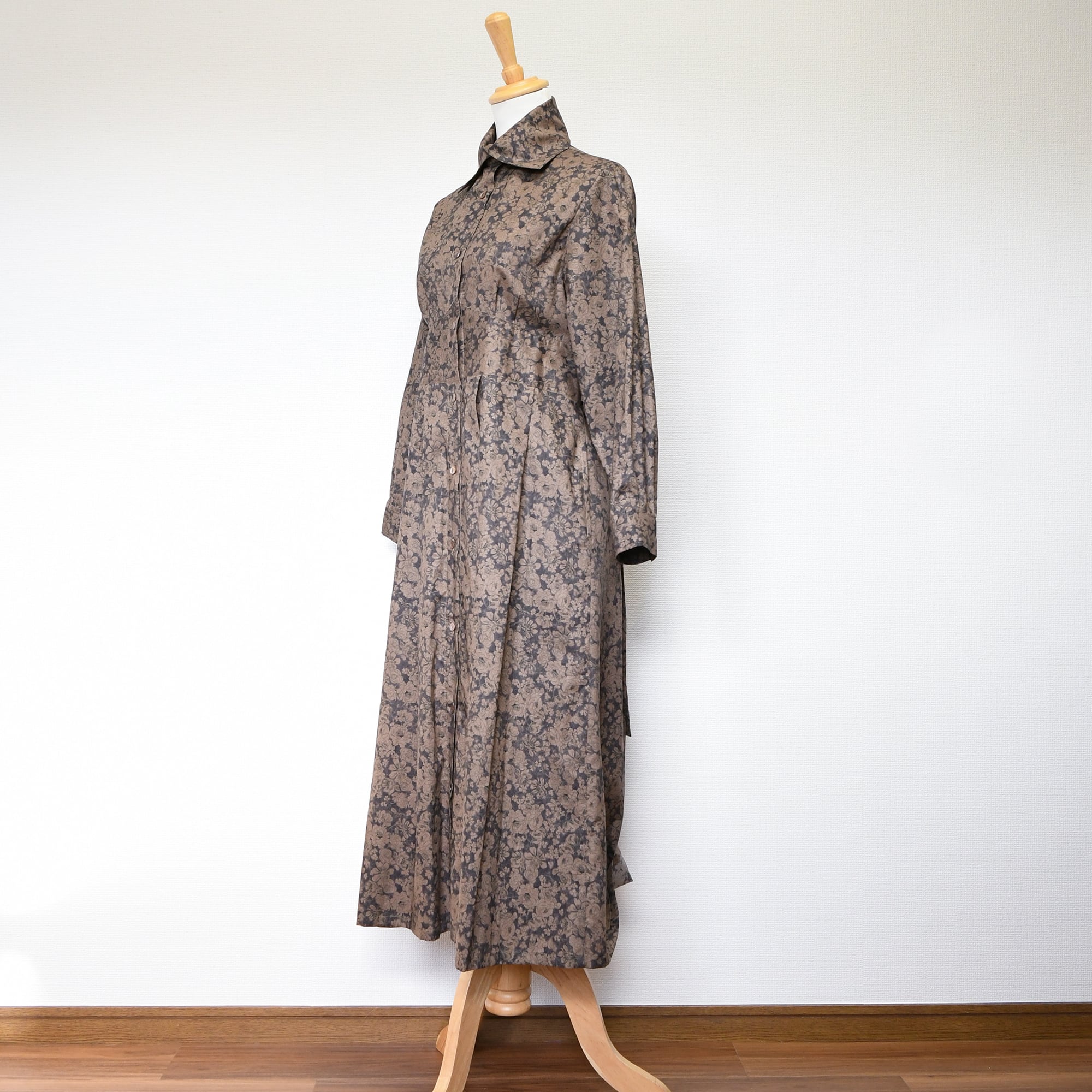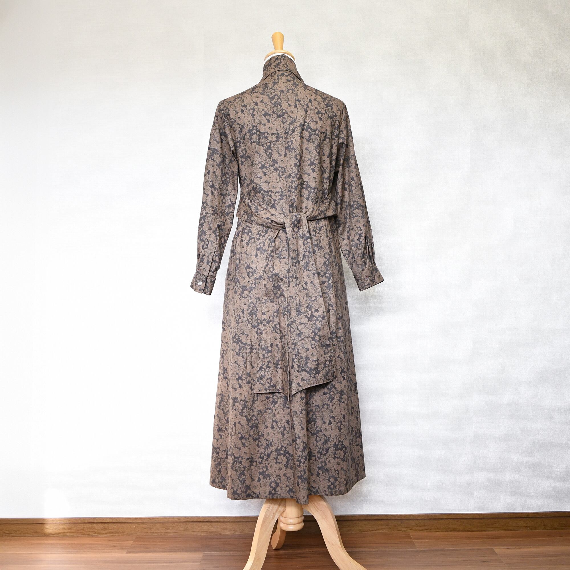 【完全一点物】ウエストリボンワンピース(ブラウンフラワー)