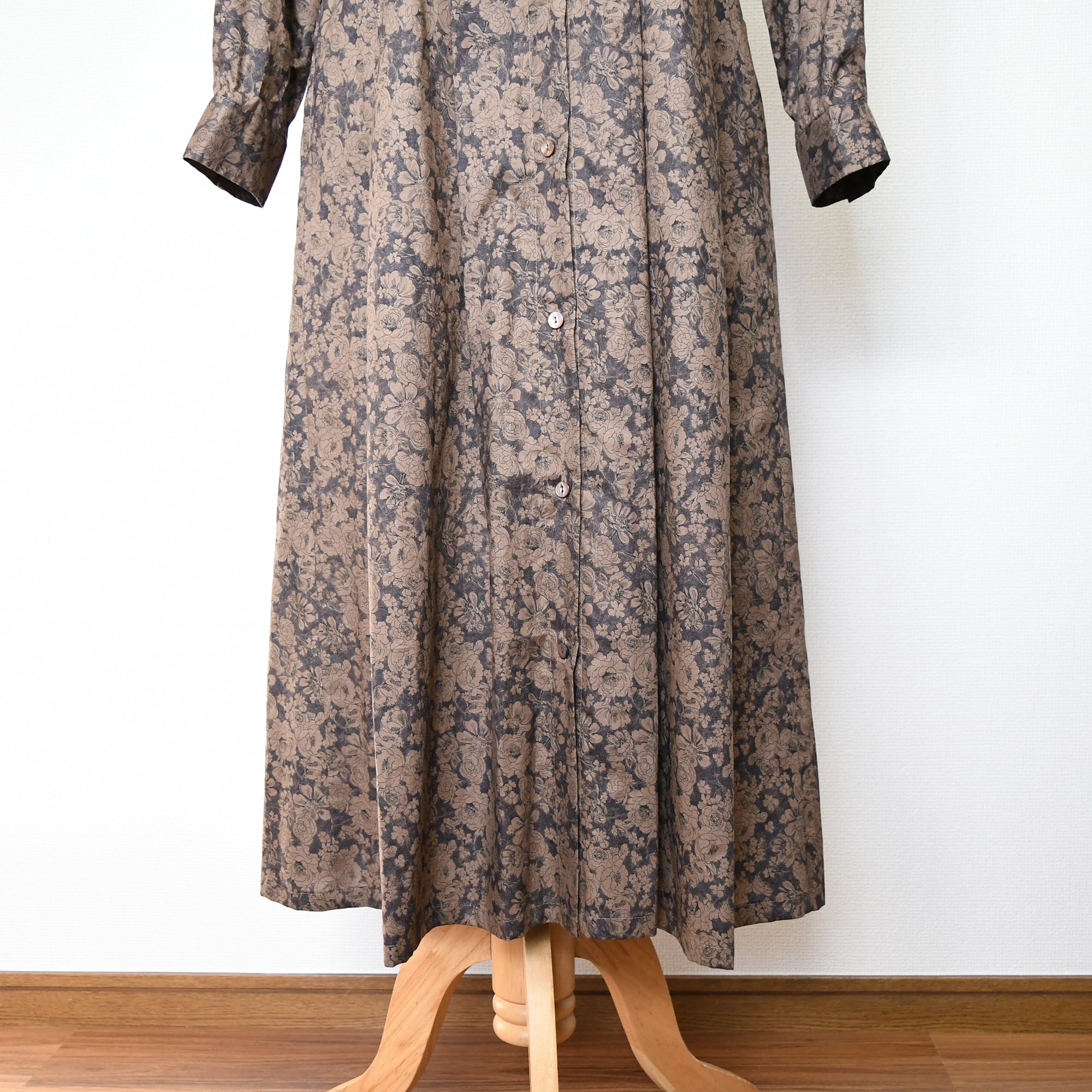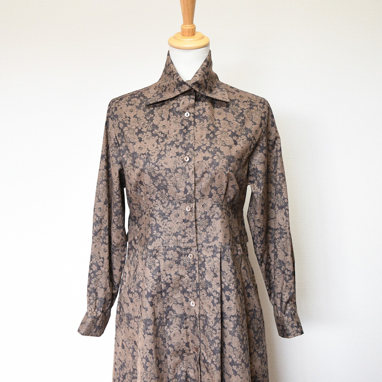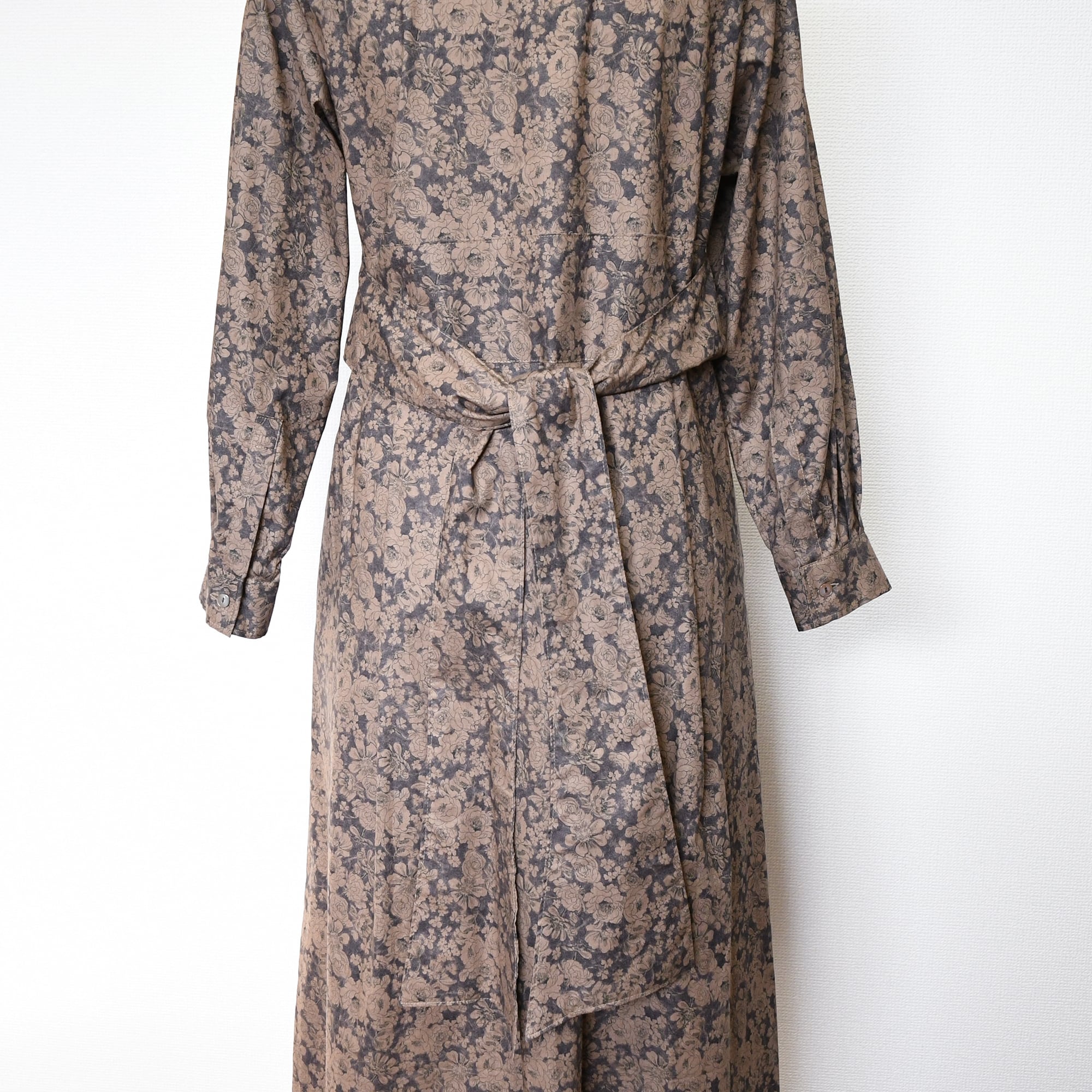 【完全一点物】ウエストリボンワンピース(ブラウンフラワー)