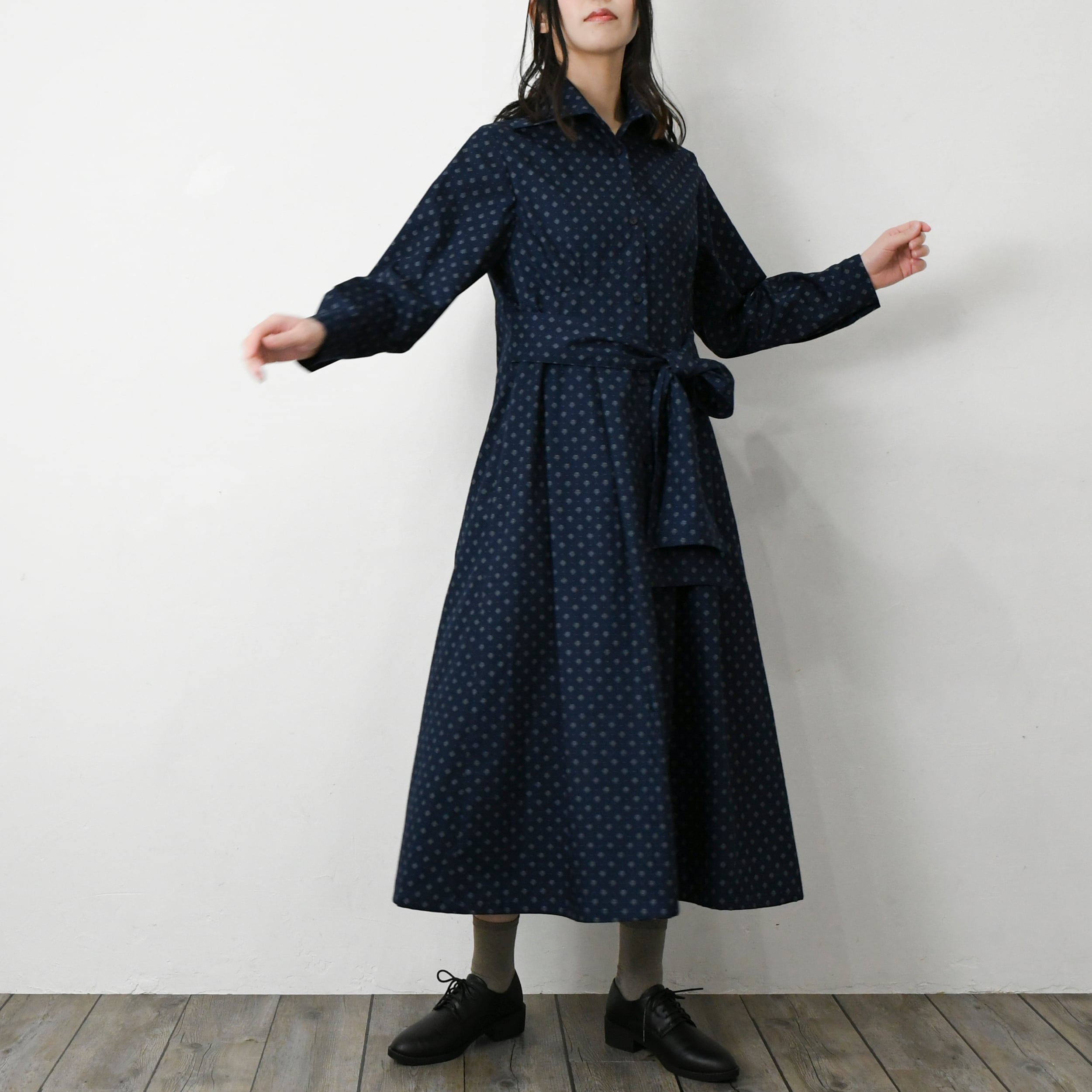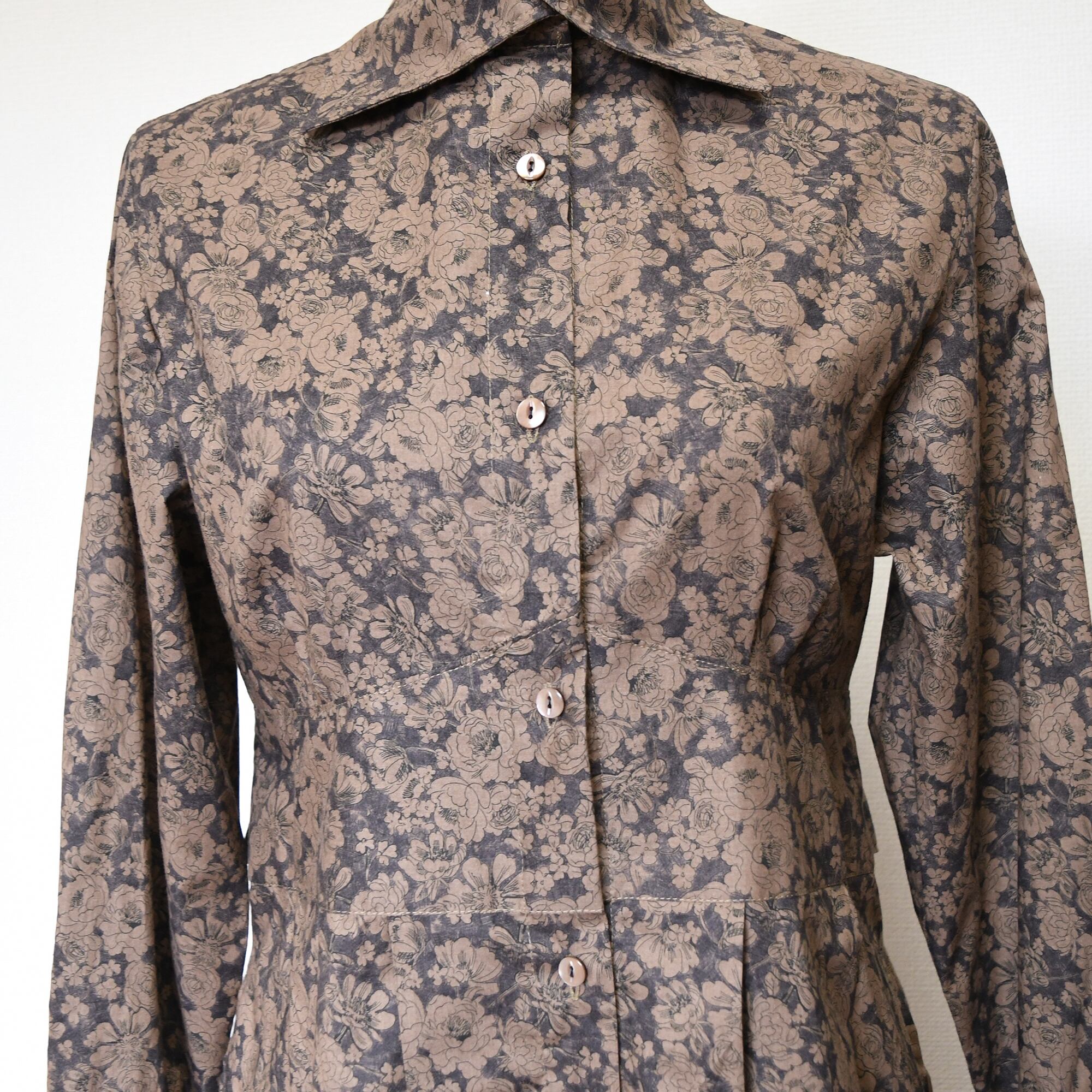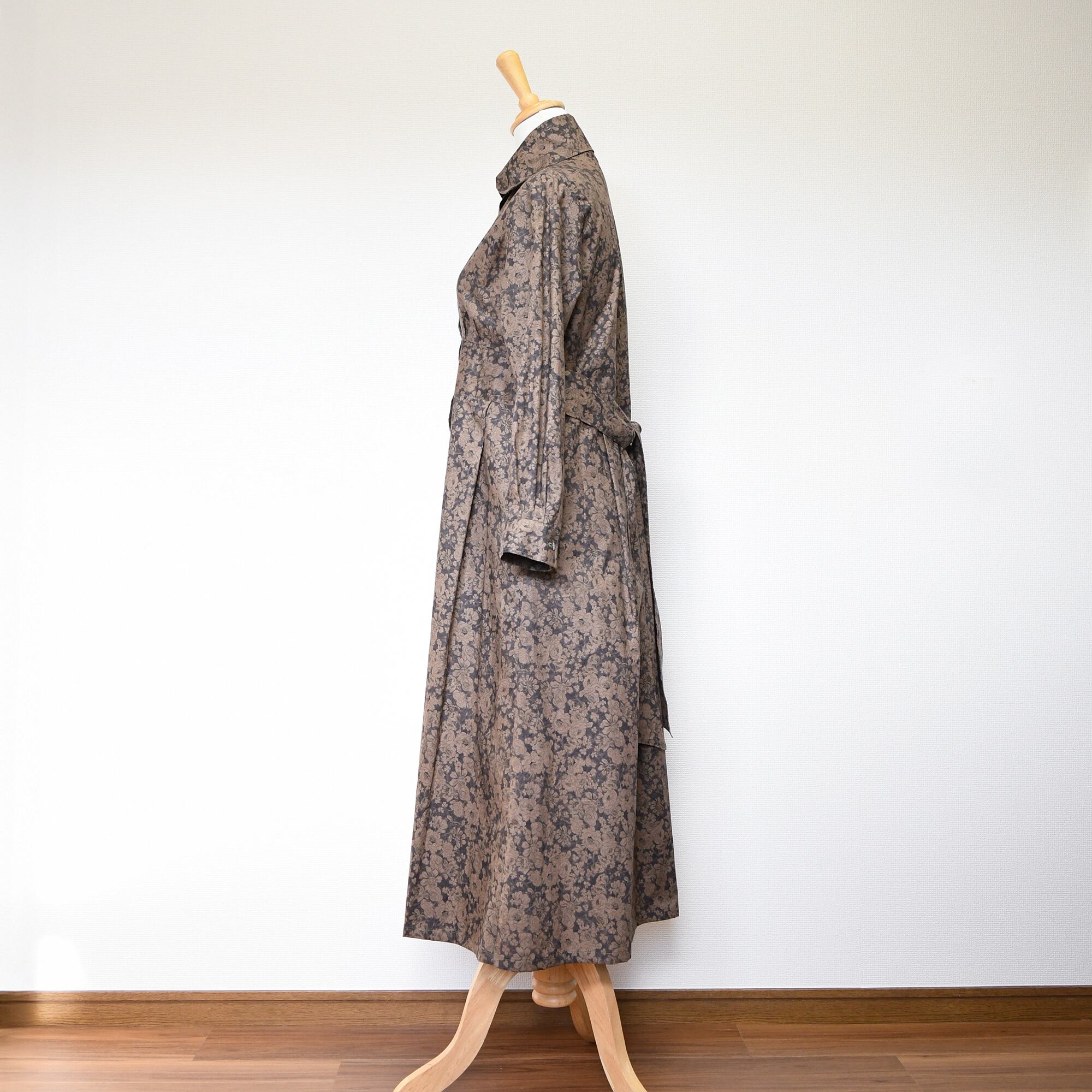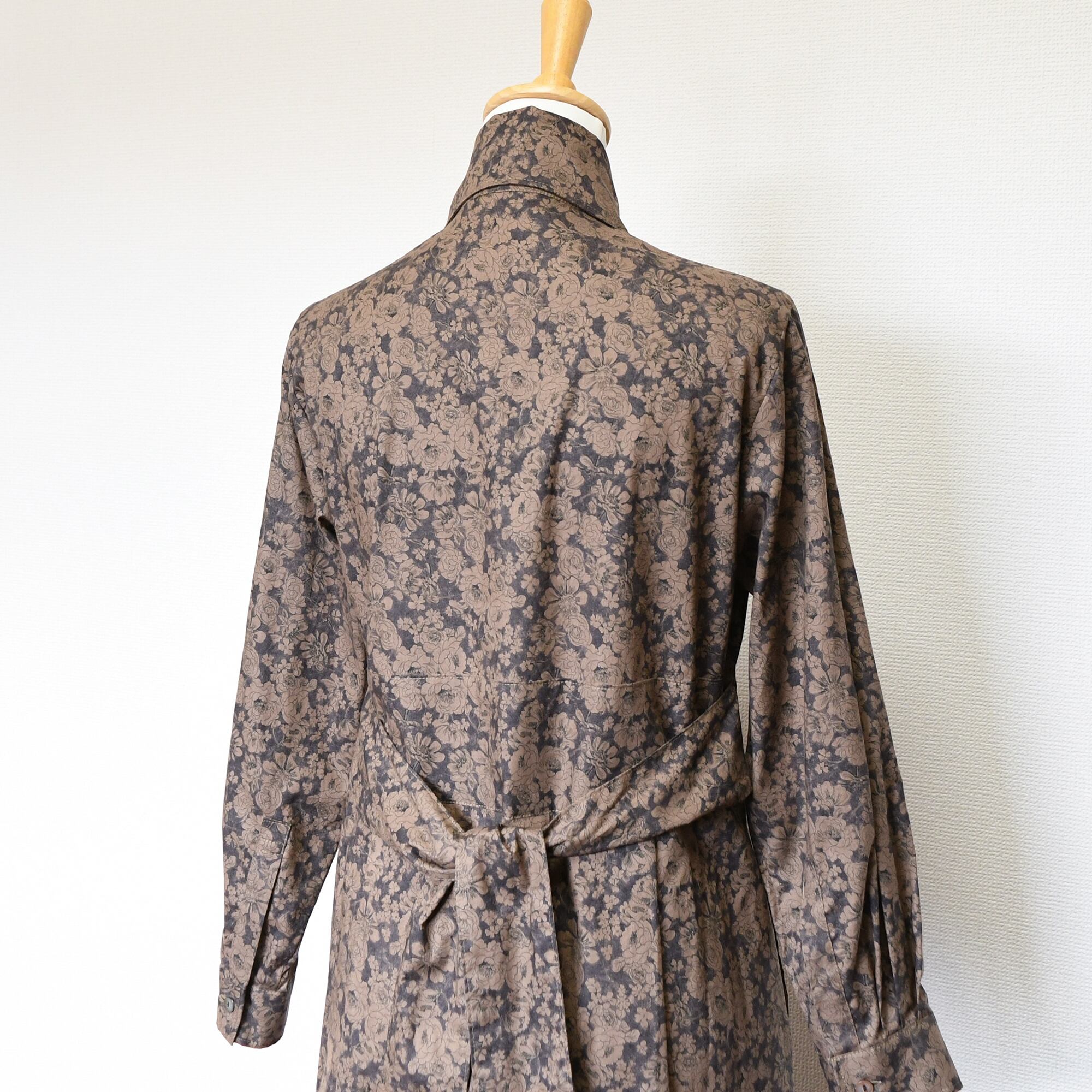 【完全一点物】ウエストリボンワンピース(ブラウンフラワー)