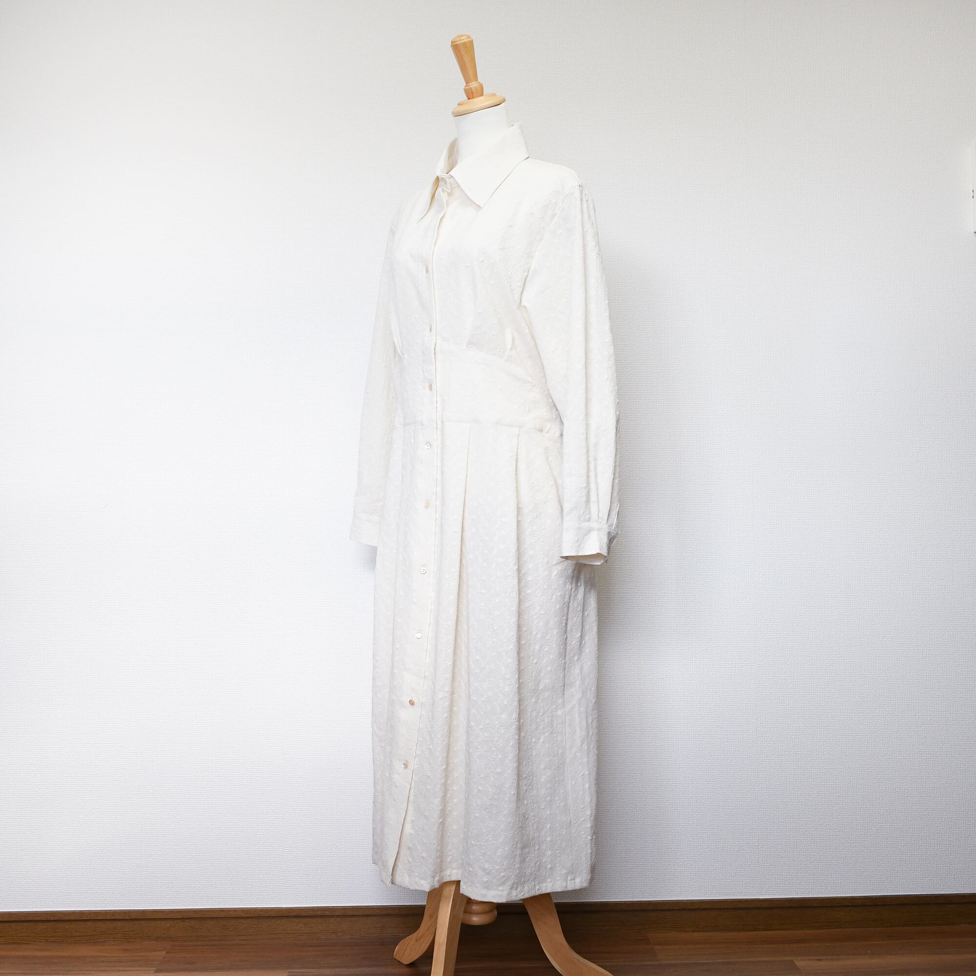 ウエストの切替部分よりタックを入れ、裾に向かい広がるAラインのシルエットでフェミニンに仕上げました。