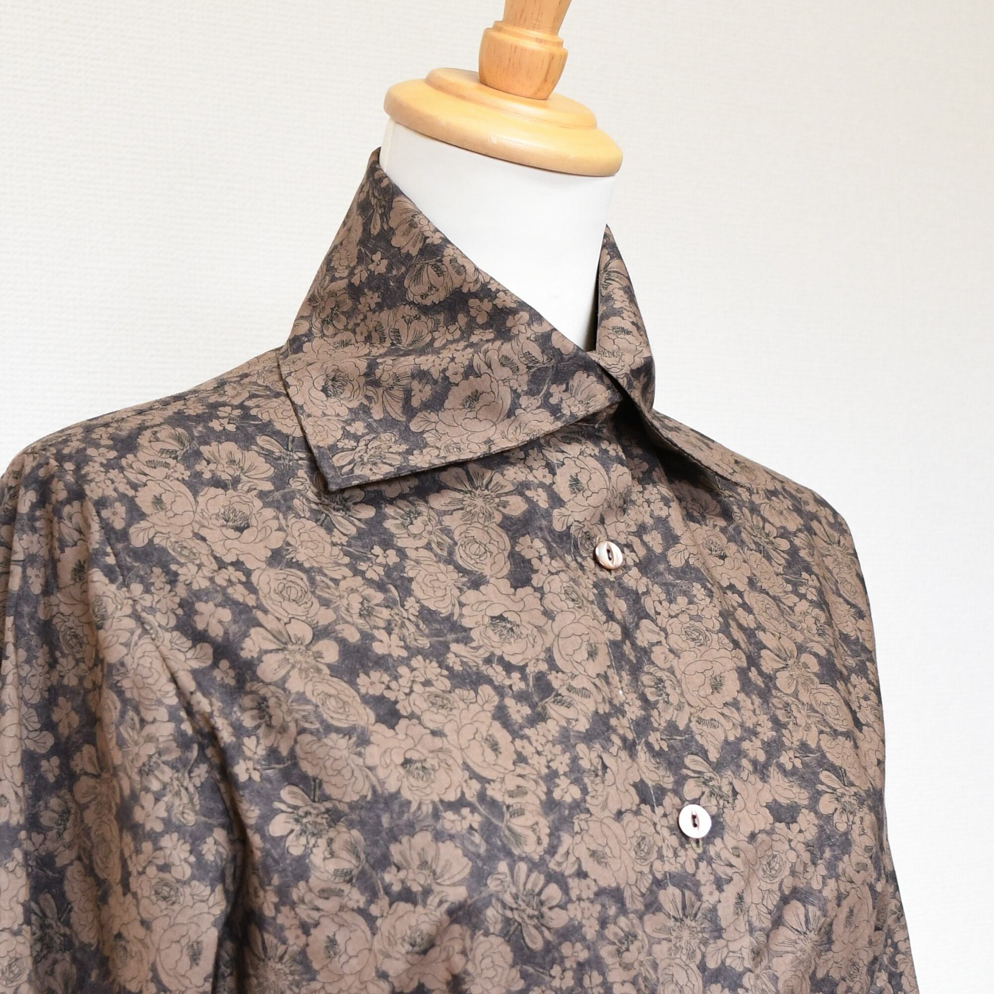 ブラックとブラウンの花柄の生地を使用したことでレトロでシックな一枚に。