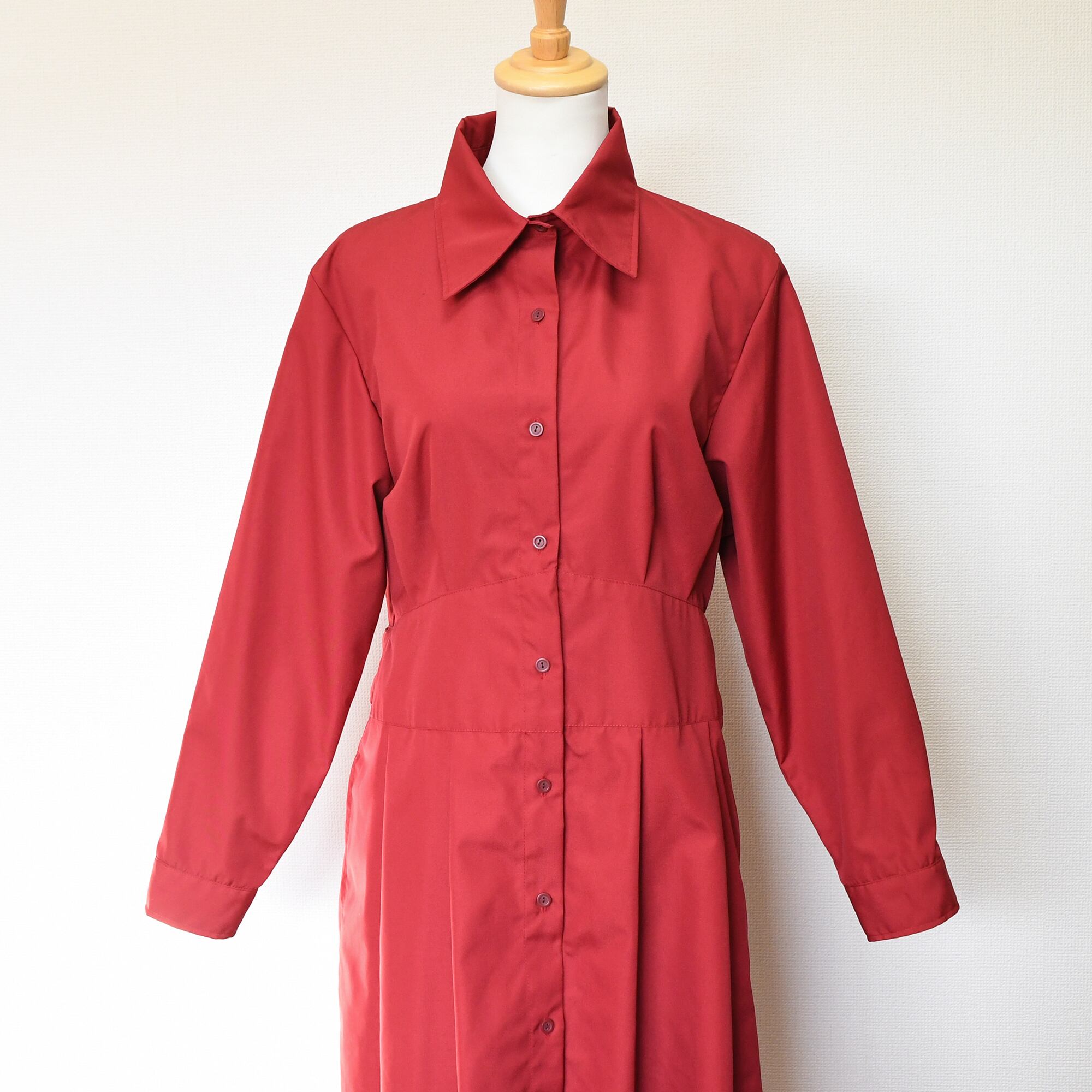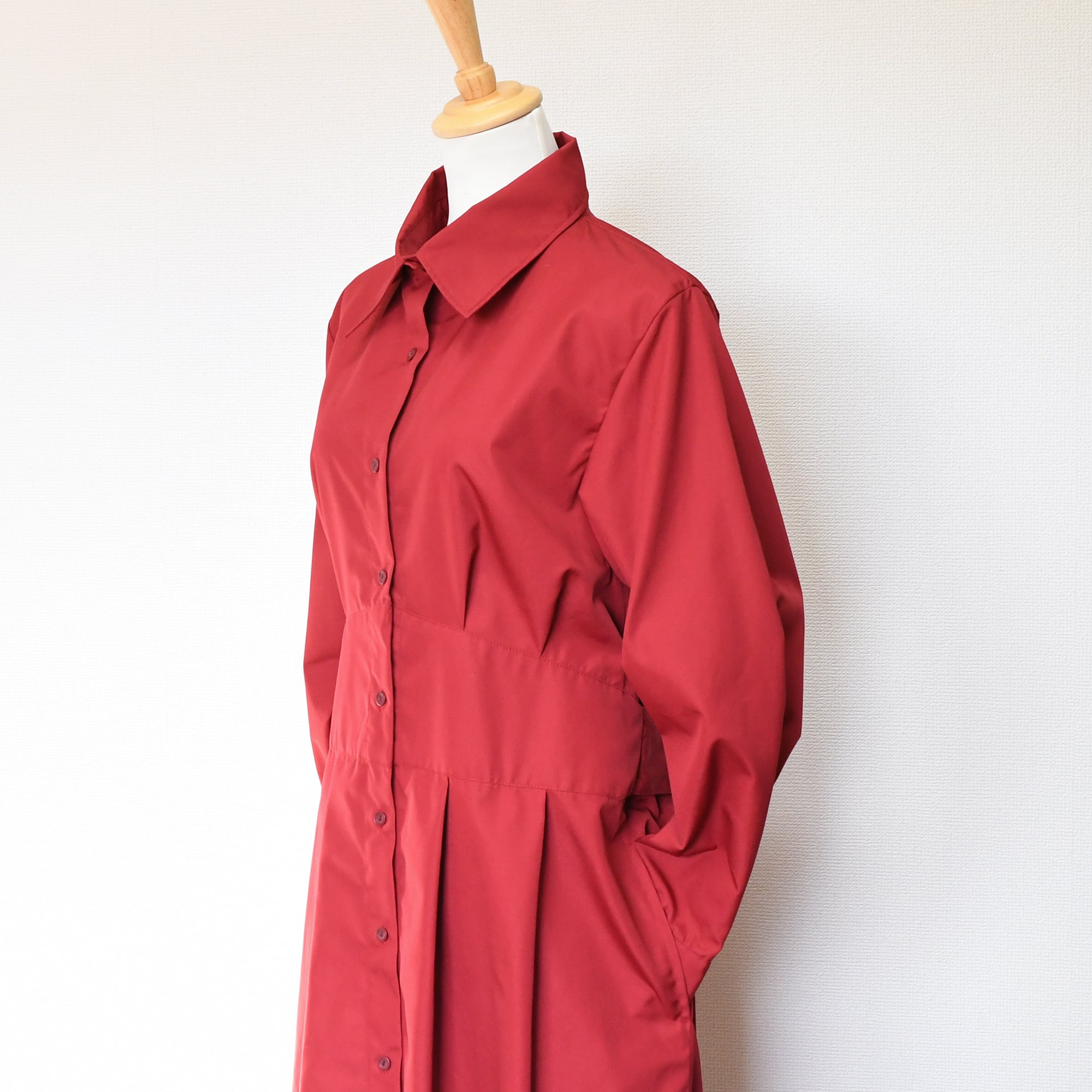 ウエストの切替部分よりタックを入れ、裾に向かい広がるAラインのシルエットでフェミニンに仕上げました。