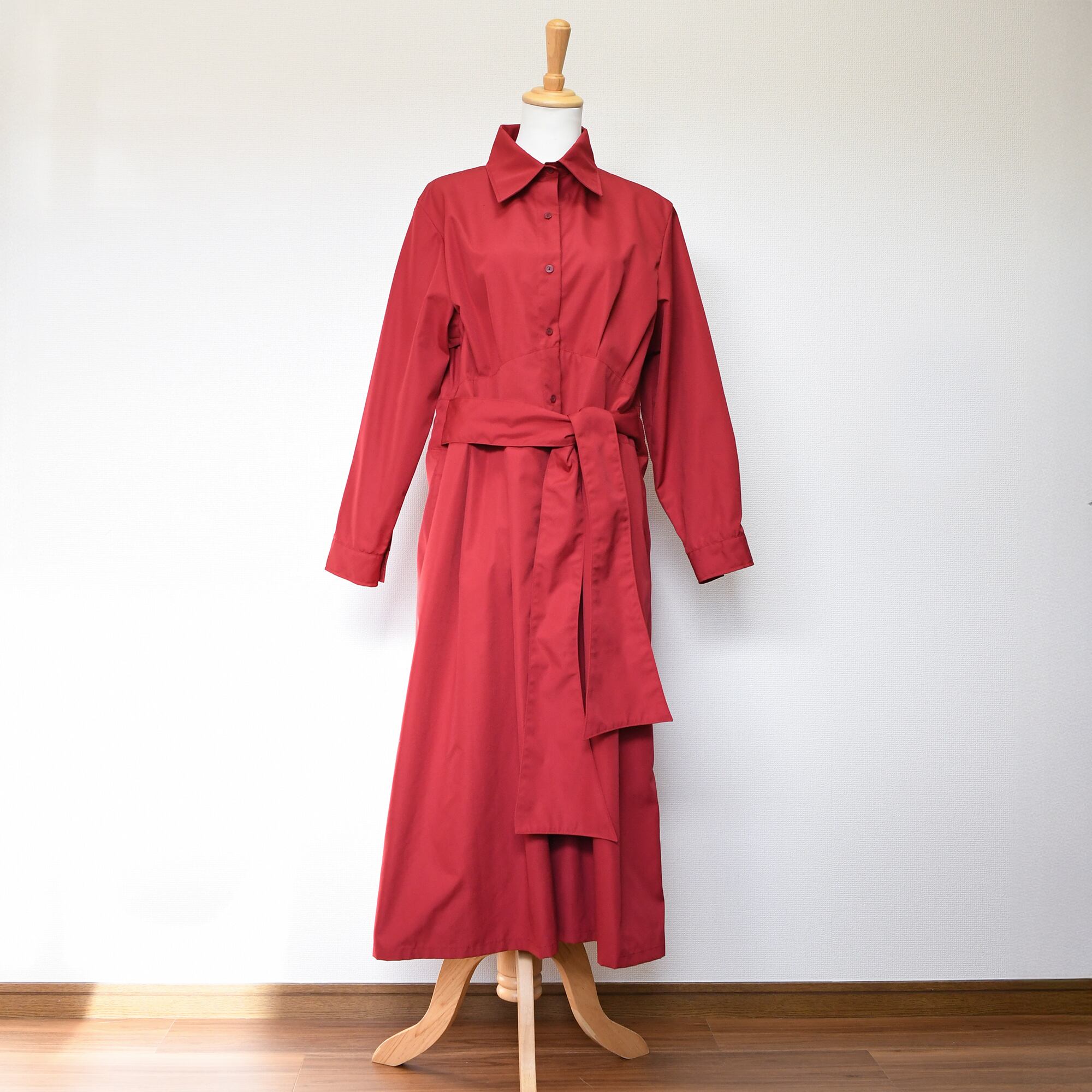 ウエストについた存在感のある太めのリボンベルトがポイント。