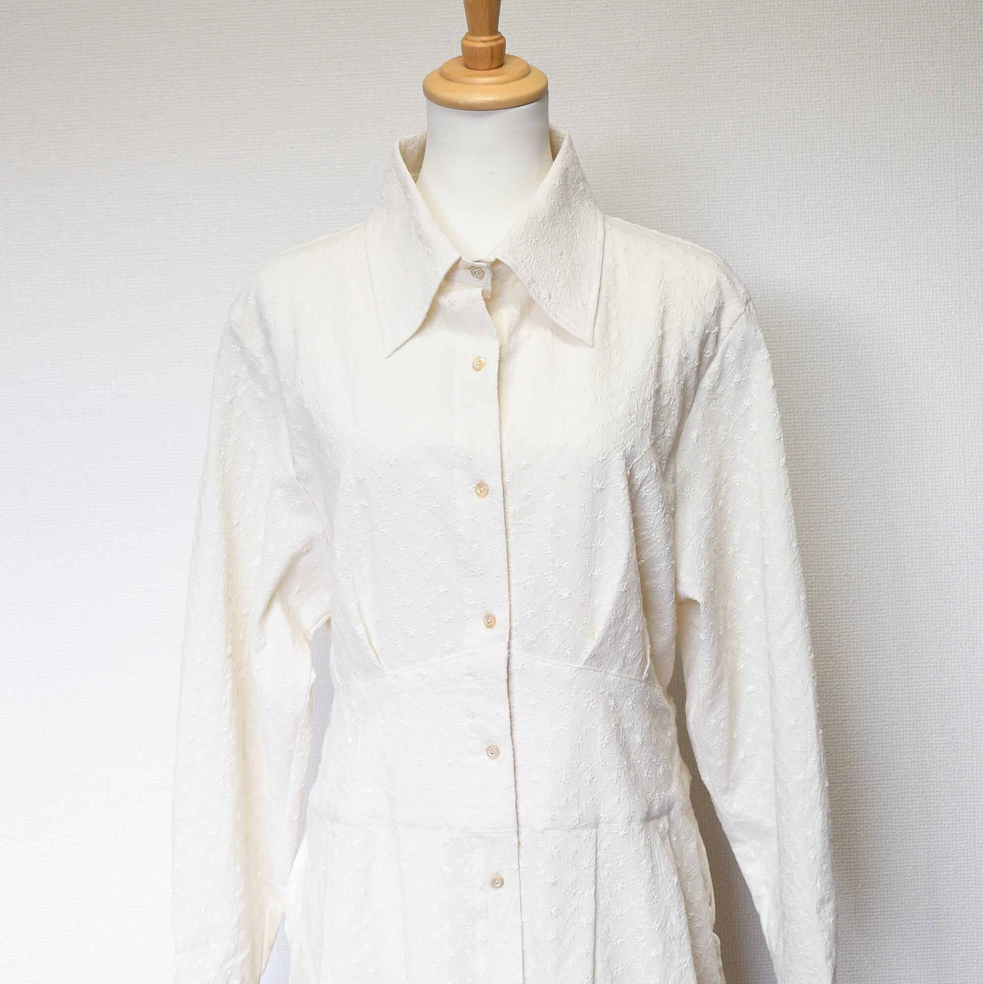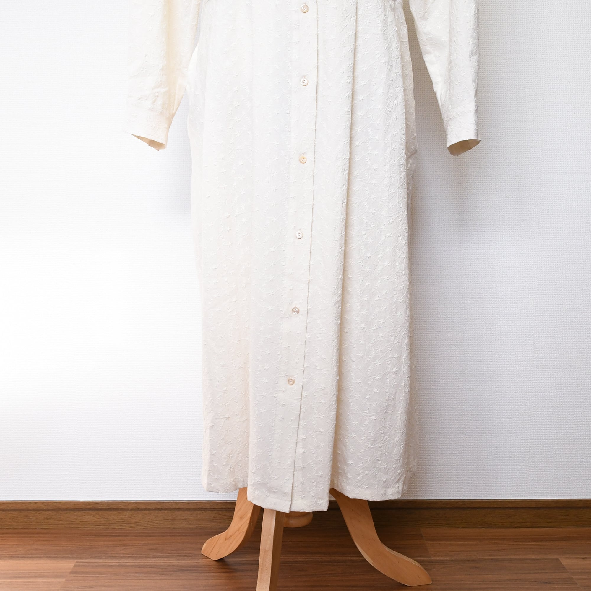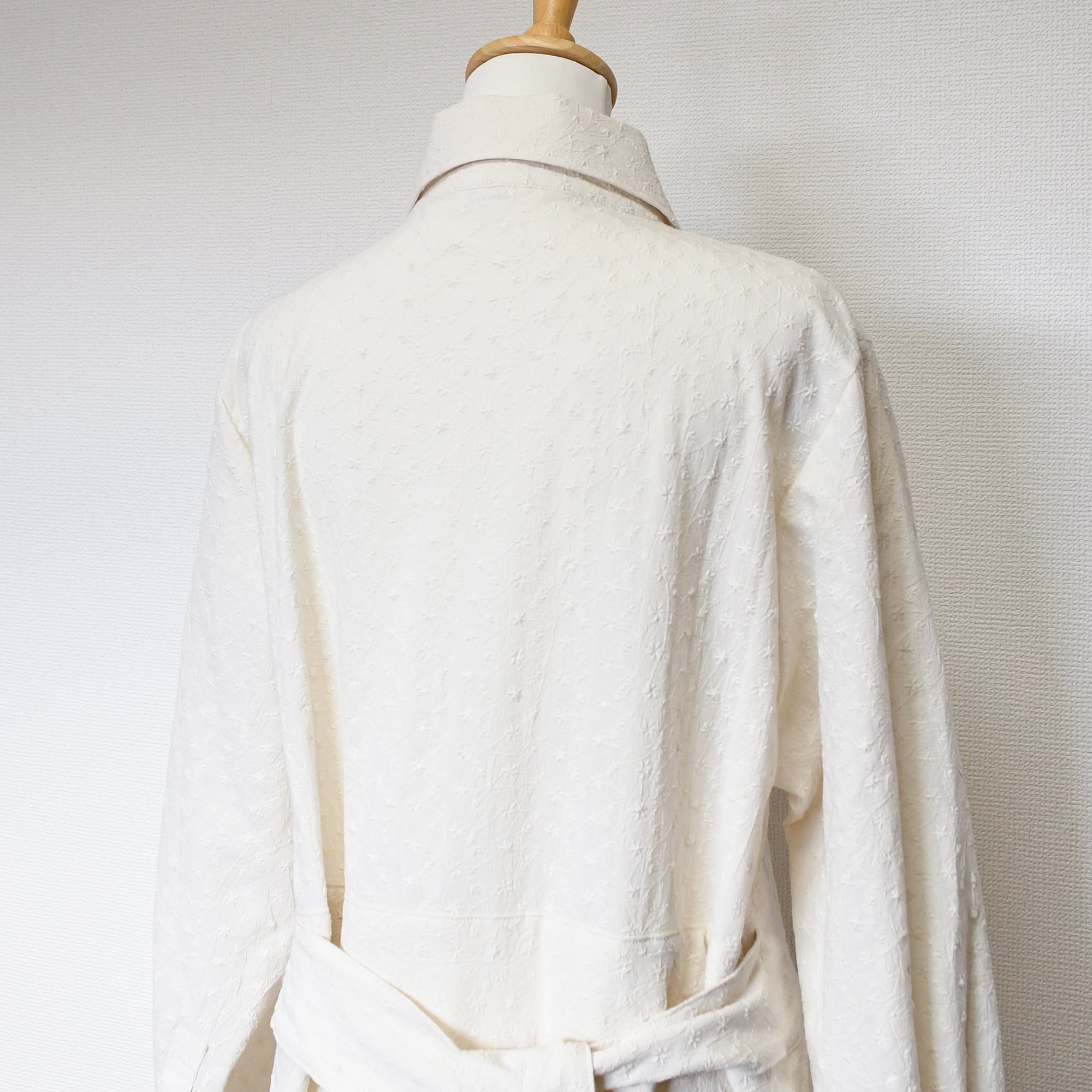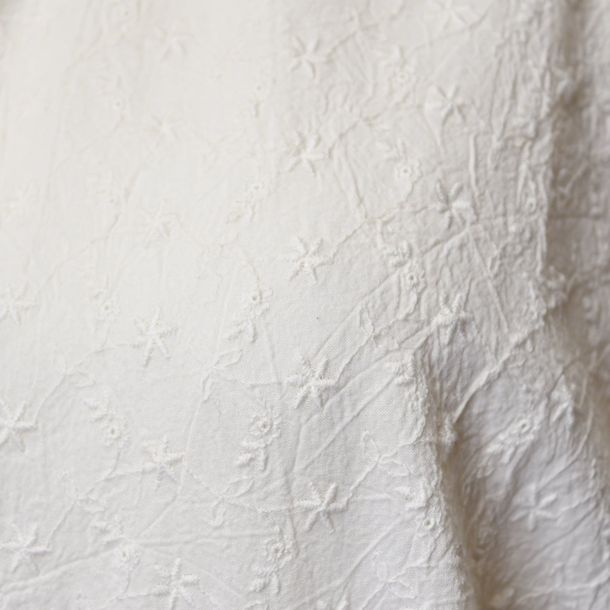 オフホワイトの優しいお色味の生地に花柄のレースが施されています。