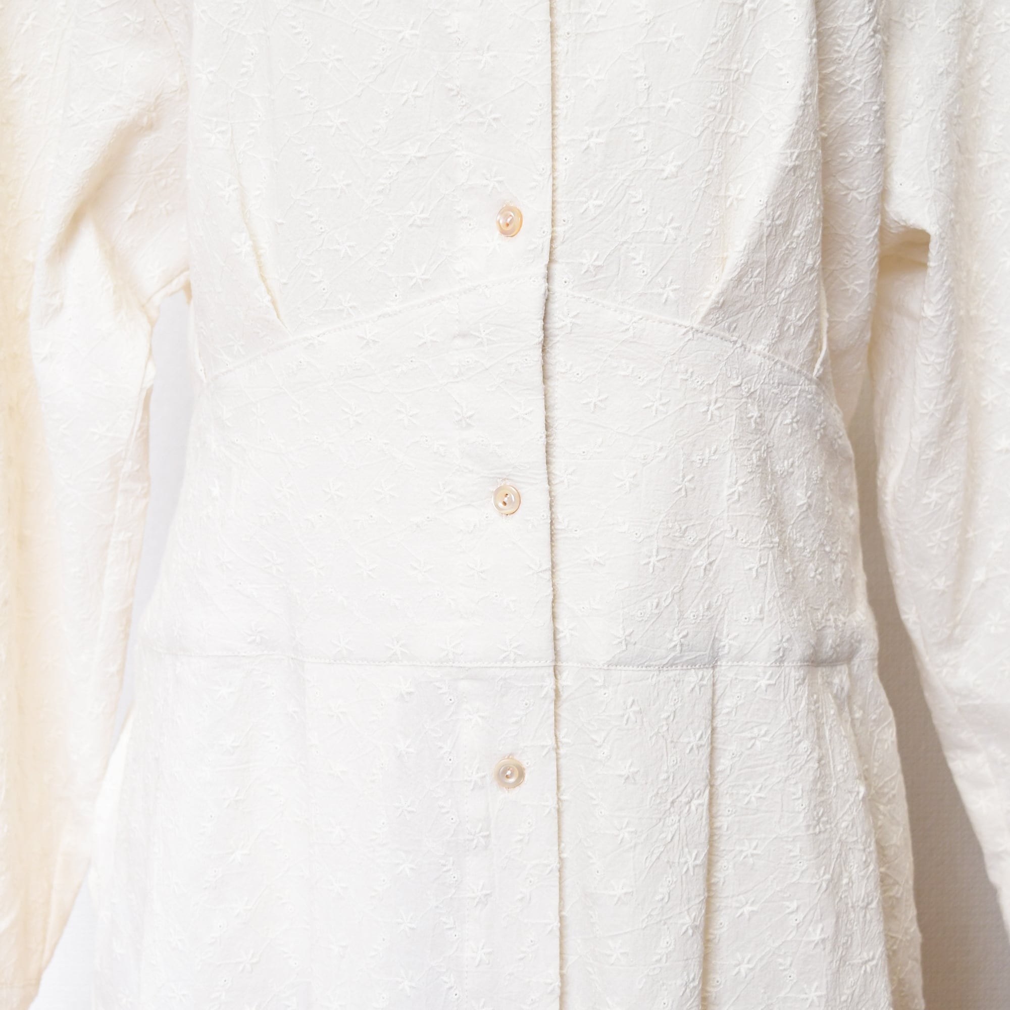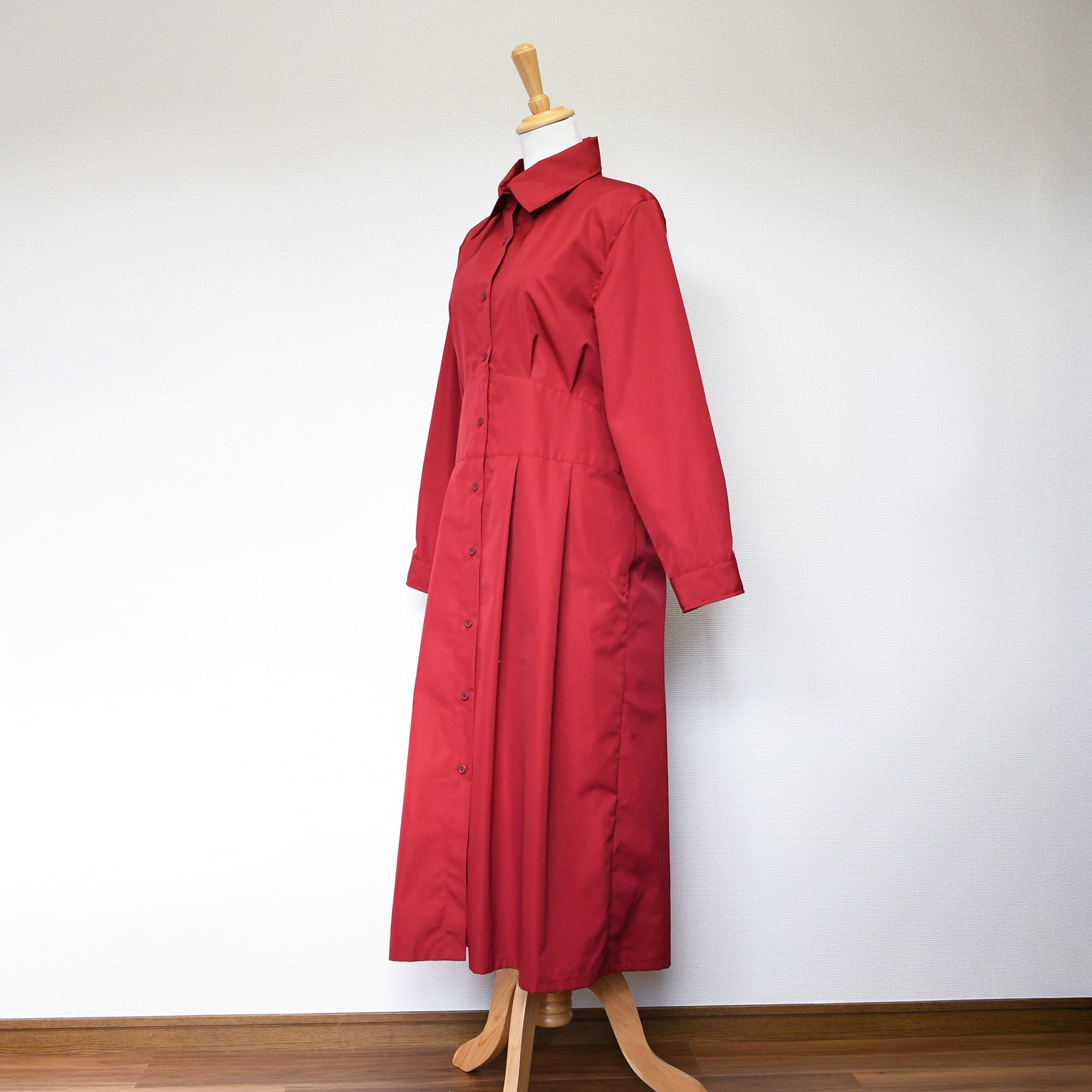 ウエストの切替部分よりタックを入れ、裾に向かい広がるAラインのシルエットでフェミニンに仕上げました。