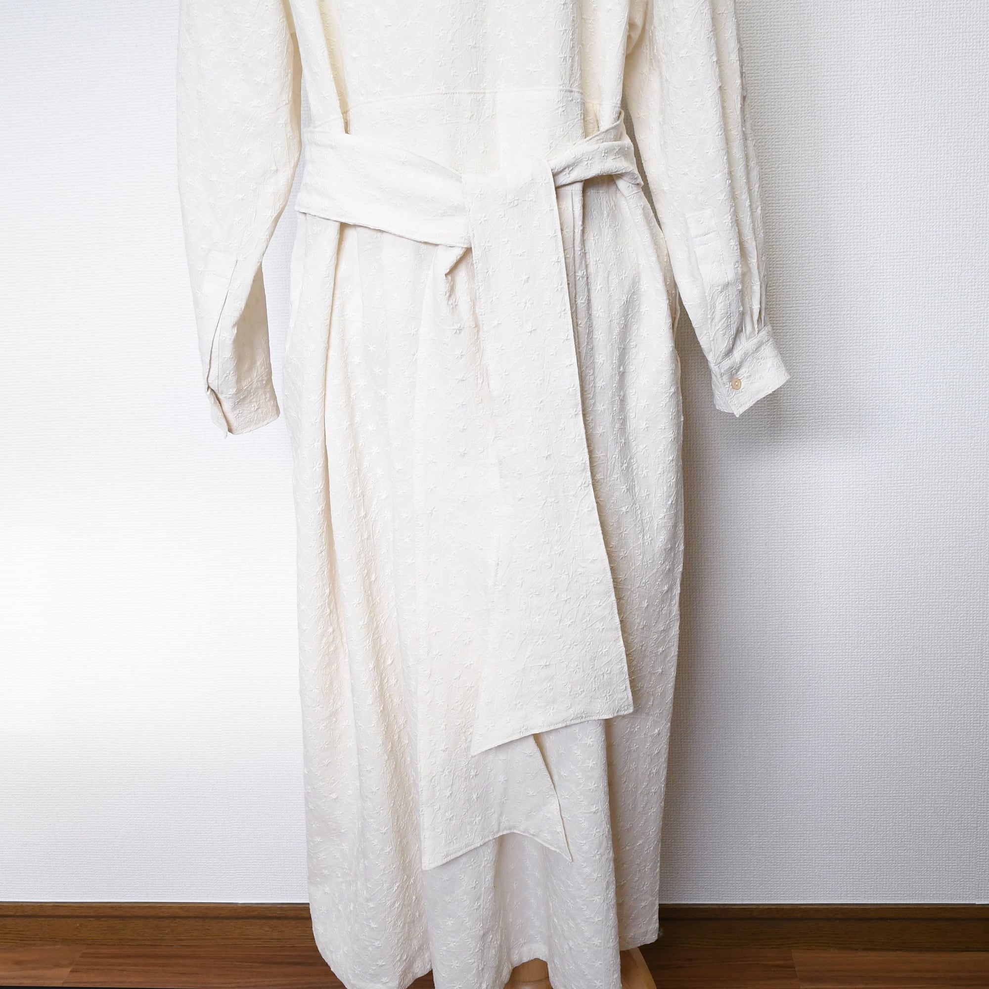 ウエストについた存在感のある太めのリボンベルトがポイント。