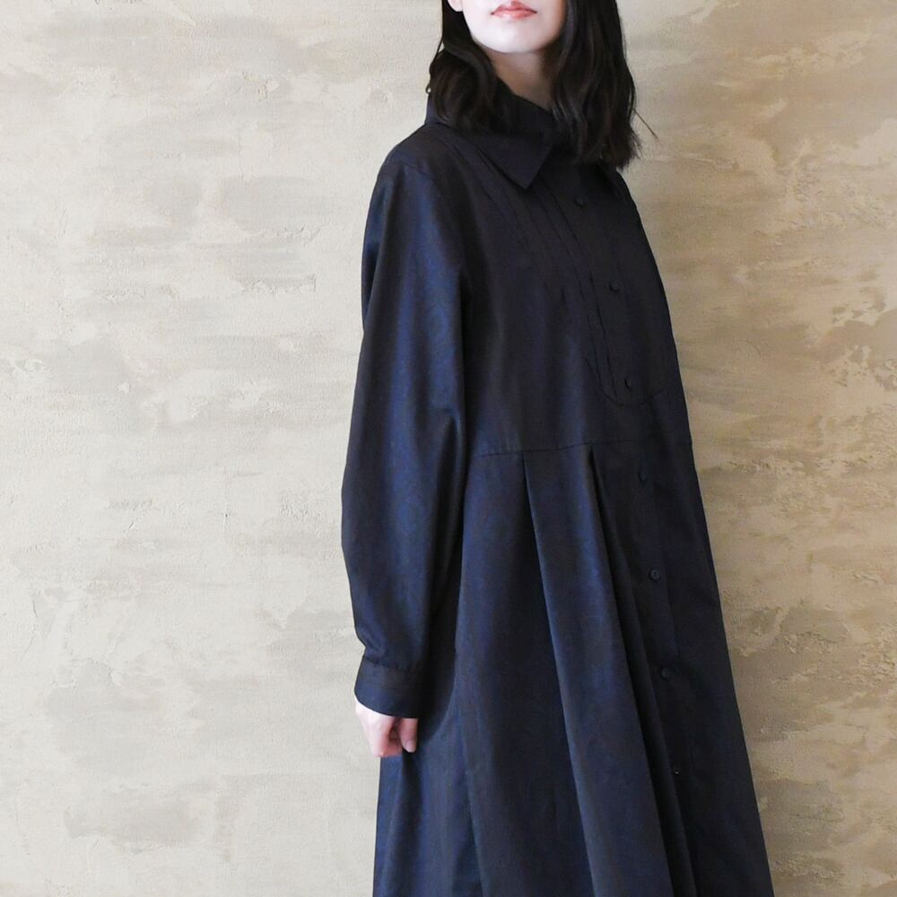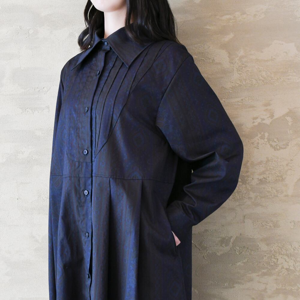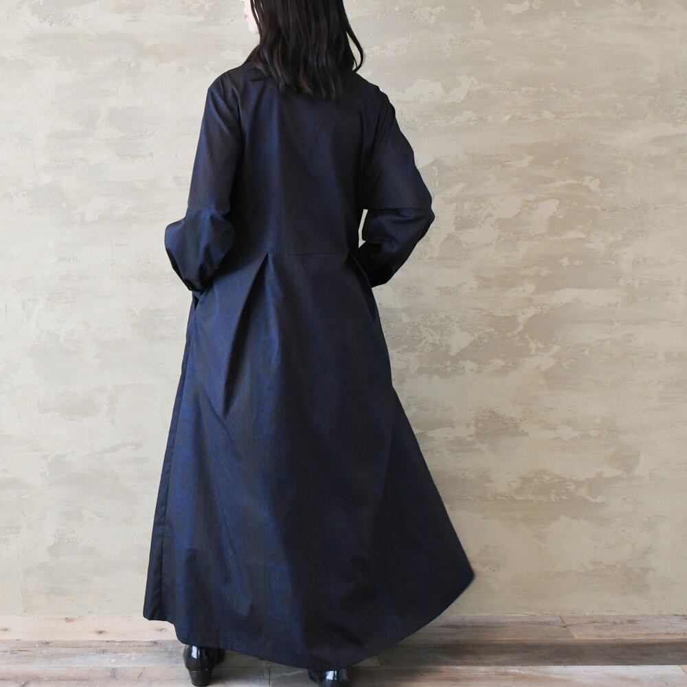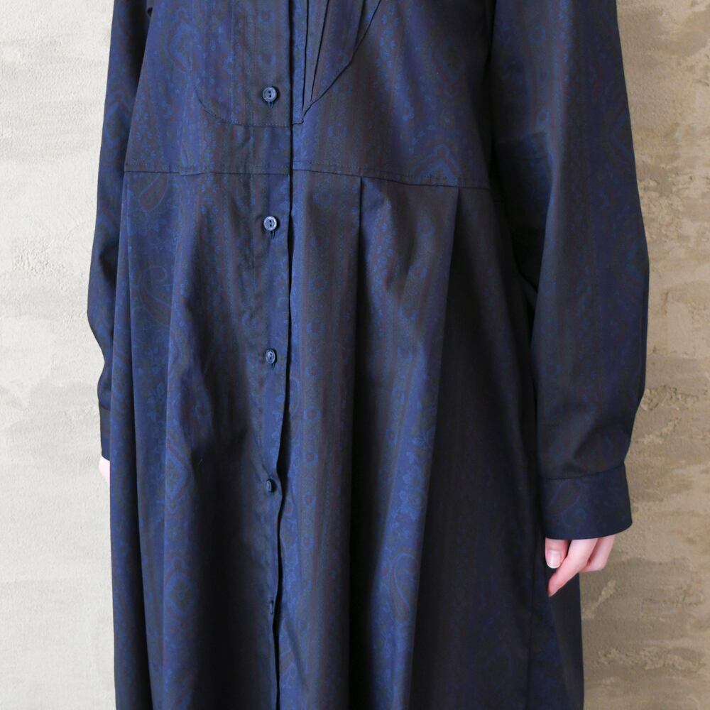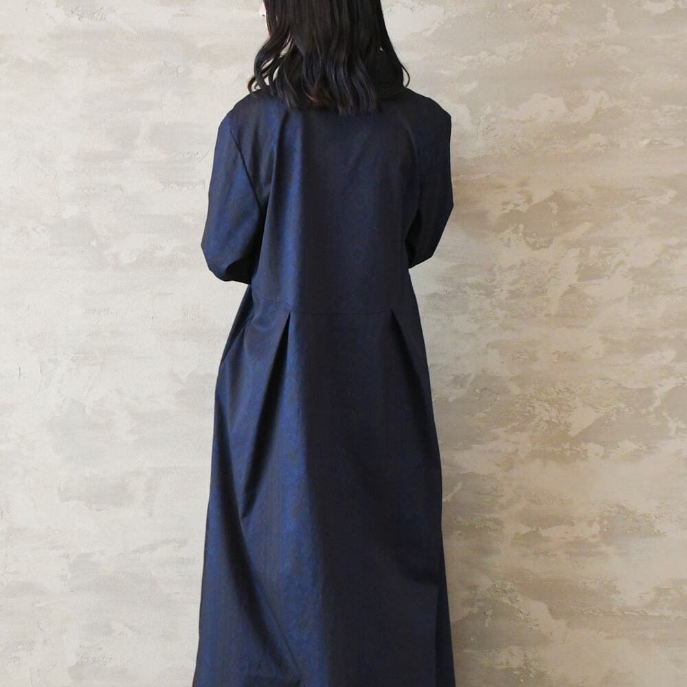 【完全一点物】胸元タックワンピース(ネイビーペイズリー)