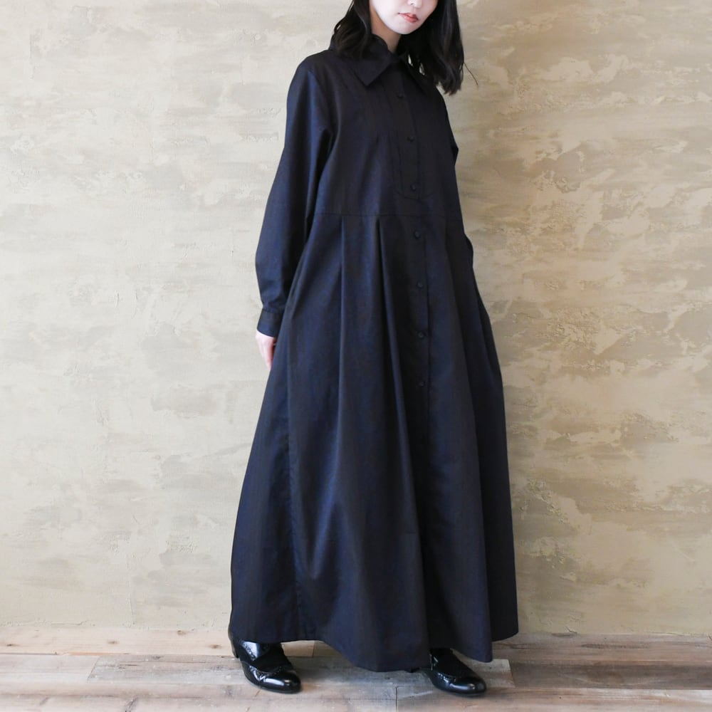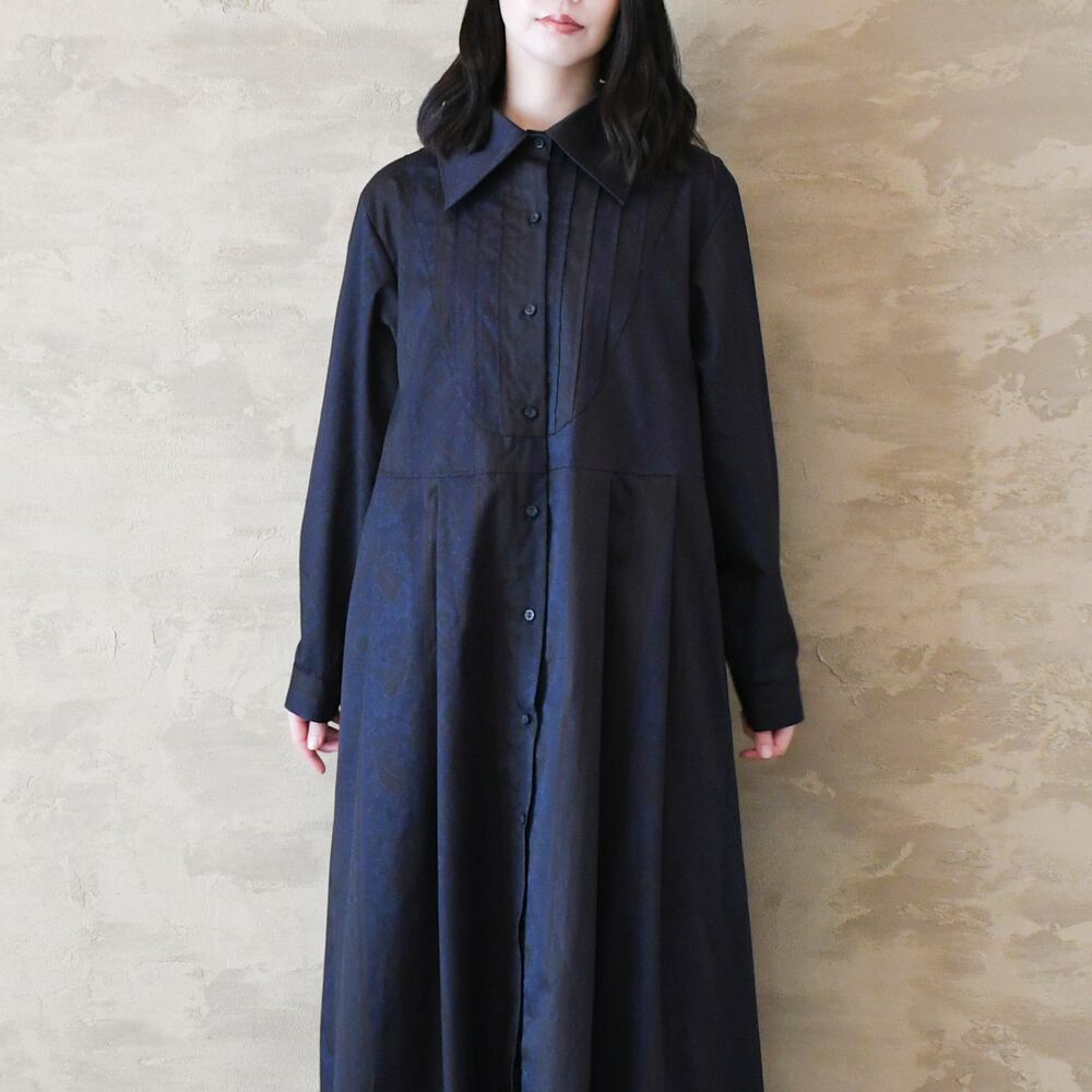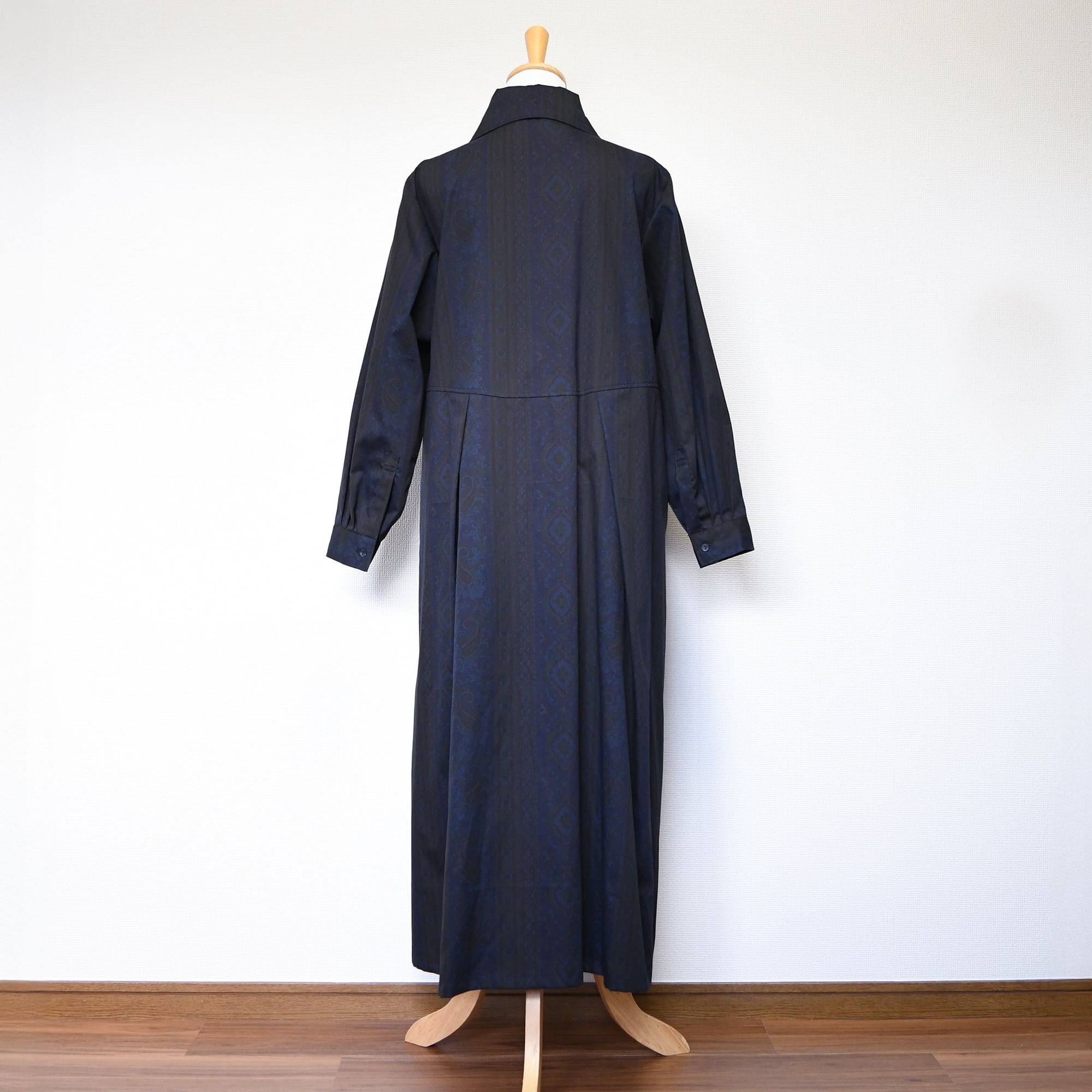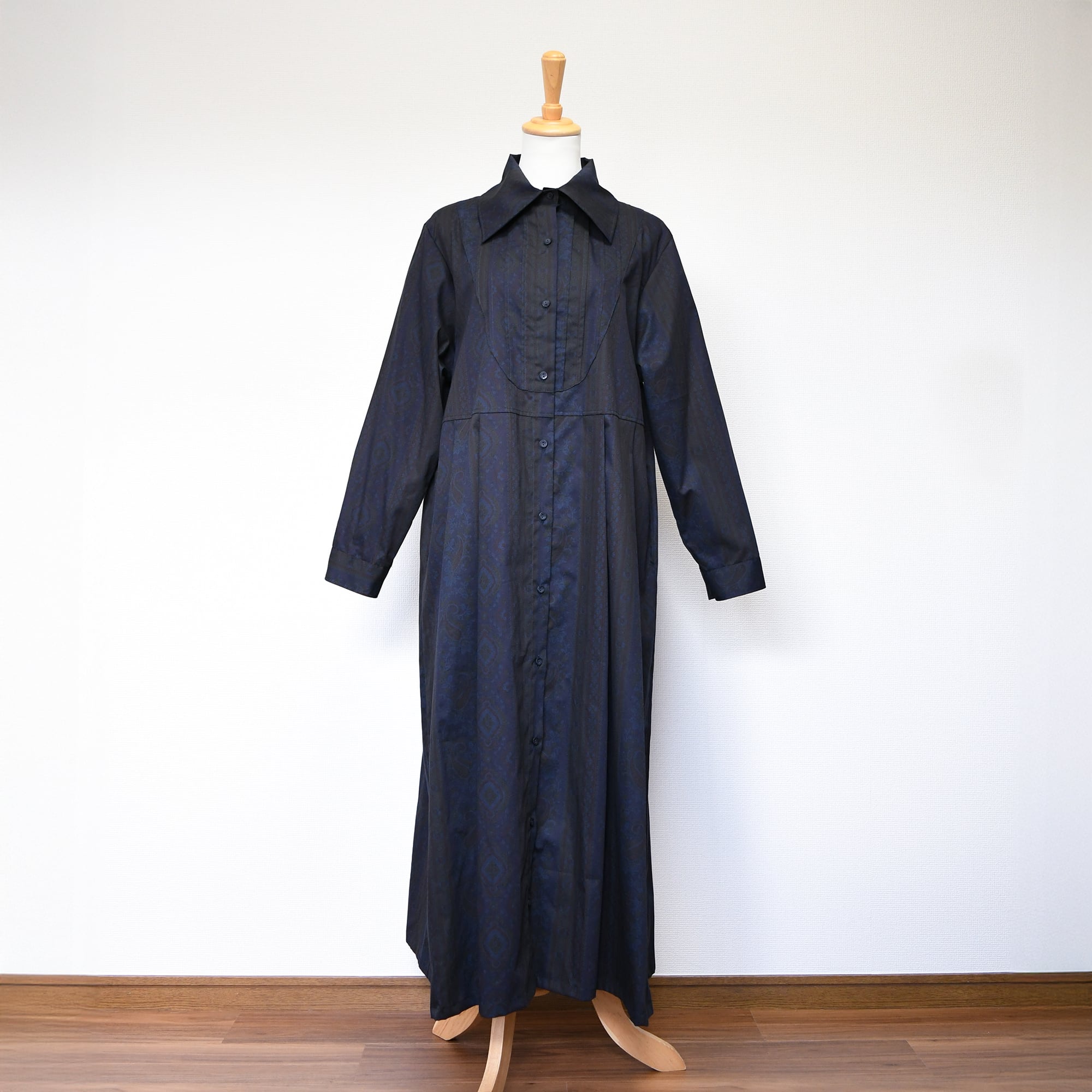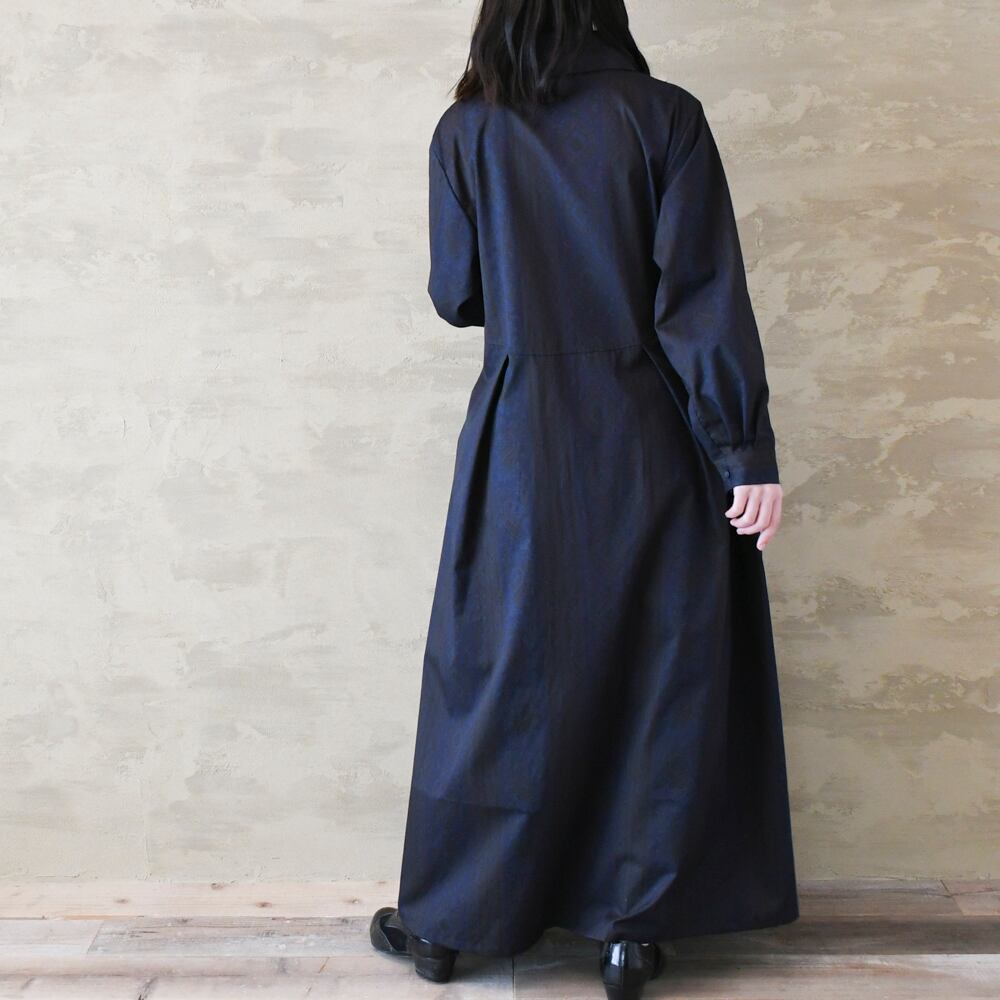 【完全一点物】胸元タックワンピース(ネイビーペイズリー)