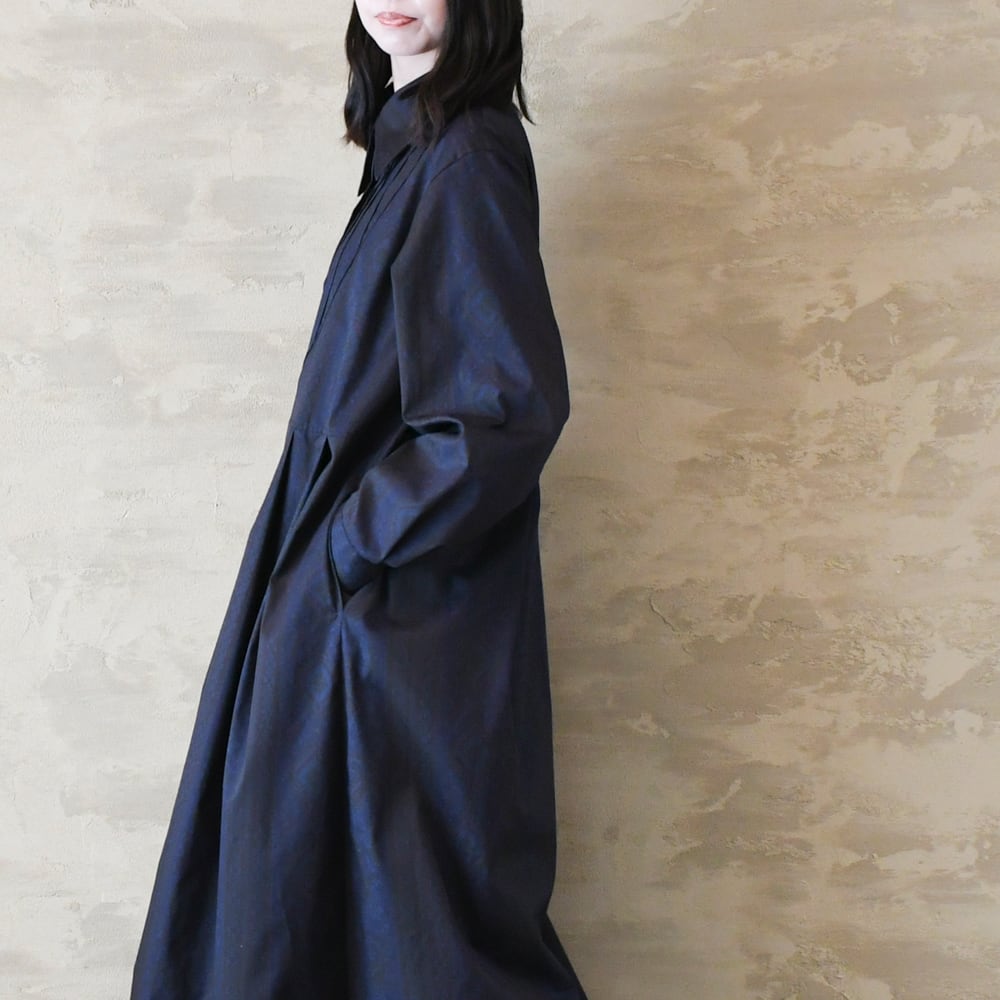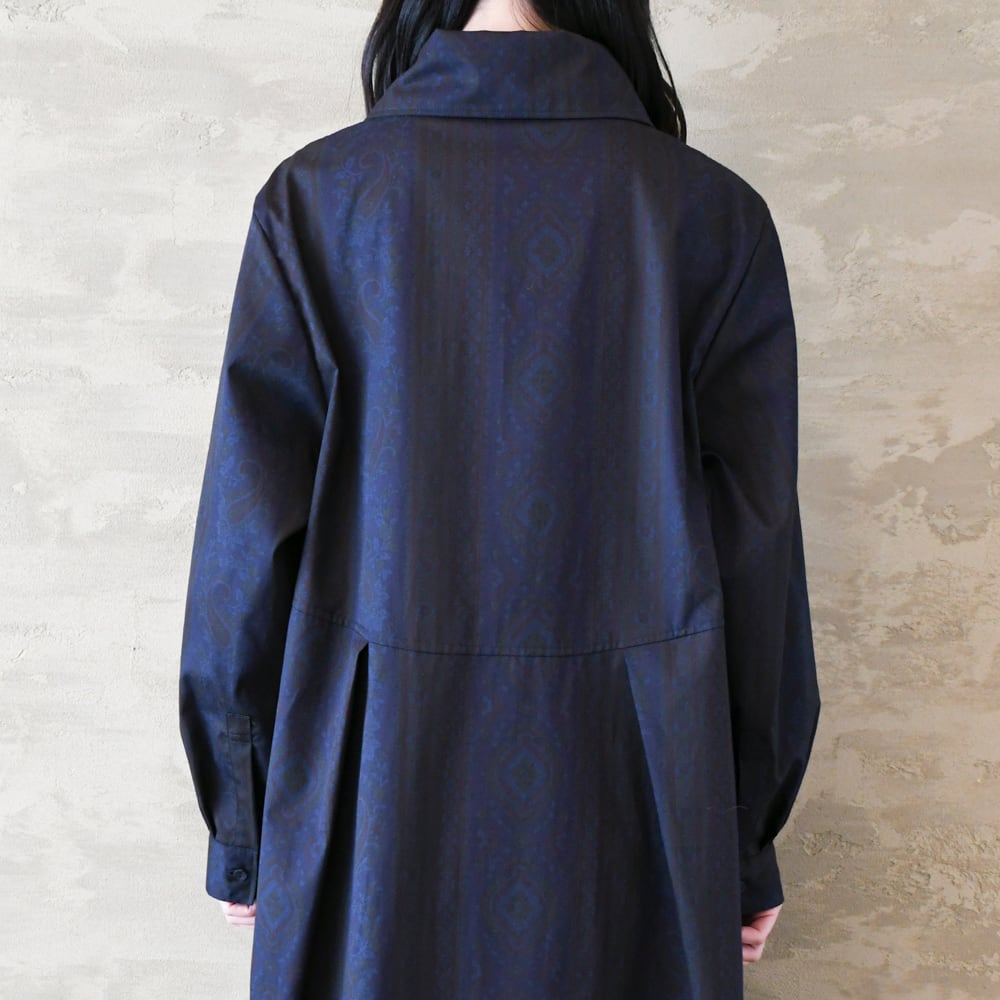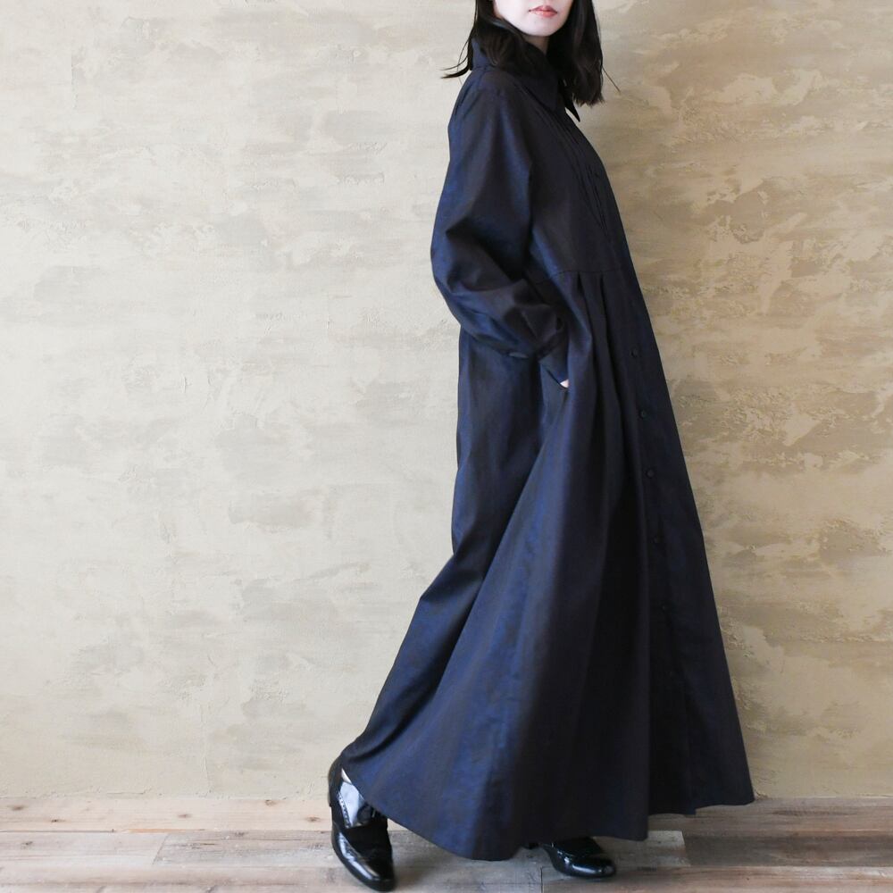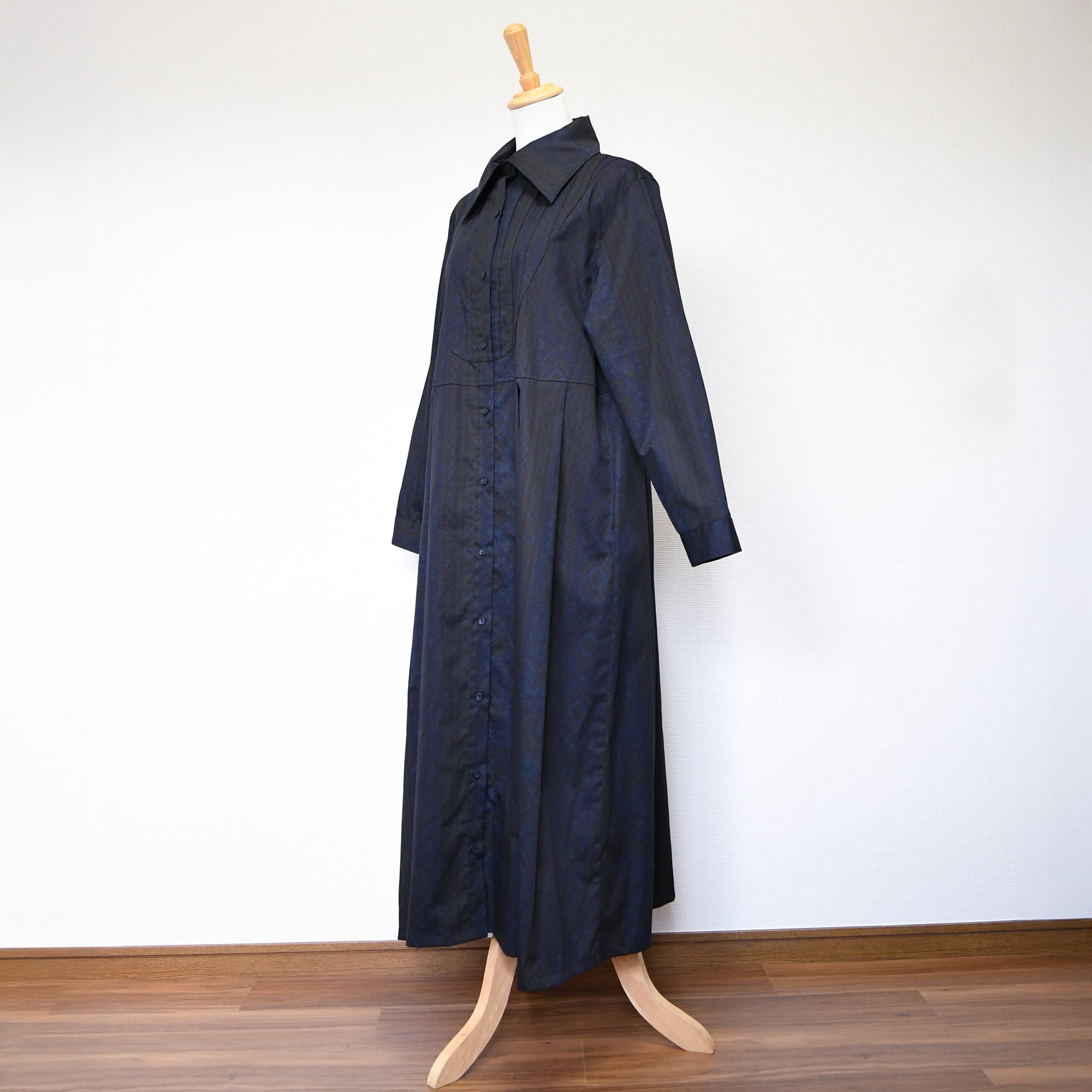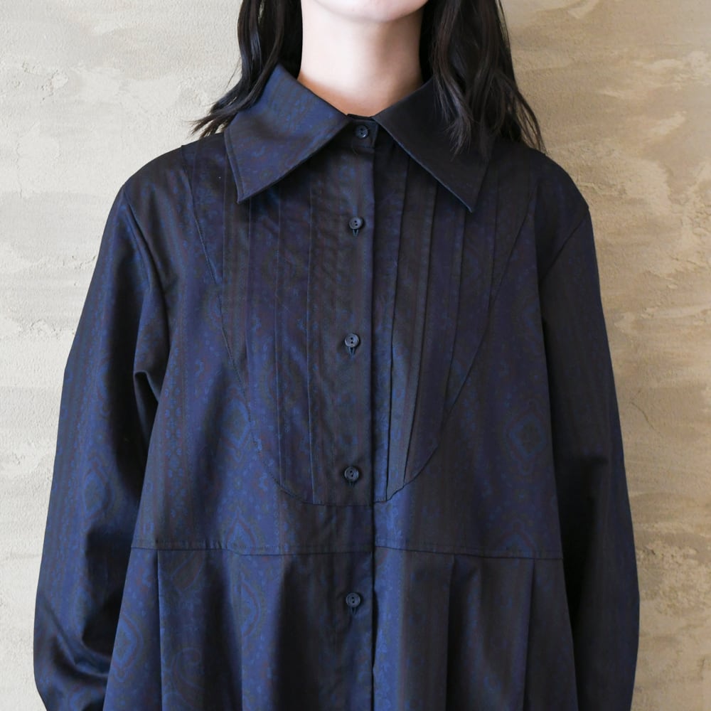 【完全一点物】胸元タックワンピース(ネイビーペイズリー)