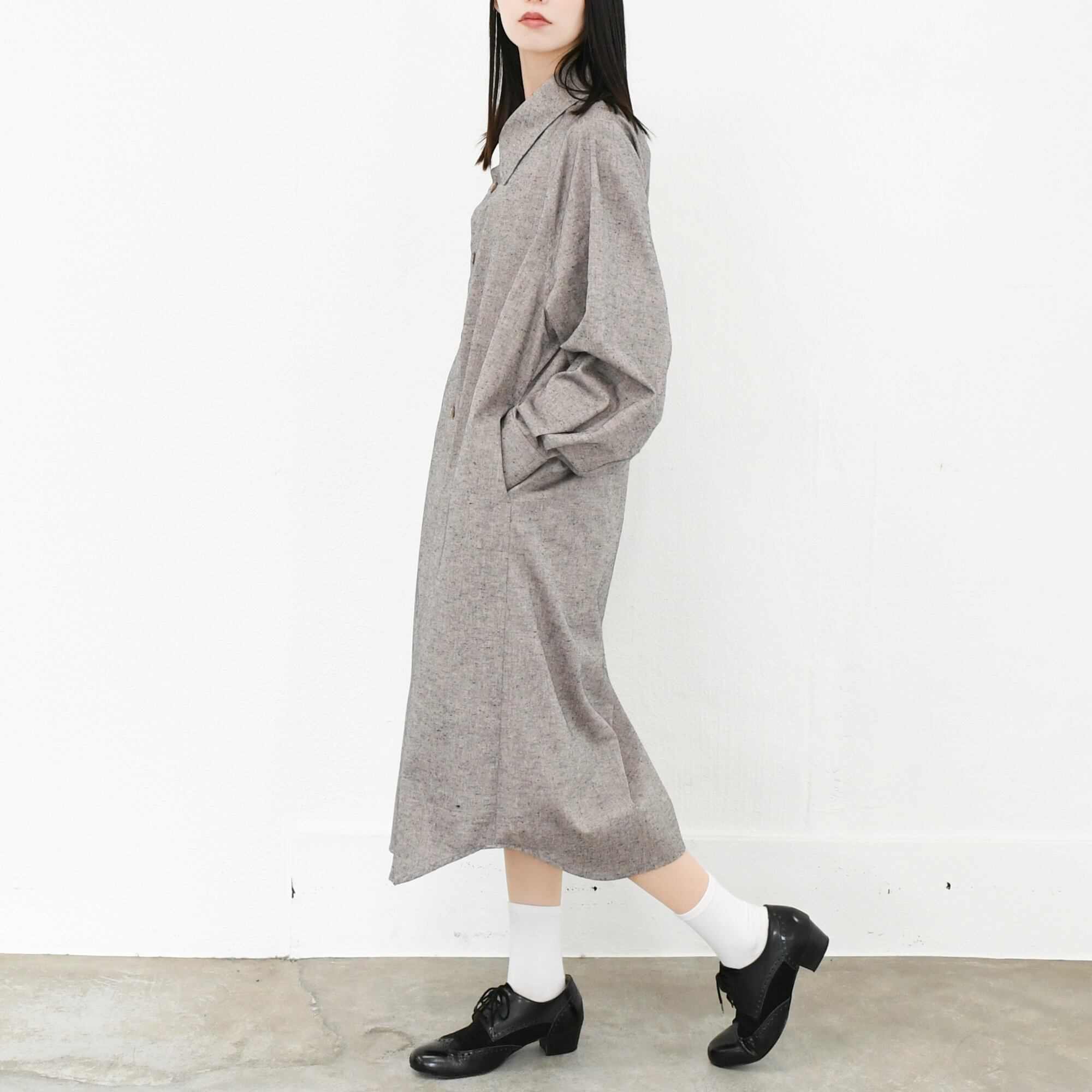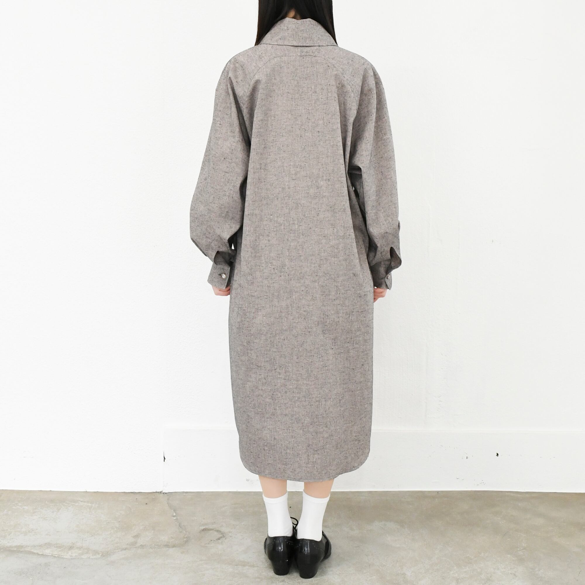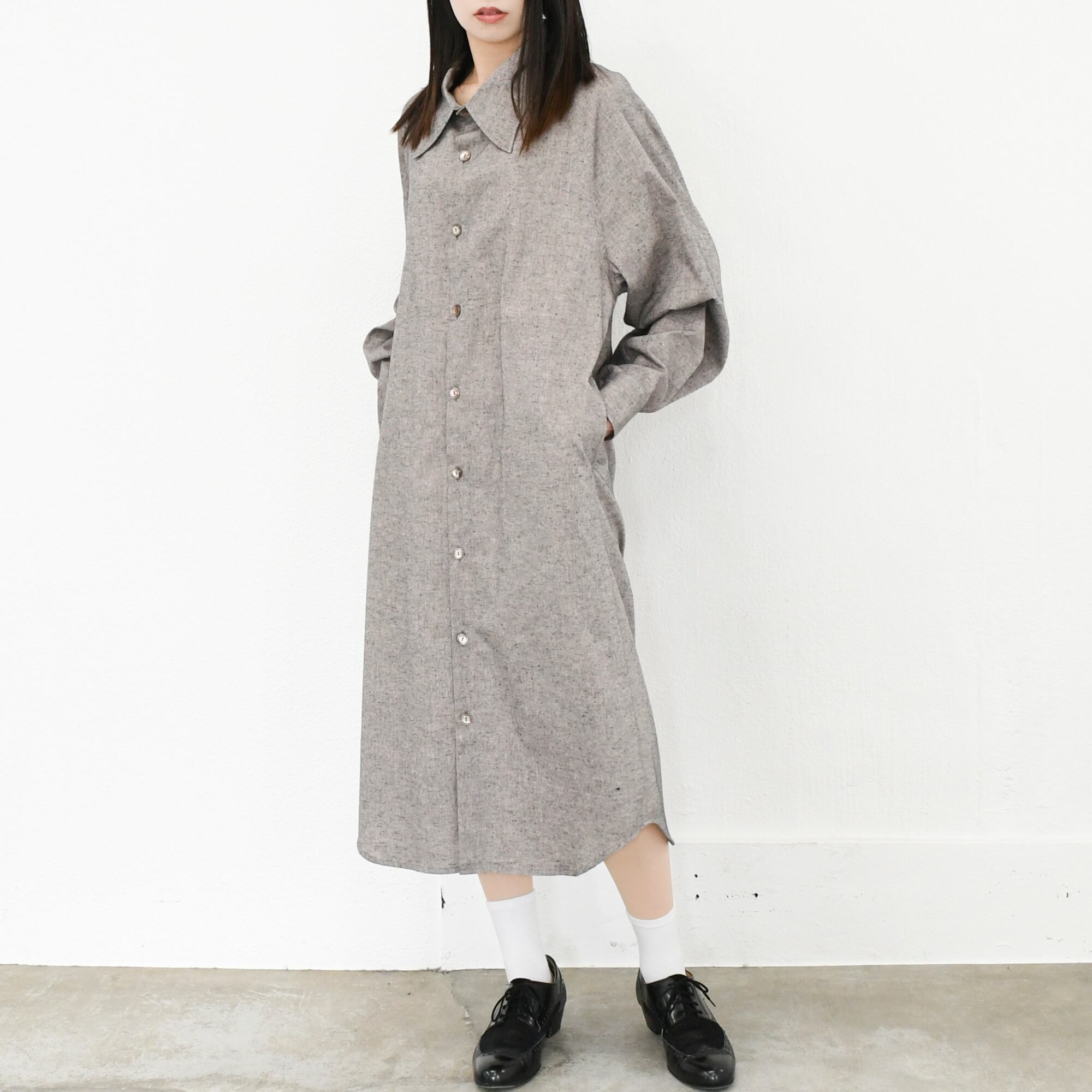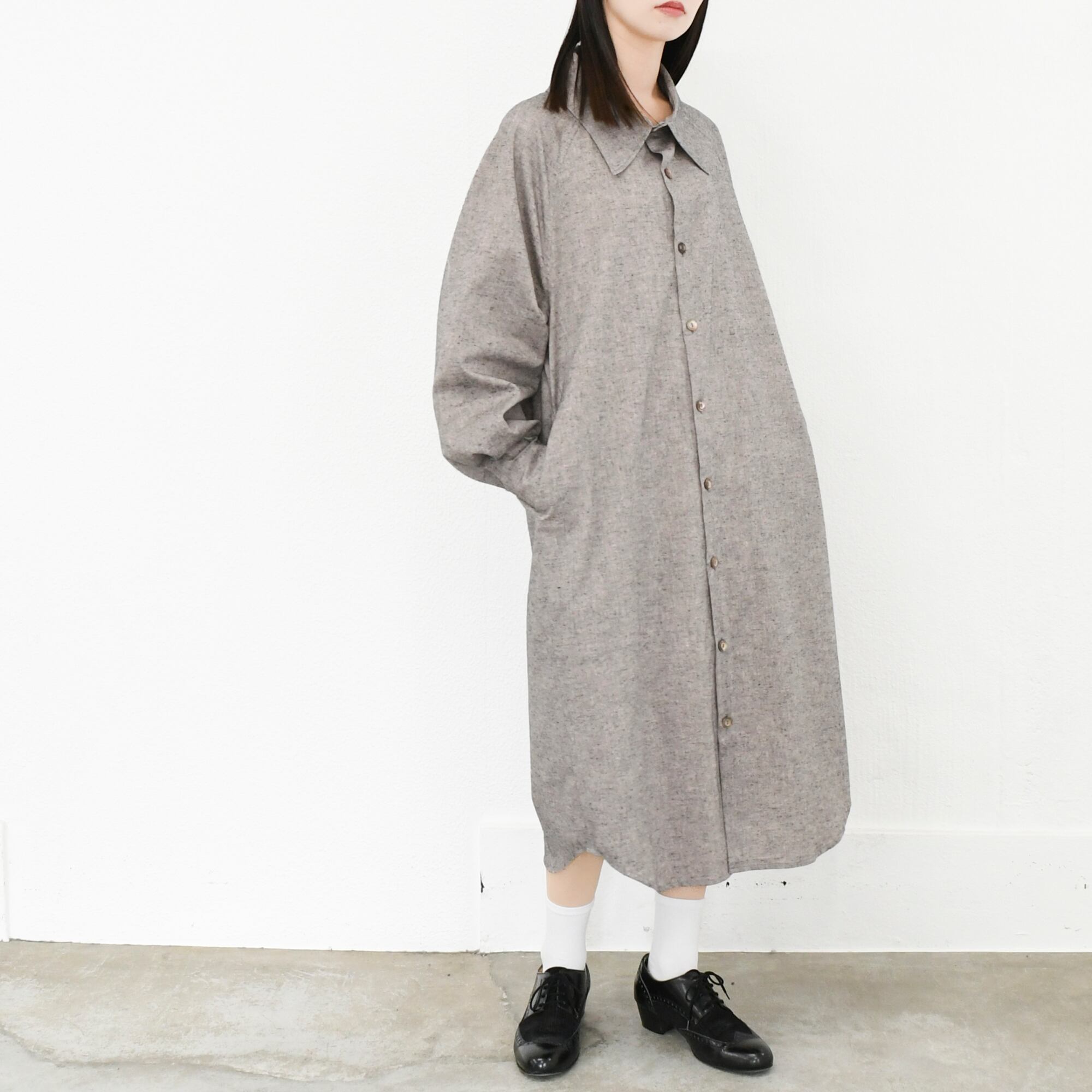 【完全一点物】ラグランスリーブシャツワンピース(グレー)