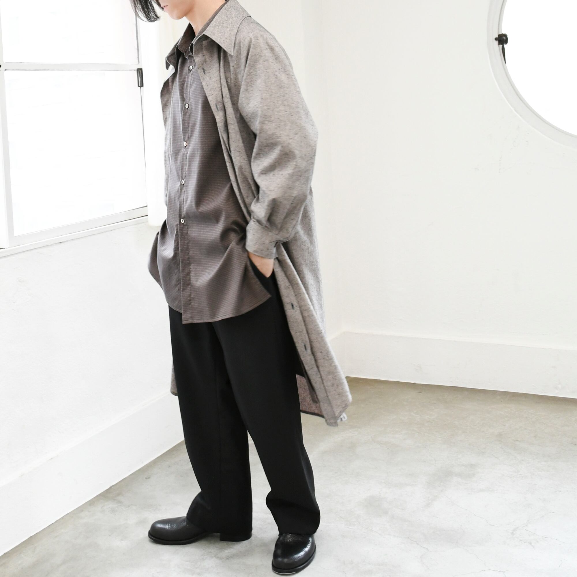 ニュアンスのあるグレーカラーのコットン生地を使用し、ネップのある表情がさりげない奥行きを演出。