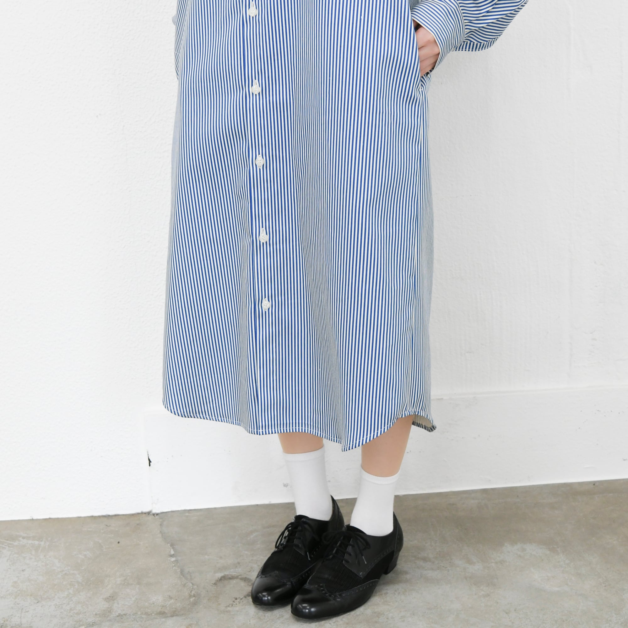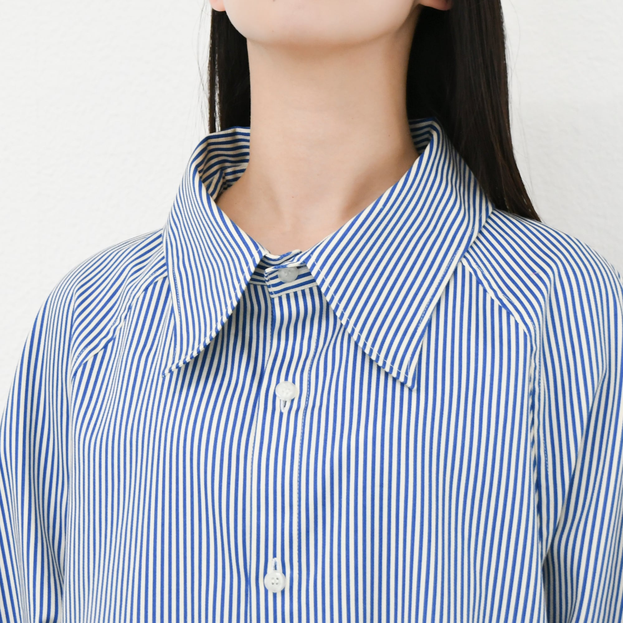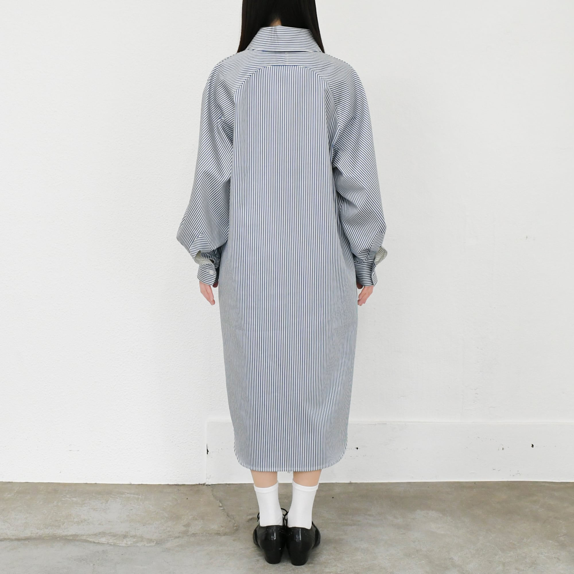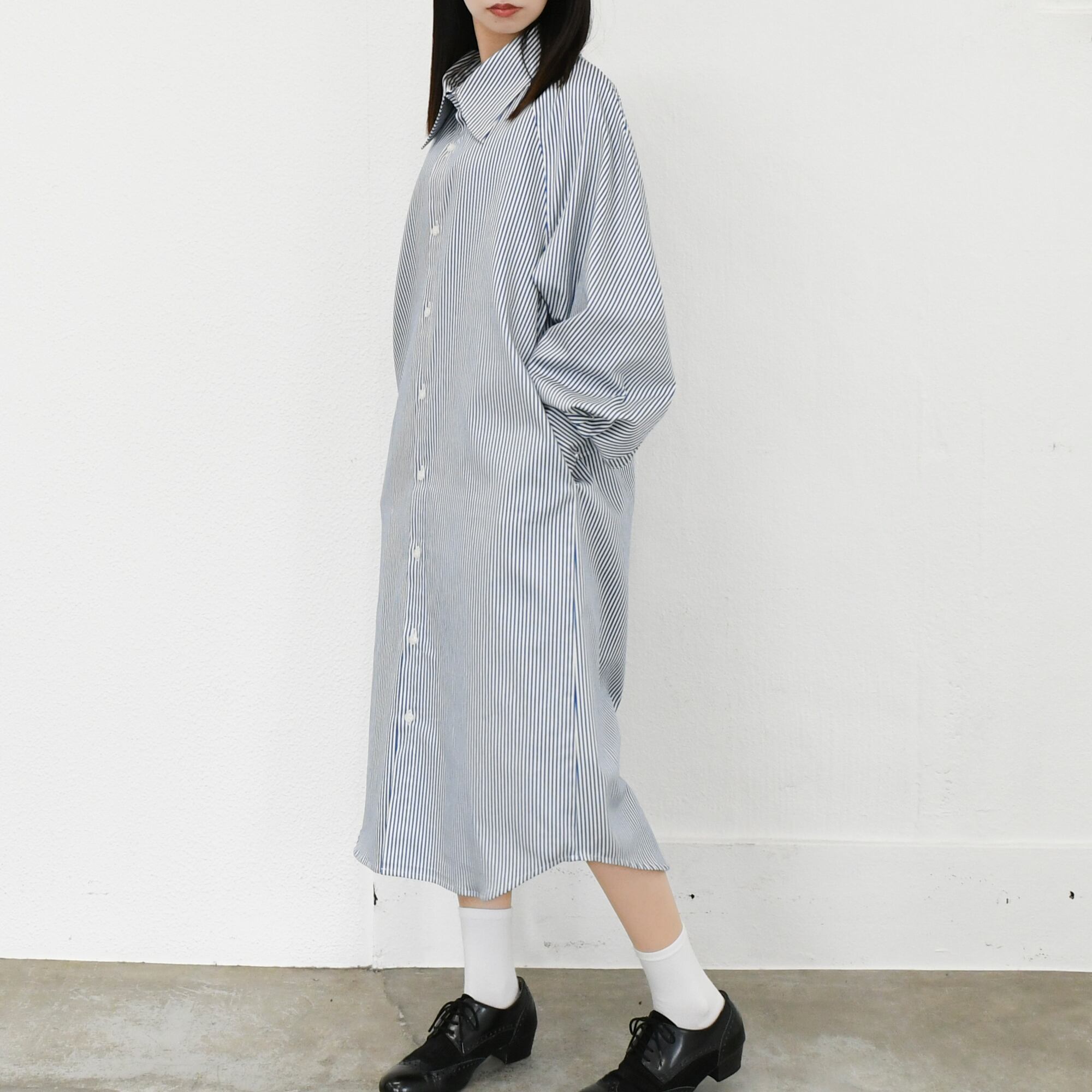 【完全一点物】ラグランスリーブシャツワンピース(ブルーストライプ)