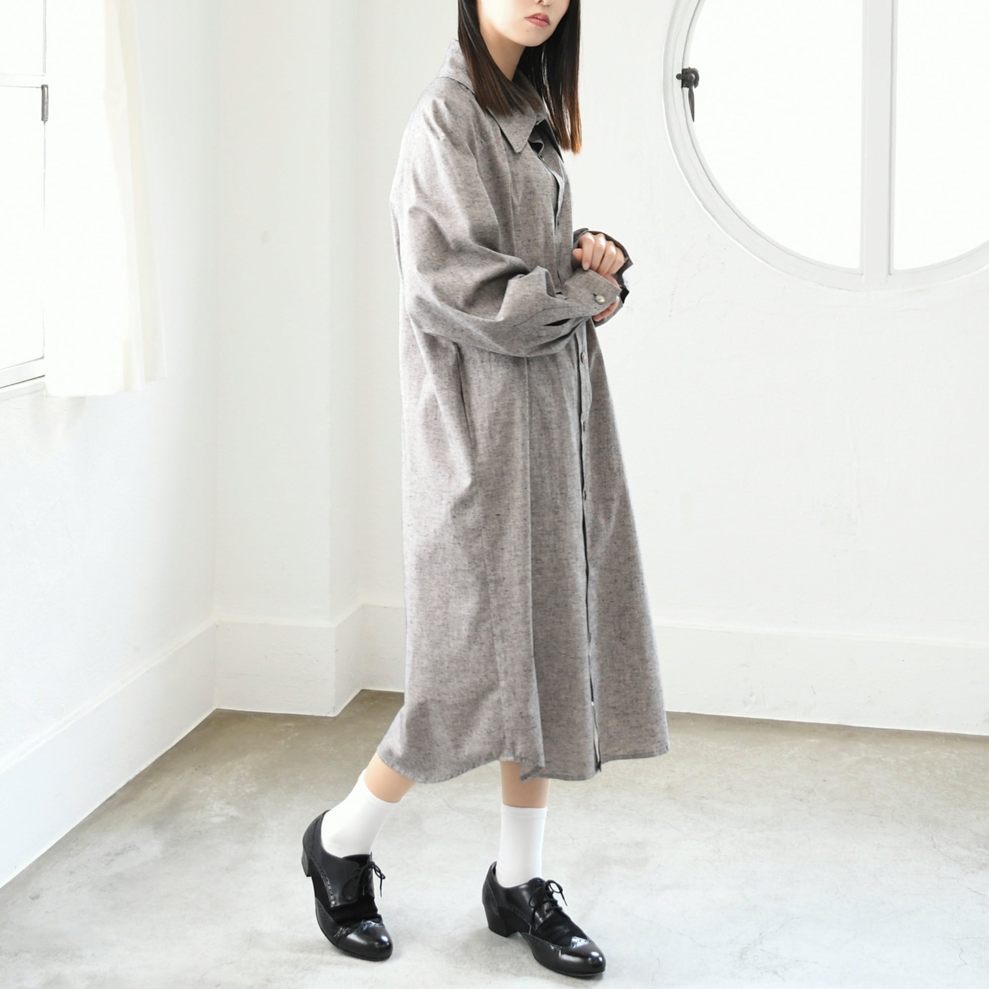 肩のラインをなだらかに見せるラグランスリーブが、自然な抜け感を生むシャツワンピース。