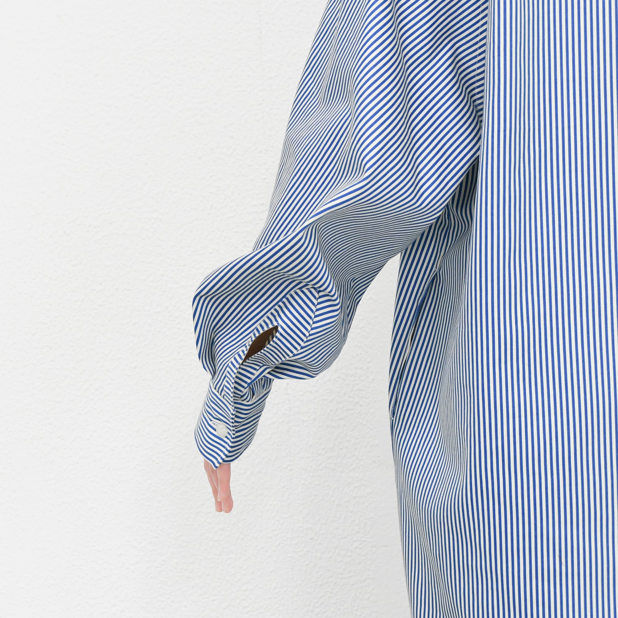 爽やかなブルーストライプが、春から初夏にかけての装いに映える一枚。
