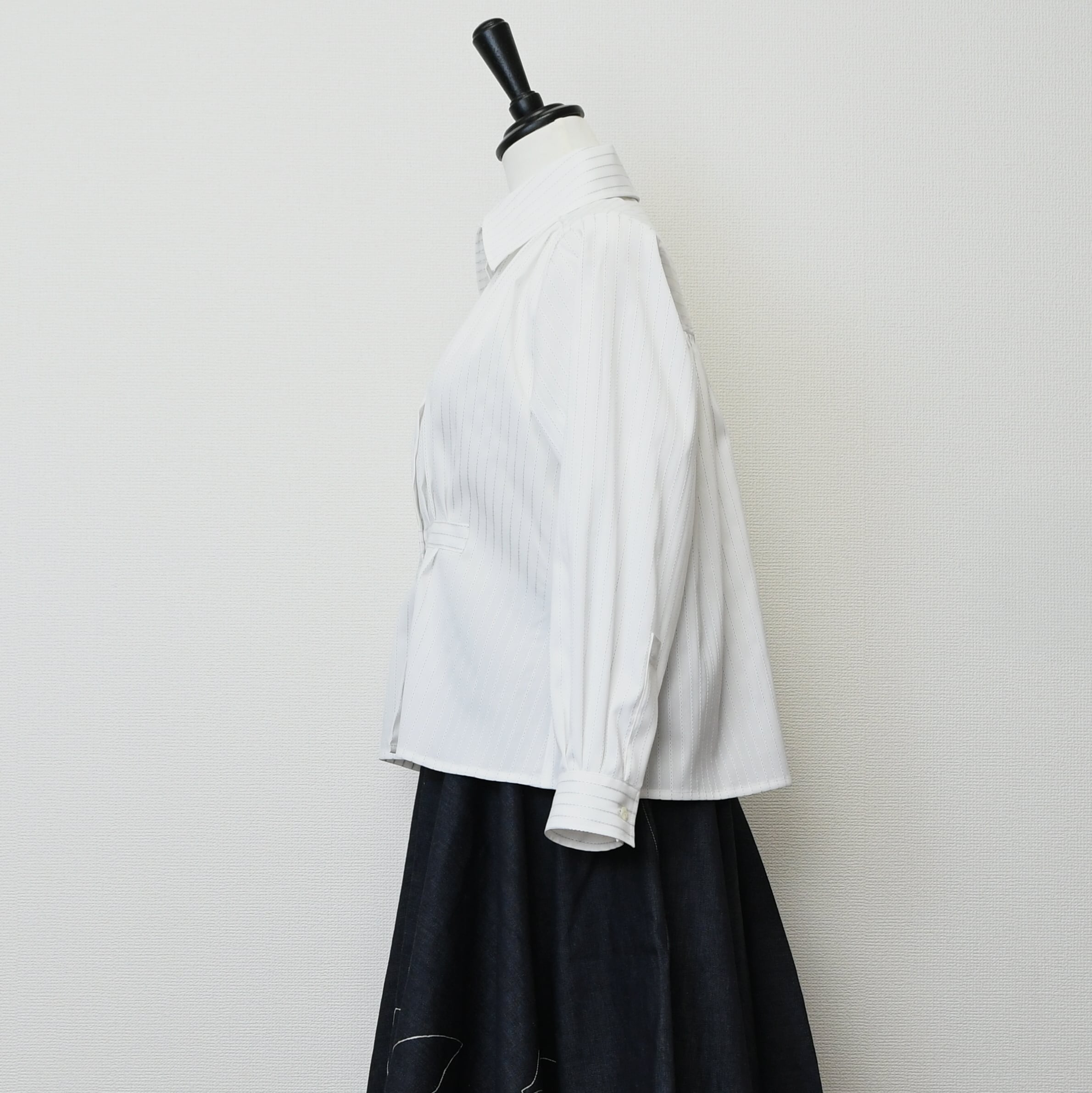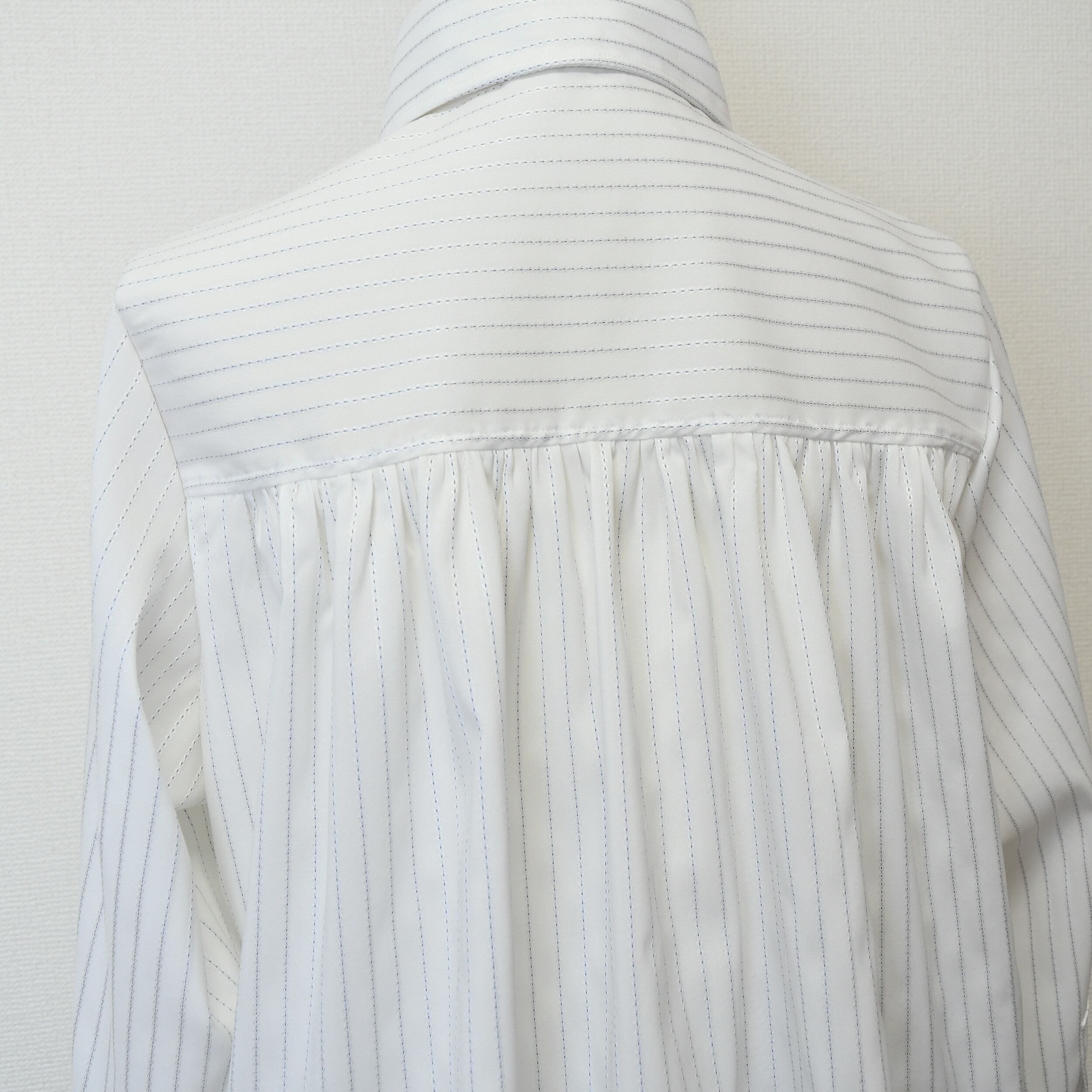 【完全一点物】タックギャザーシャツ(ホワイトストライプ)