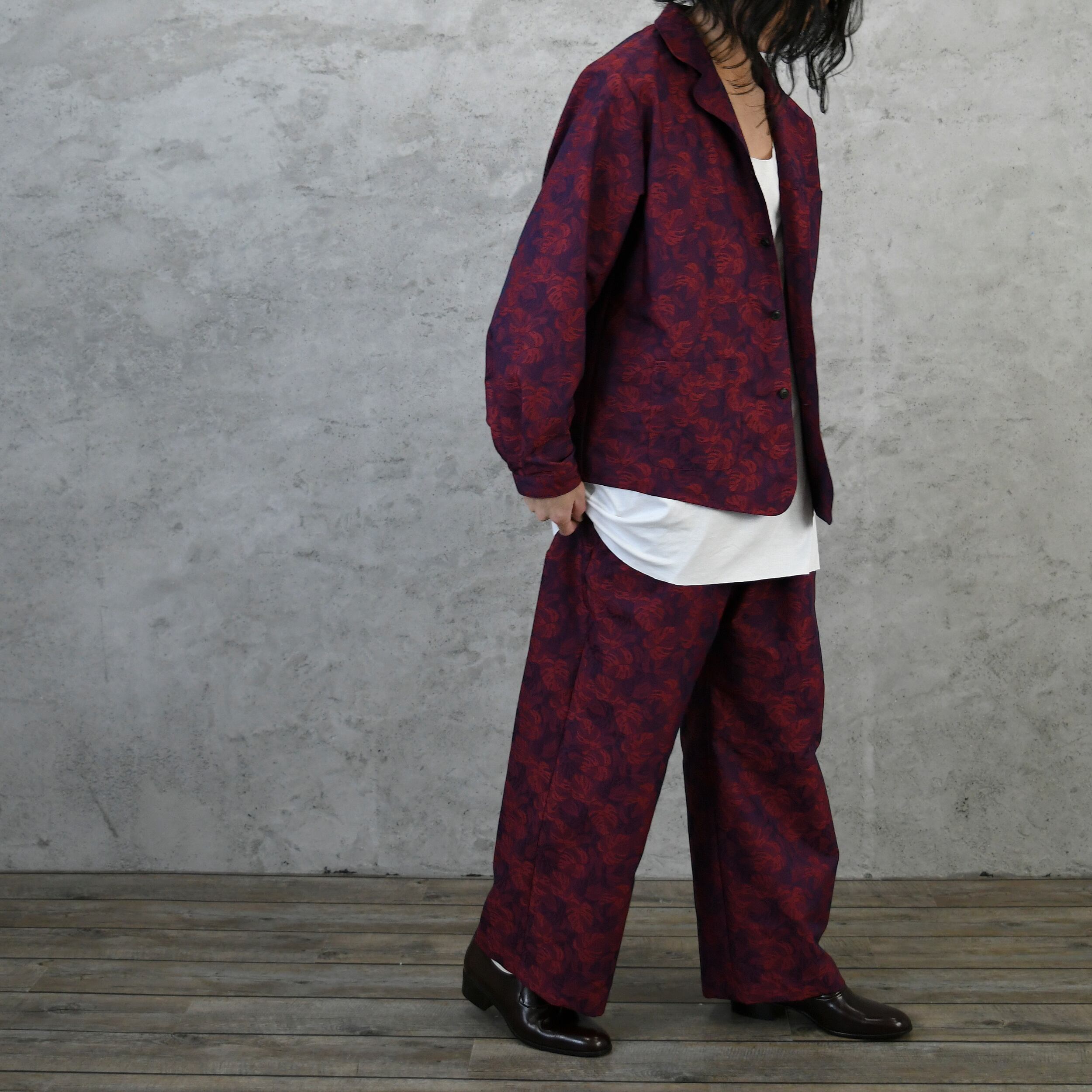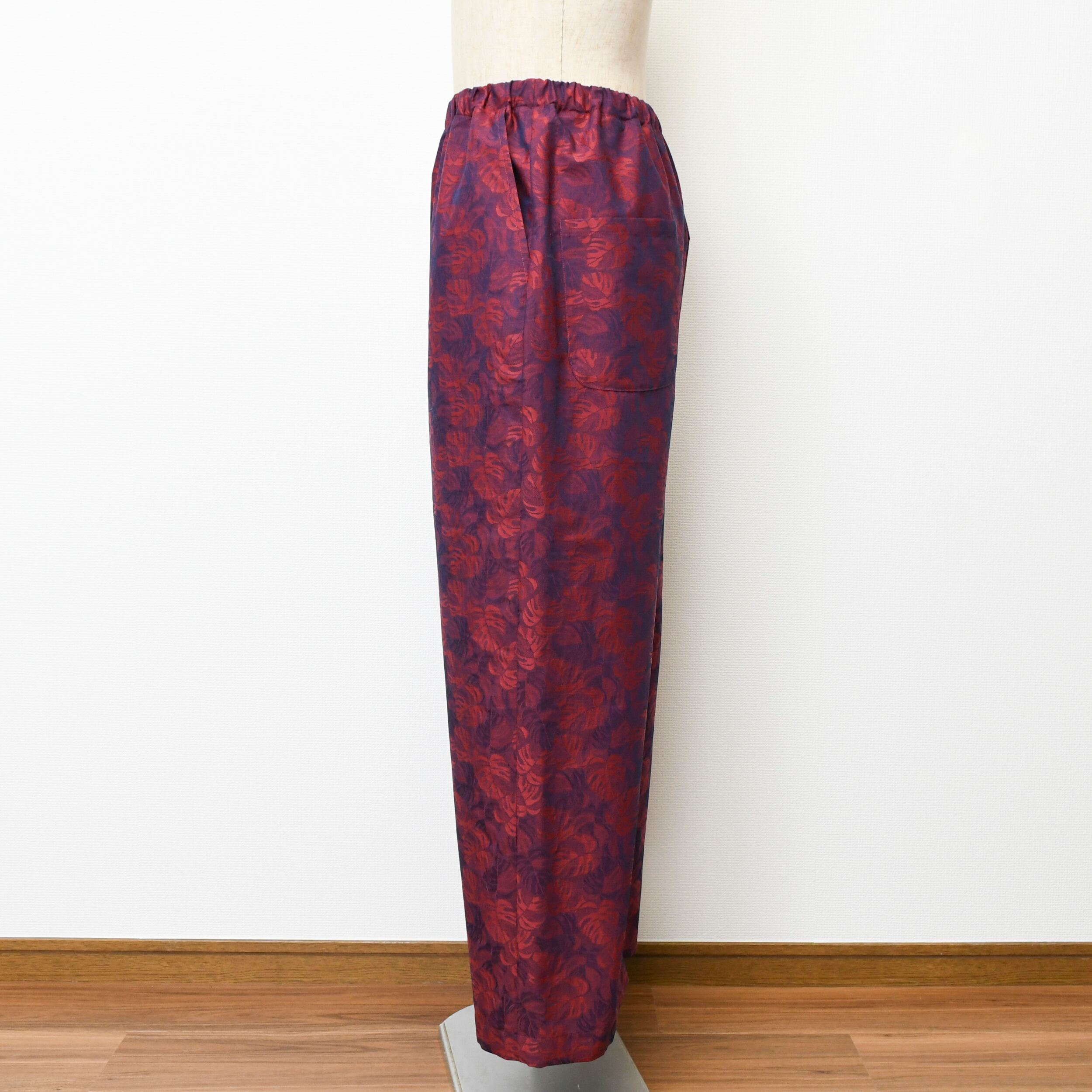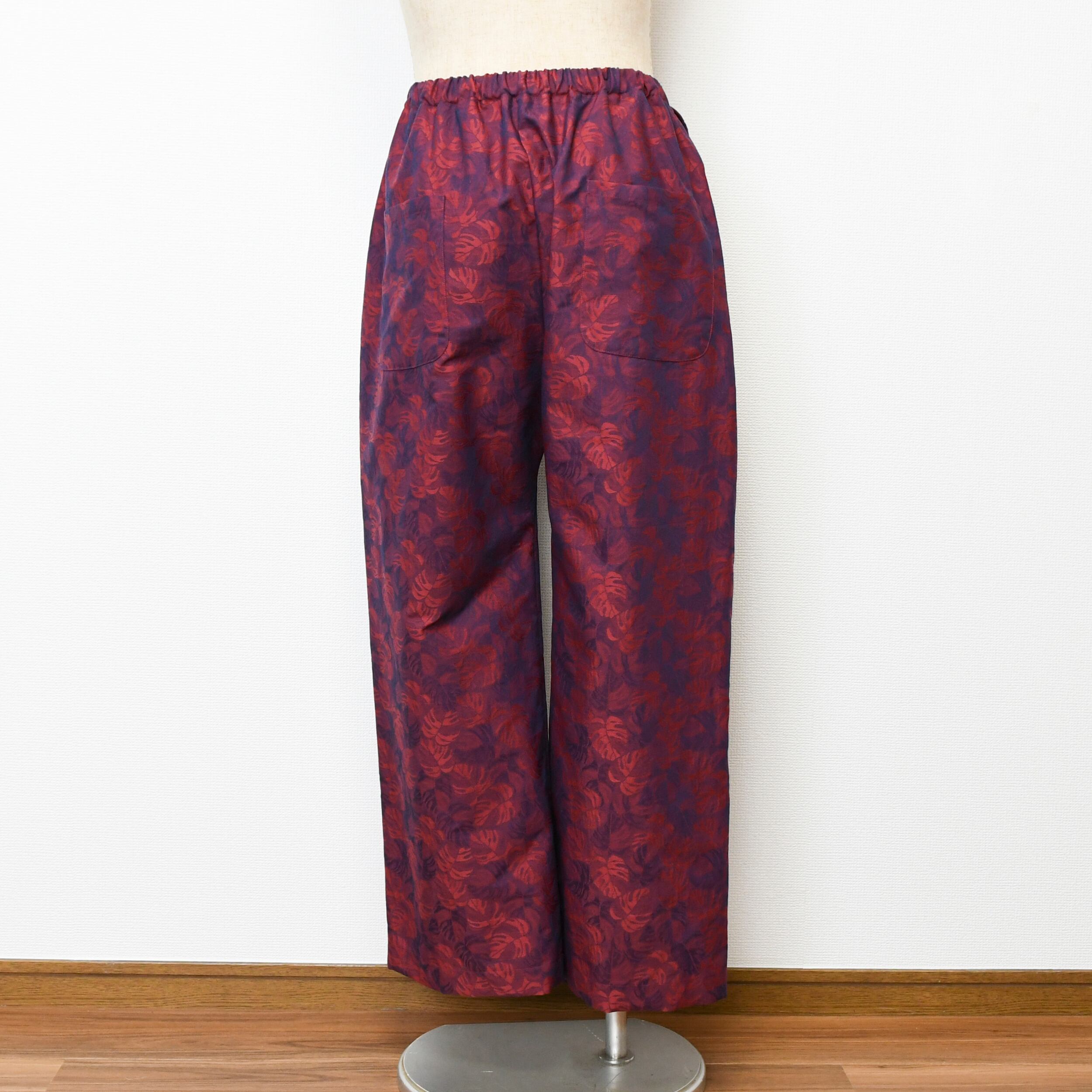 【完全一点物】ルーズイージーパンツ(レッド×ネイビーリーフ)