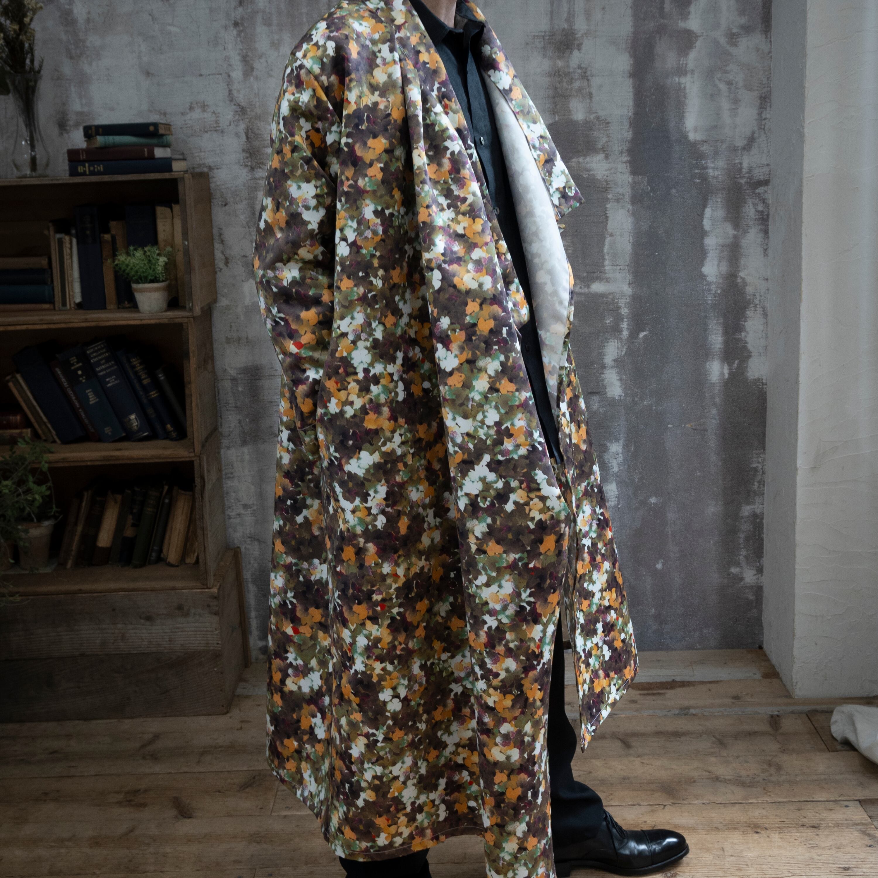 送料無料【完全一点物】ユニセックス カシュクールワンピース(押し花柄)